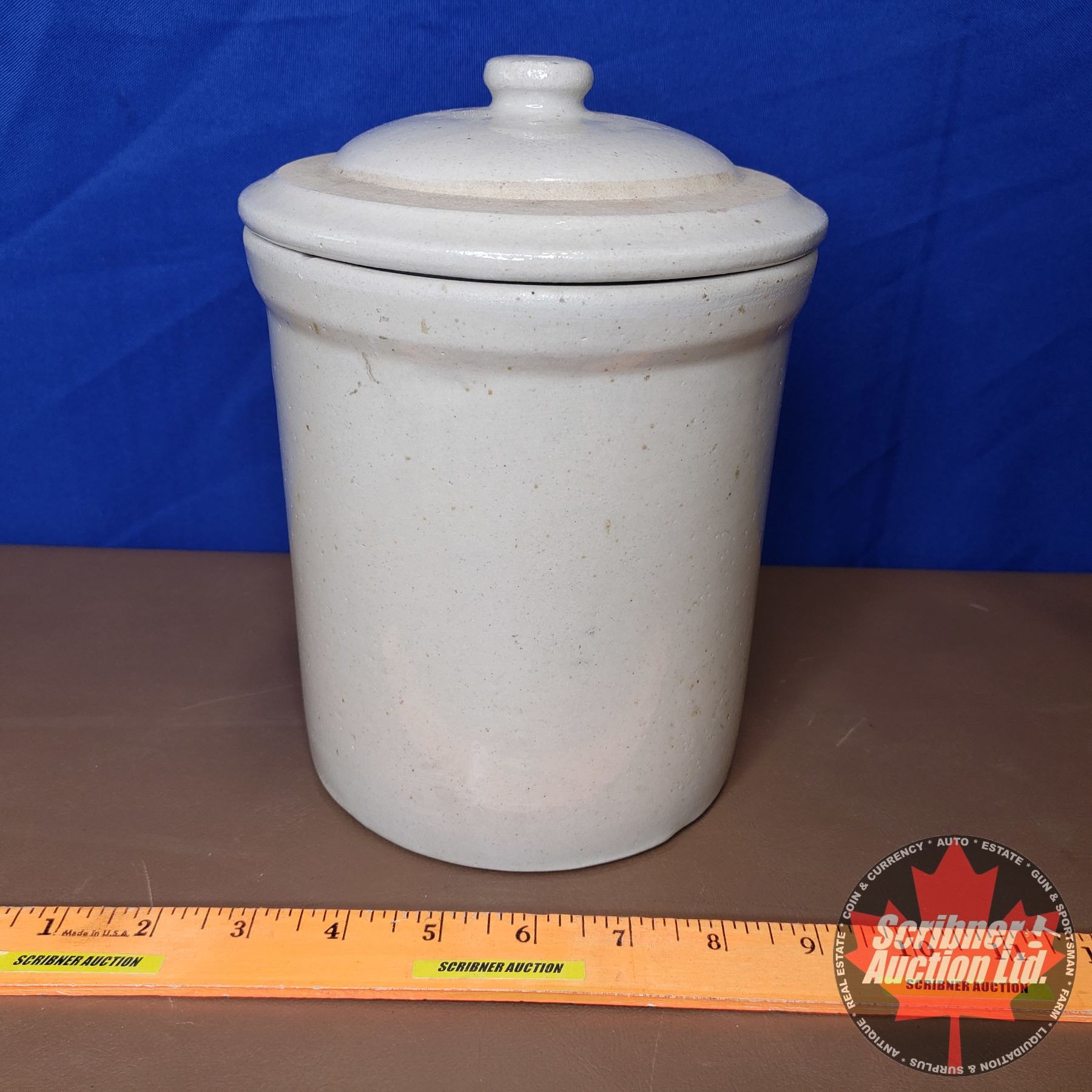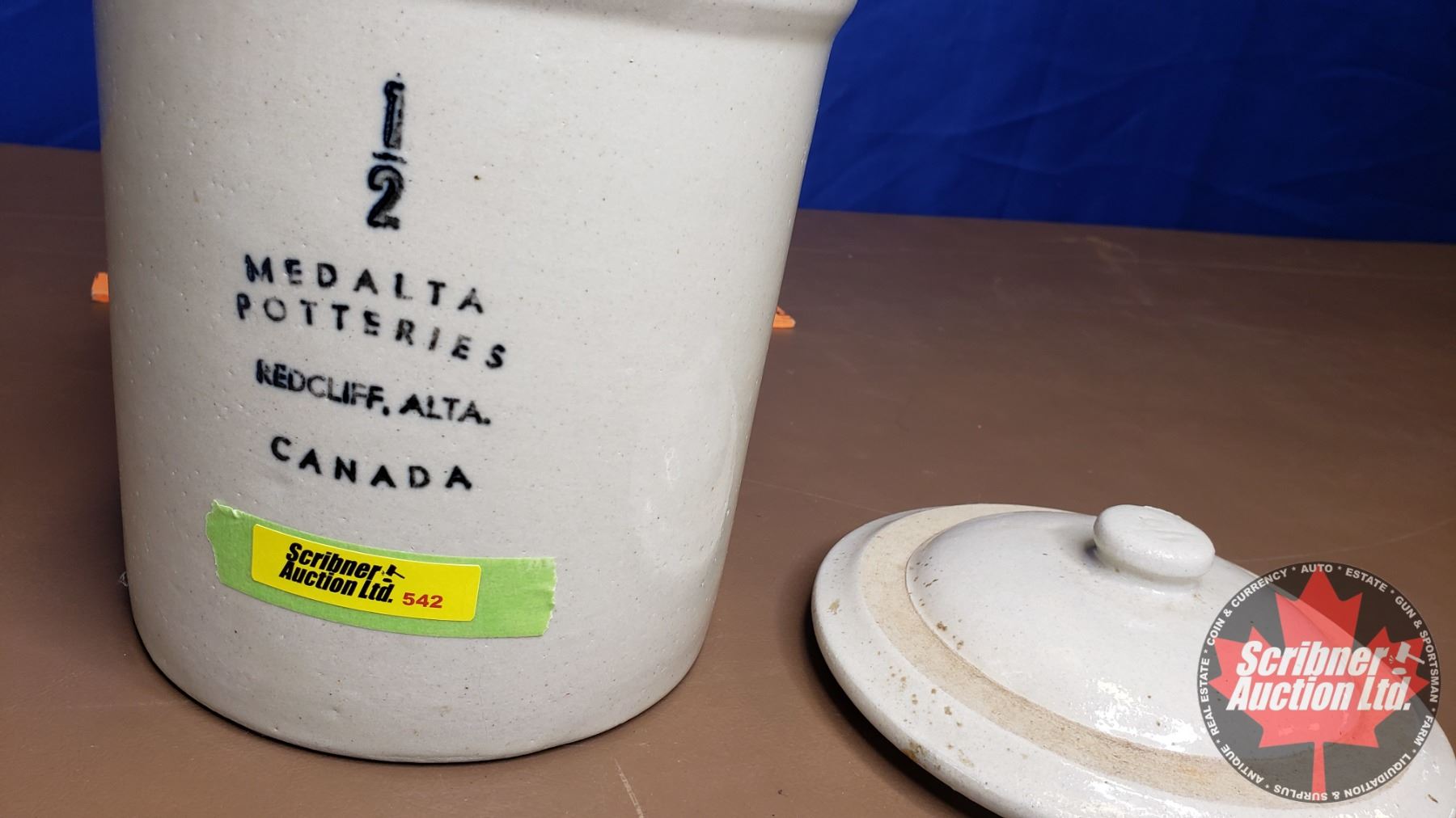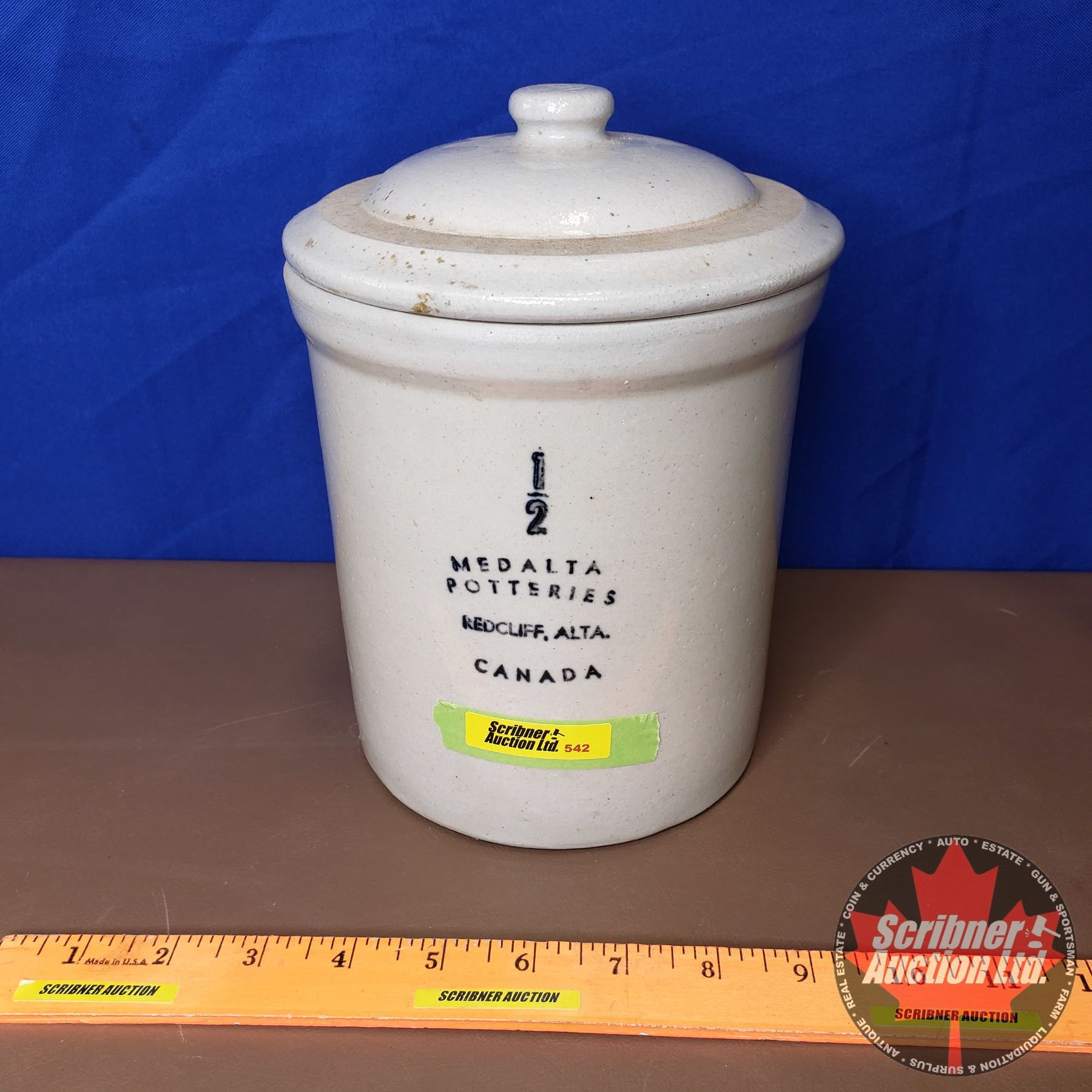 1/2 Gallon Crock with Lid : Medalta Potteries Redcliff, Alta (8-1/2"H x 6-1/4" Dia)
