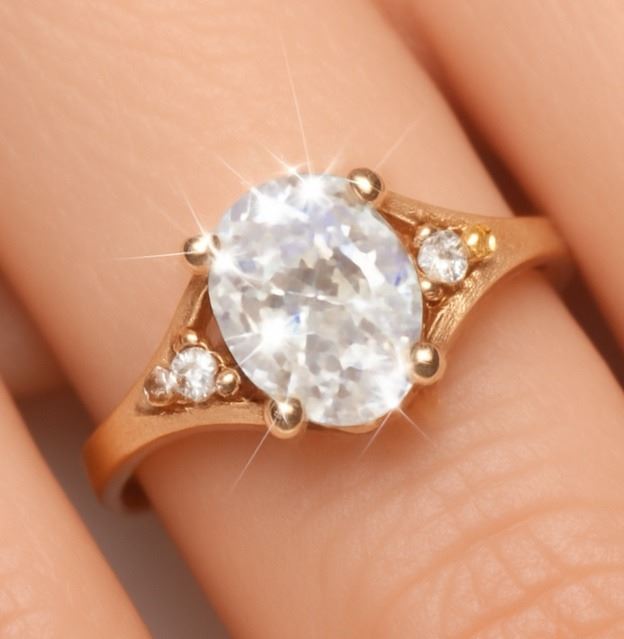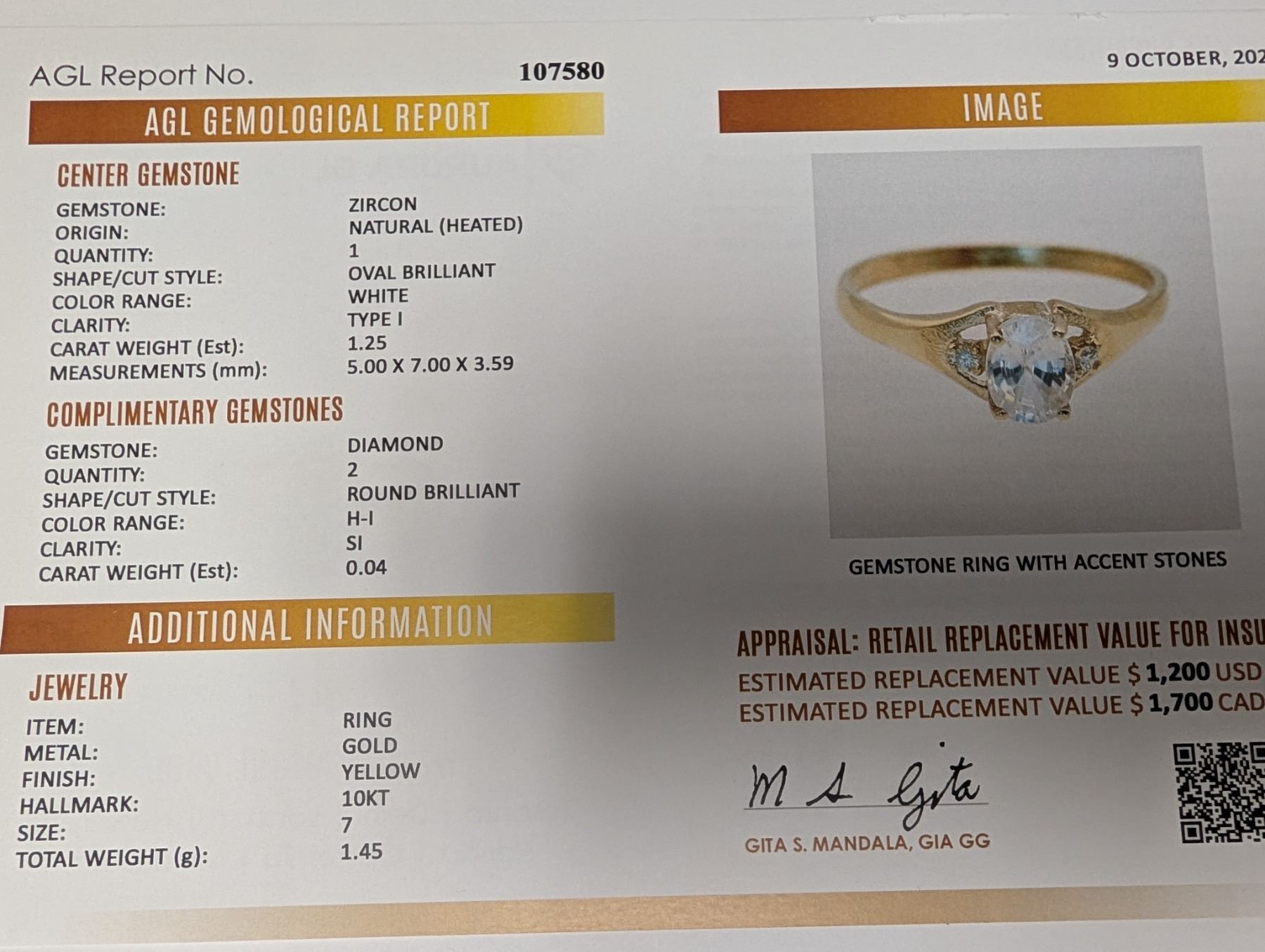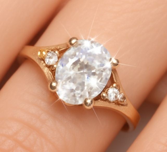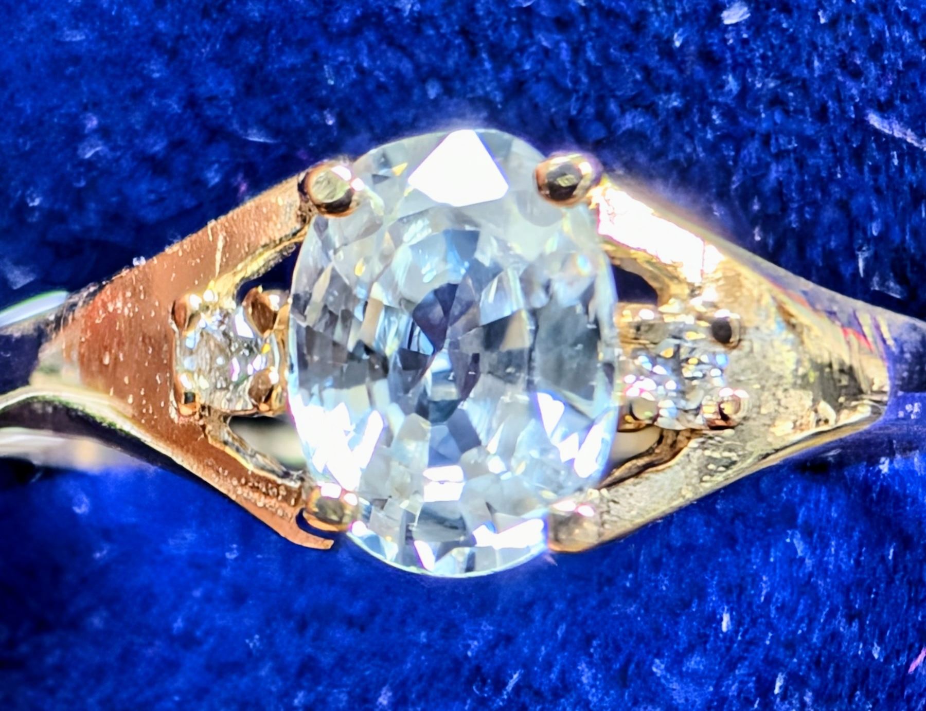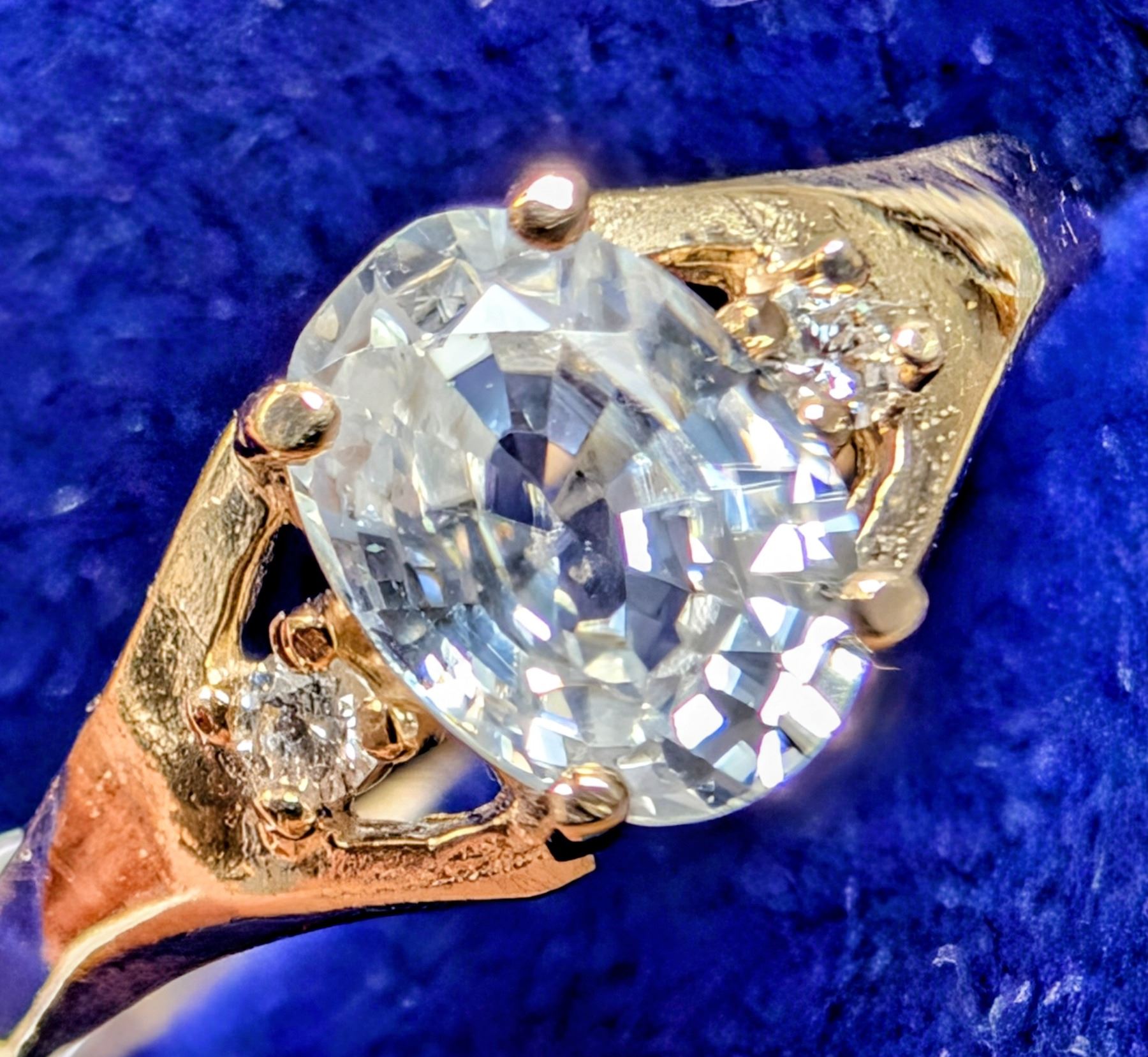 10K (1.45g), WHITE ZIRCON (1.25ct), LAB DIA (0.04ct) RING, size 7
