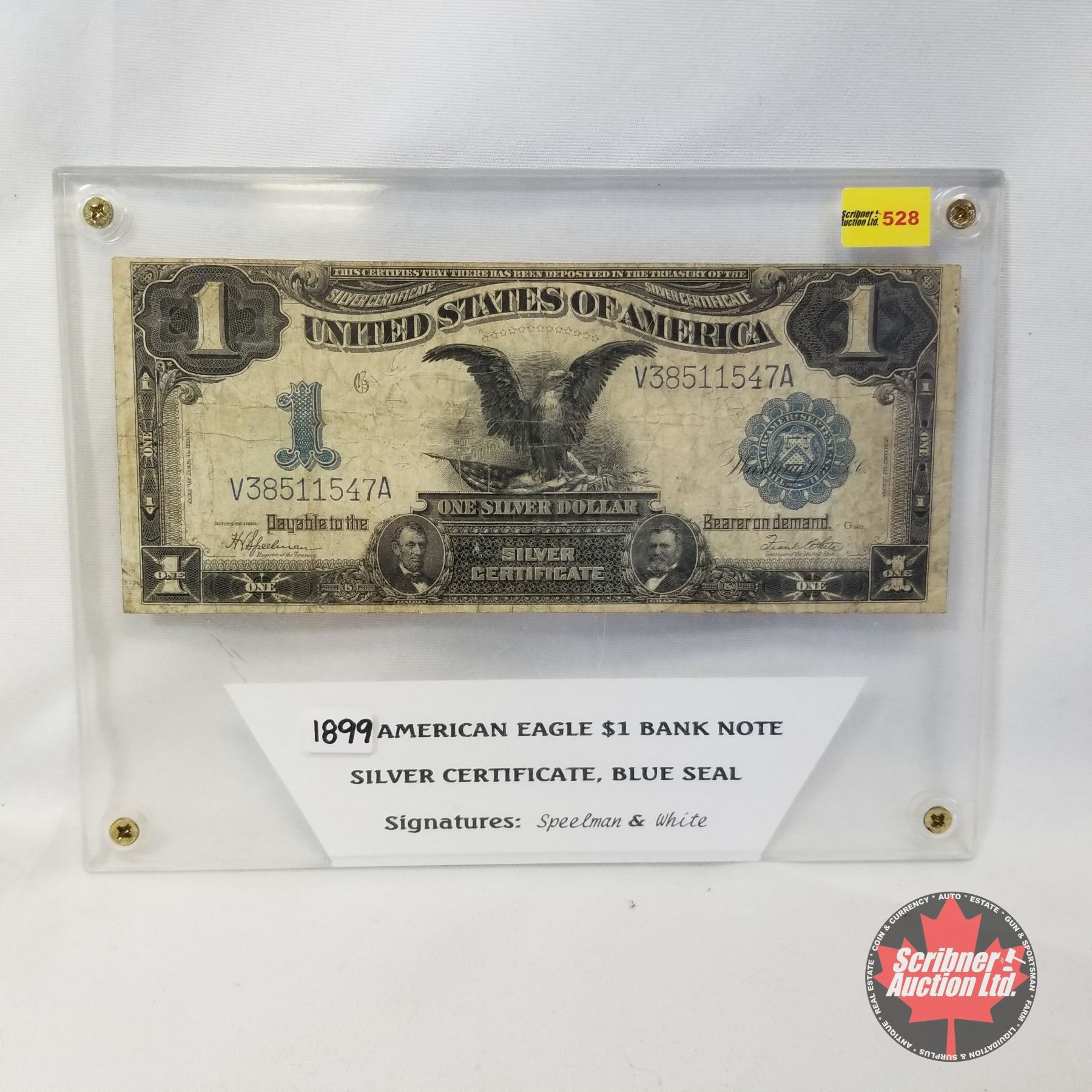 1899 American Eagle $1 Bank Note Silver Certificate "Blue Seal" (Signatures: Speelman & White S/N#V38511547A)