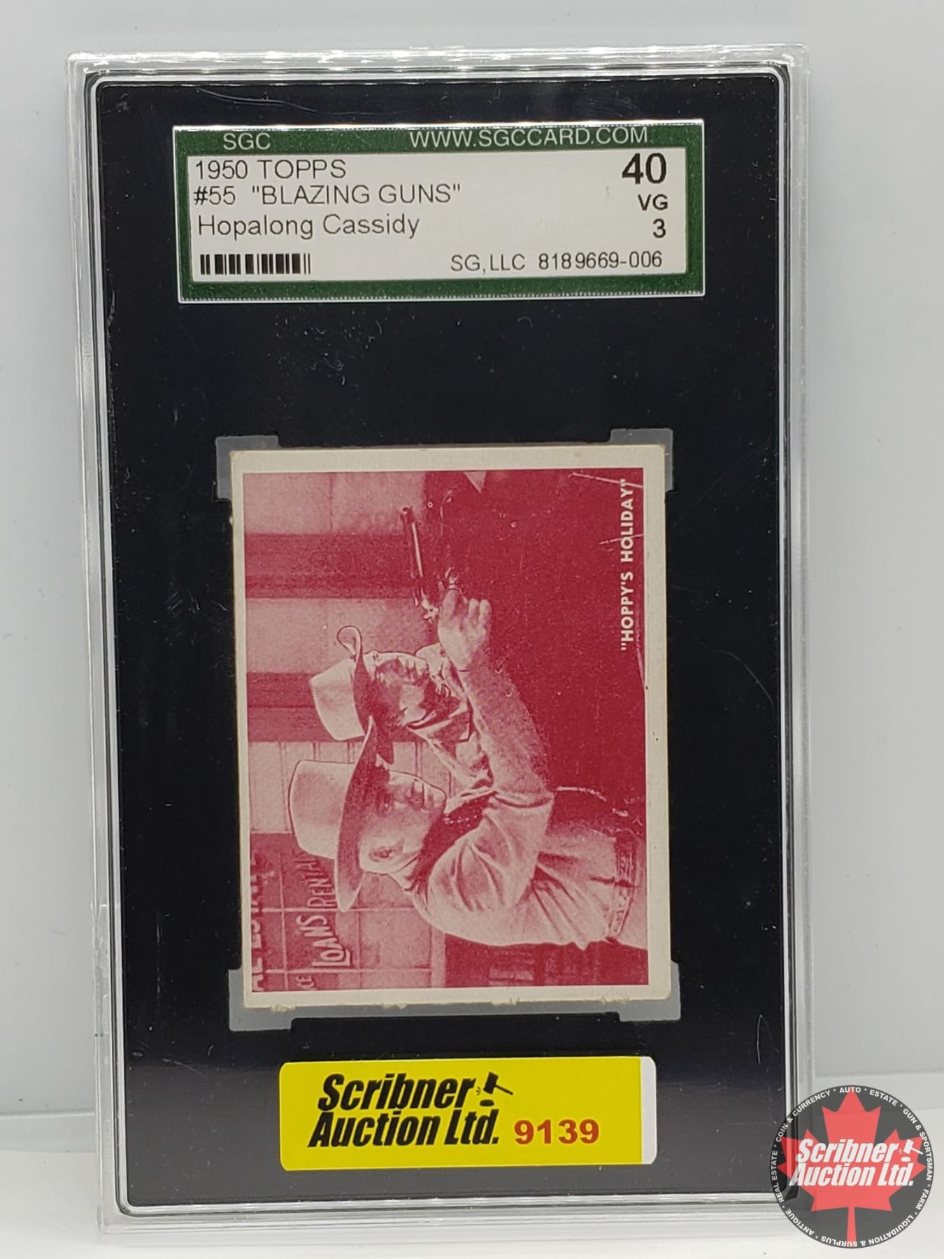 1950 TOPPS Collector Card : #55 "BLAZING GUNS" Hopalong Cassidy (Certified SCG : VG40) (SEE PICS!)