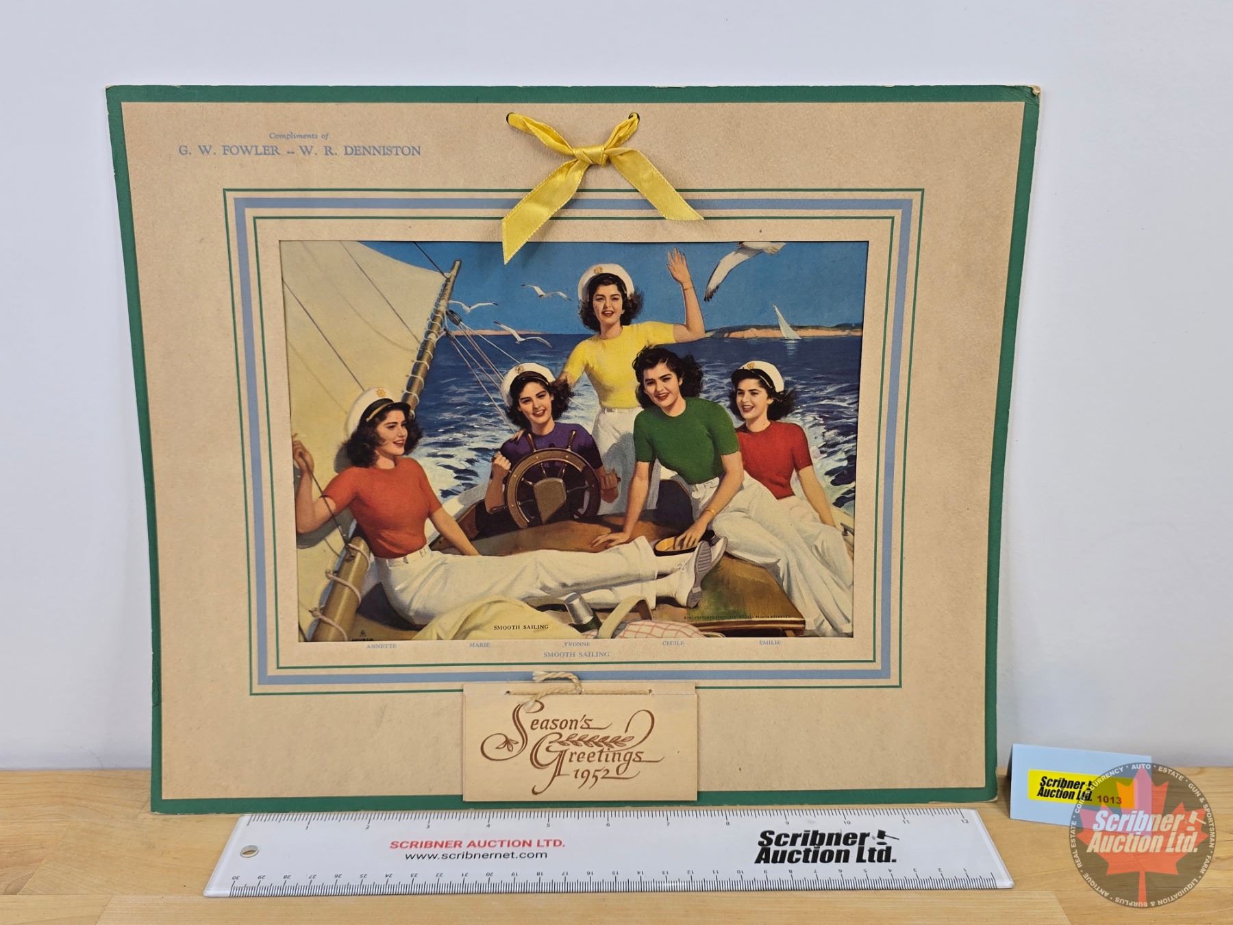 1952 Calendar "Seasons Greetings" : Compliments of G.W. Fowler .. W.R. Denniston (Complete)