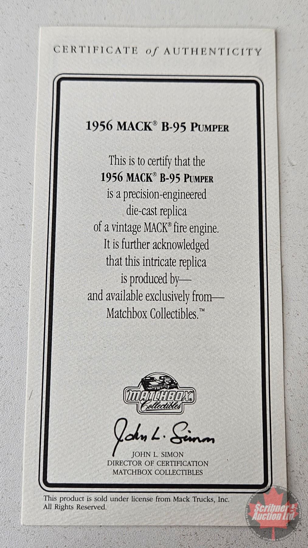 1956 MACK B-95 Pumper : Models of Yesteryear (Matchbox)