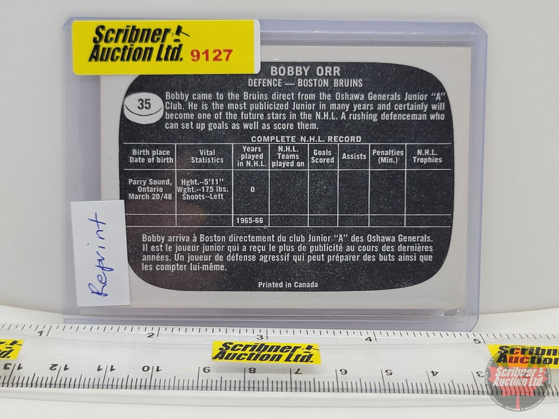 1965-66 Reprint #35 Bobby Orr Rookie : Bruins (In Card Sleeve) (SEE PICS!)