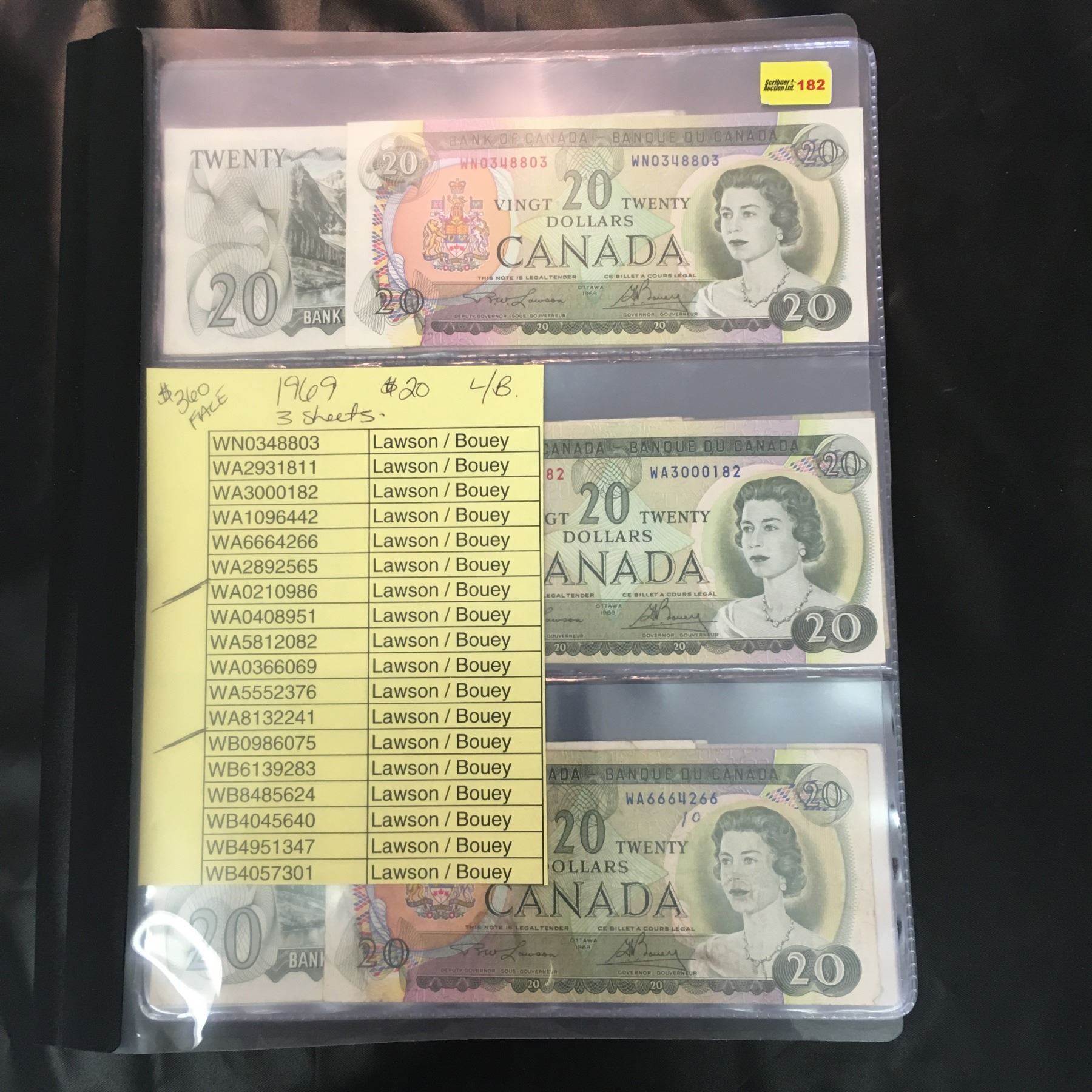 1969 Canada $20 Bills (18) : Lawson/Bouey