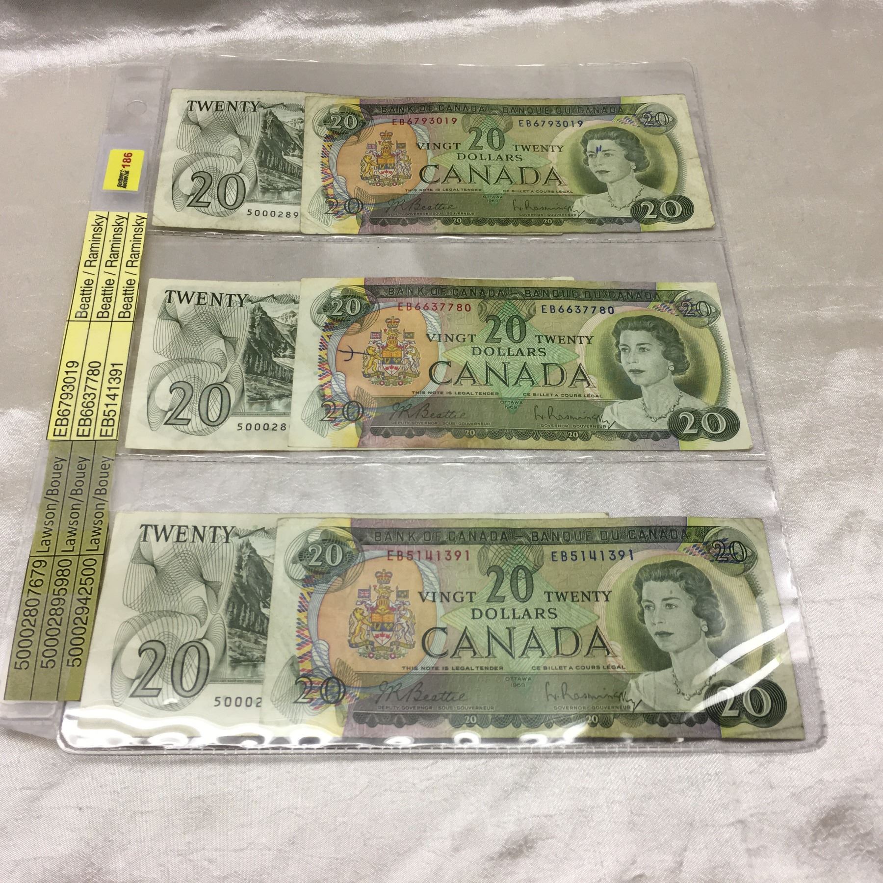 1969 Canada $20 Bills (6) : Beattie/Rasminsky