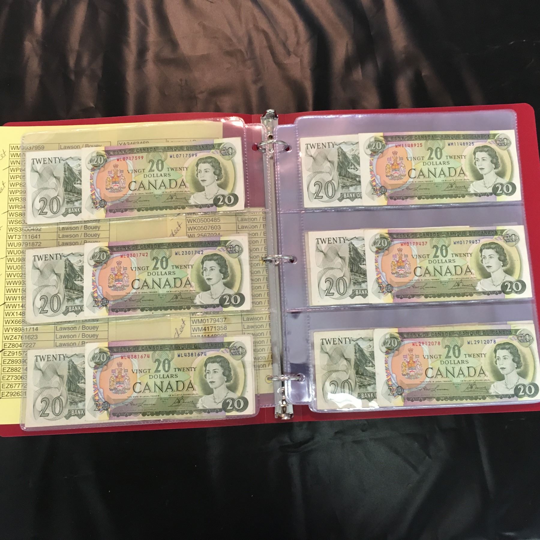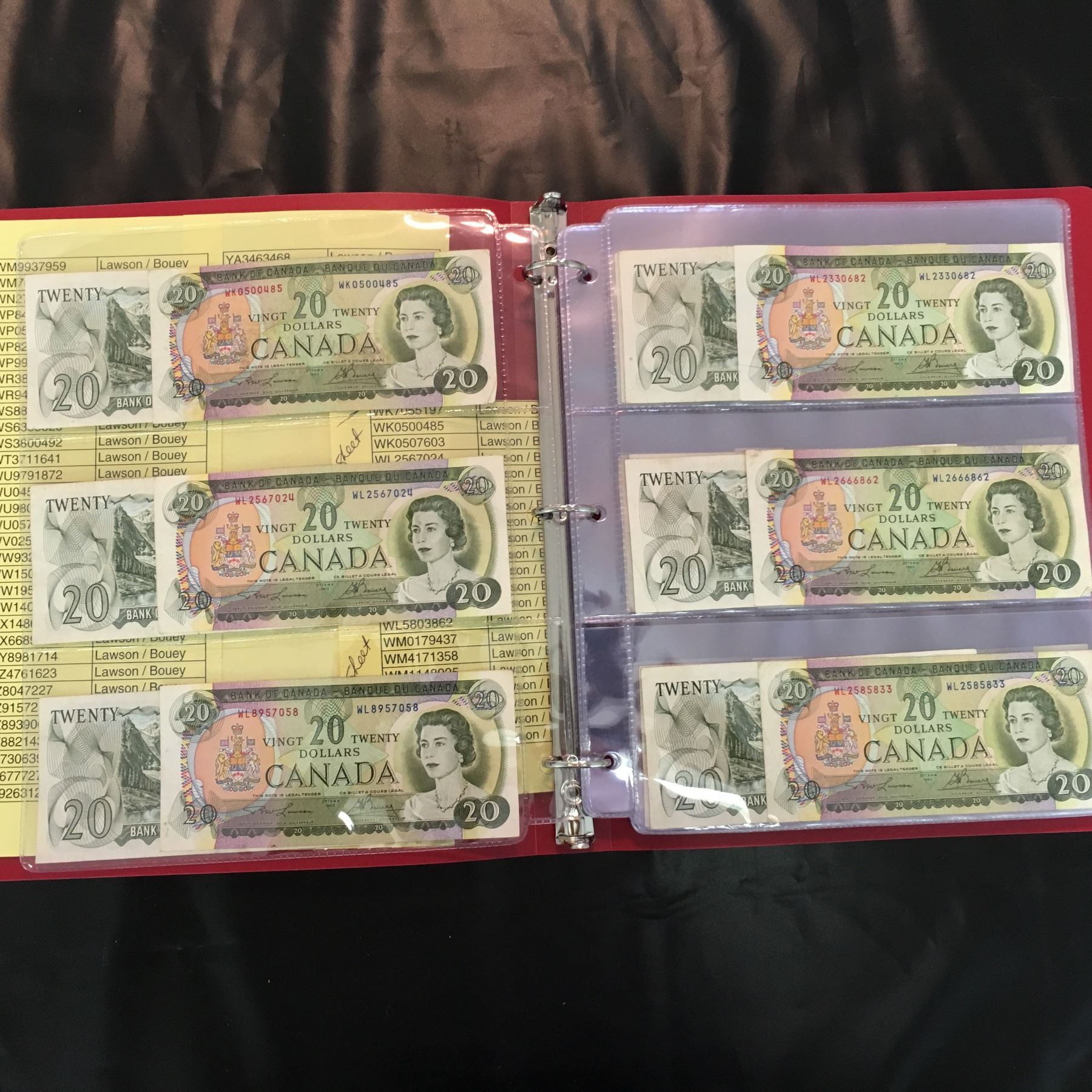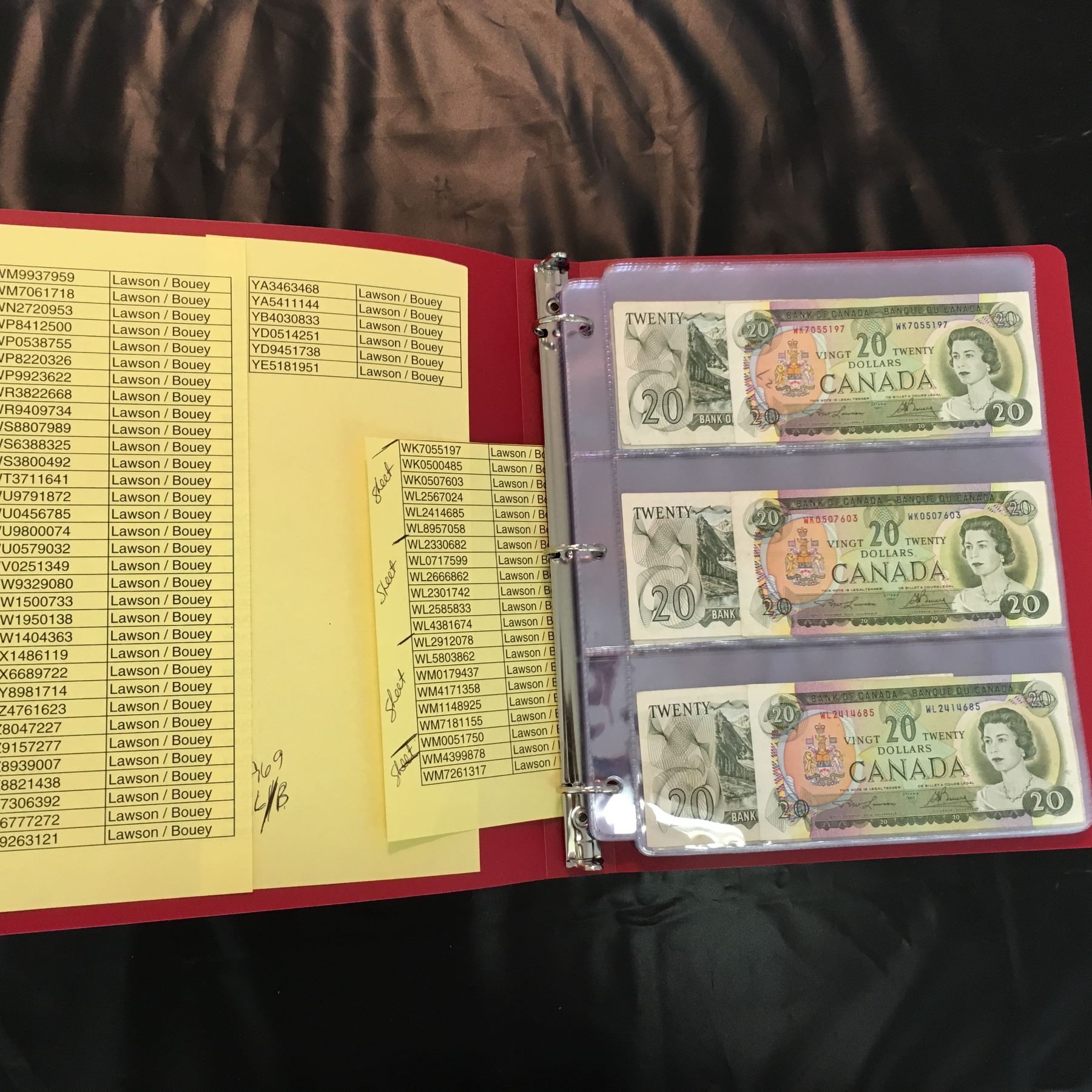 1969 Canada $20 Bills (60) : Lawson/Bouey (Red Binder)