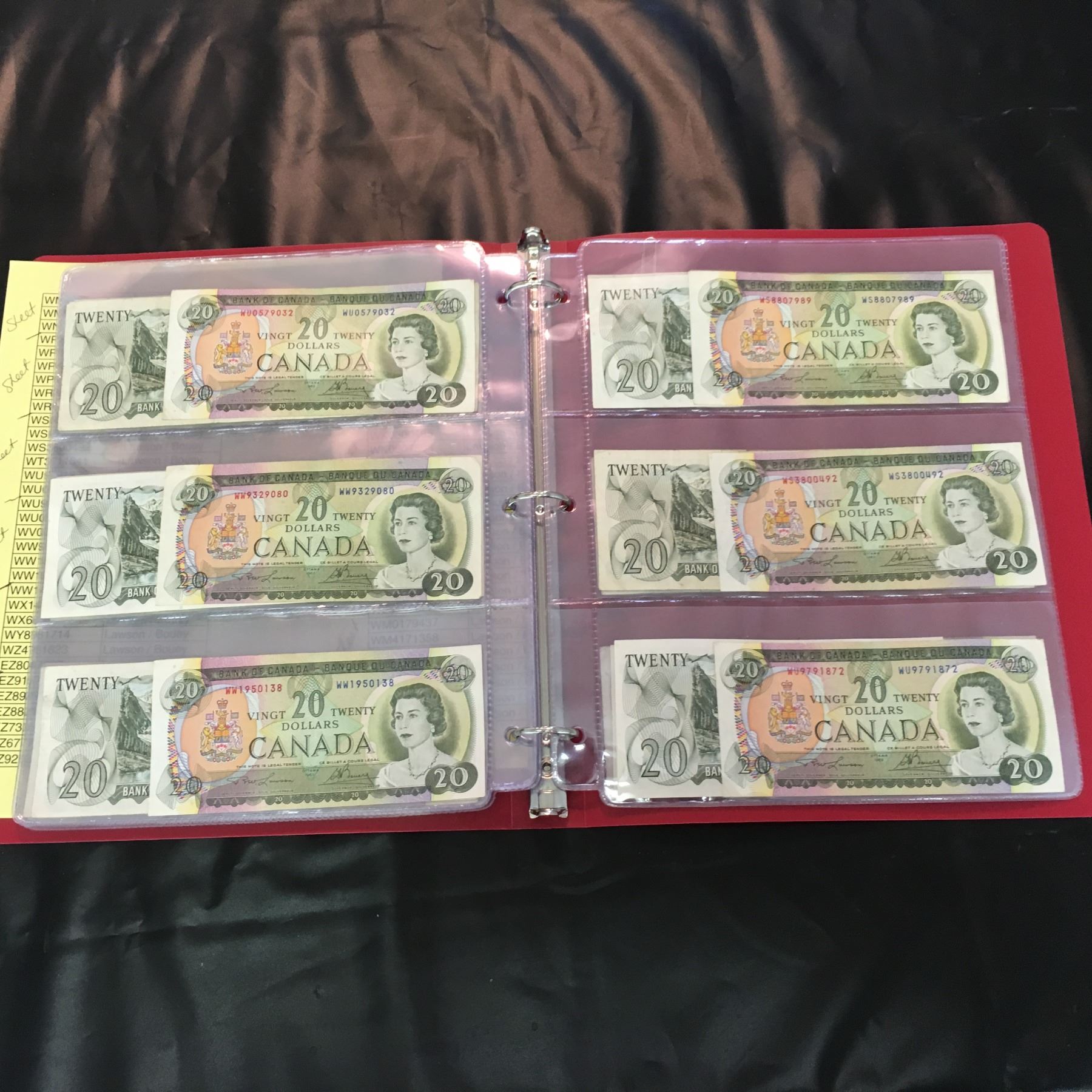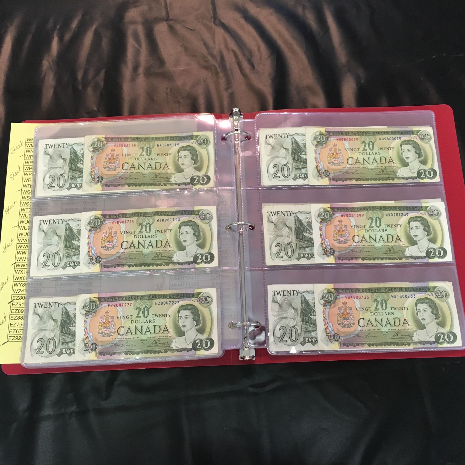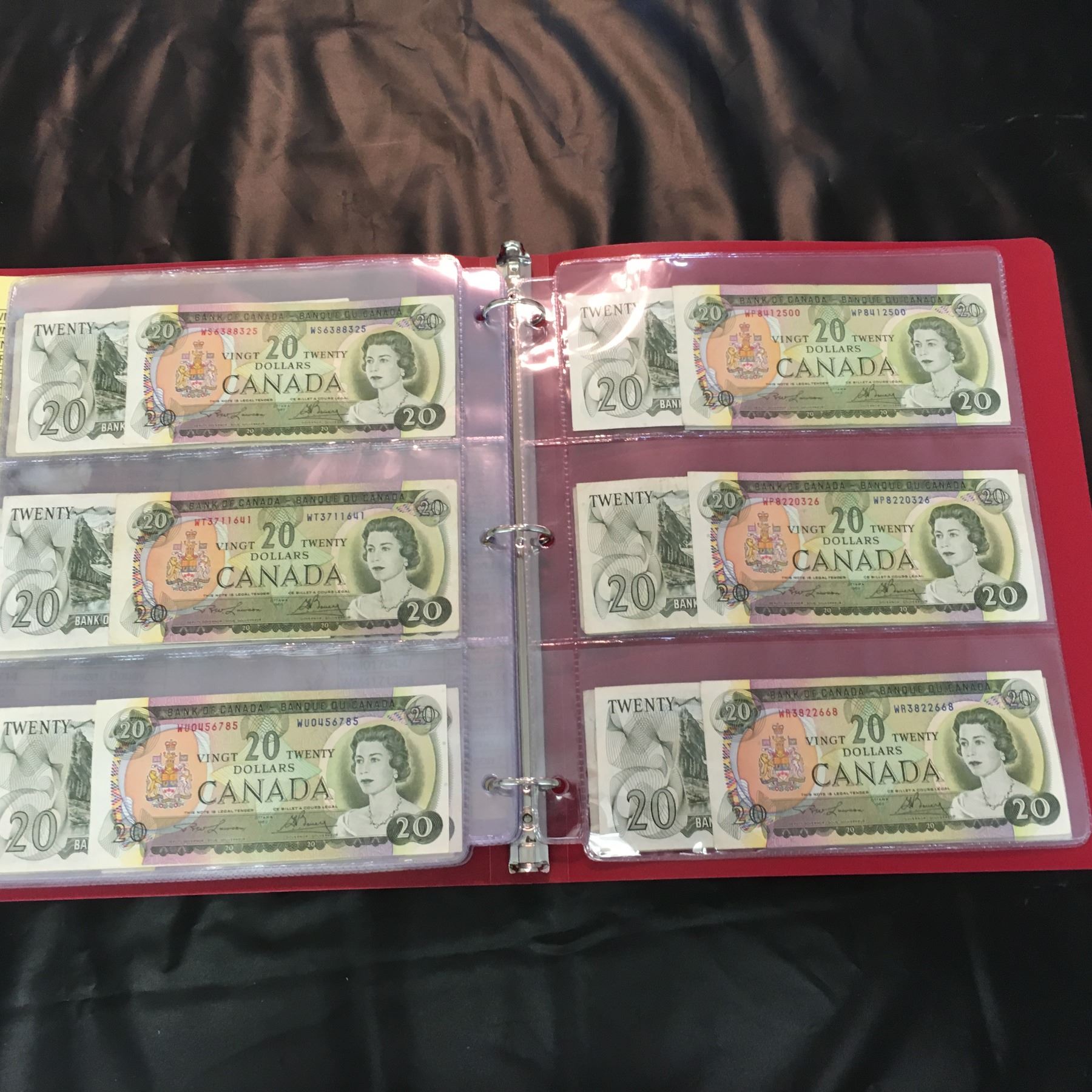 1969 Canada $20 Bills (60) : Lawson/Bouey (Red Binder)