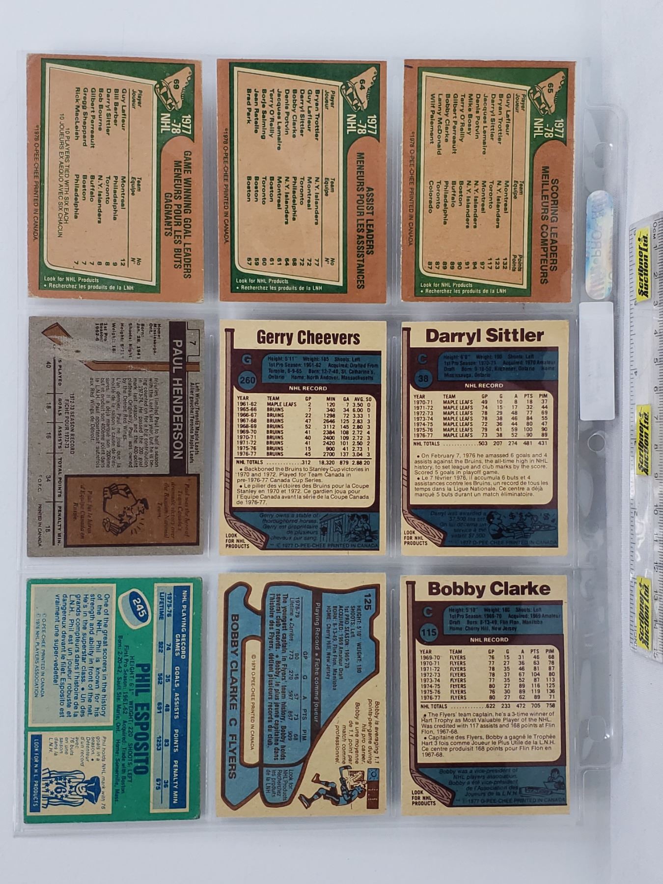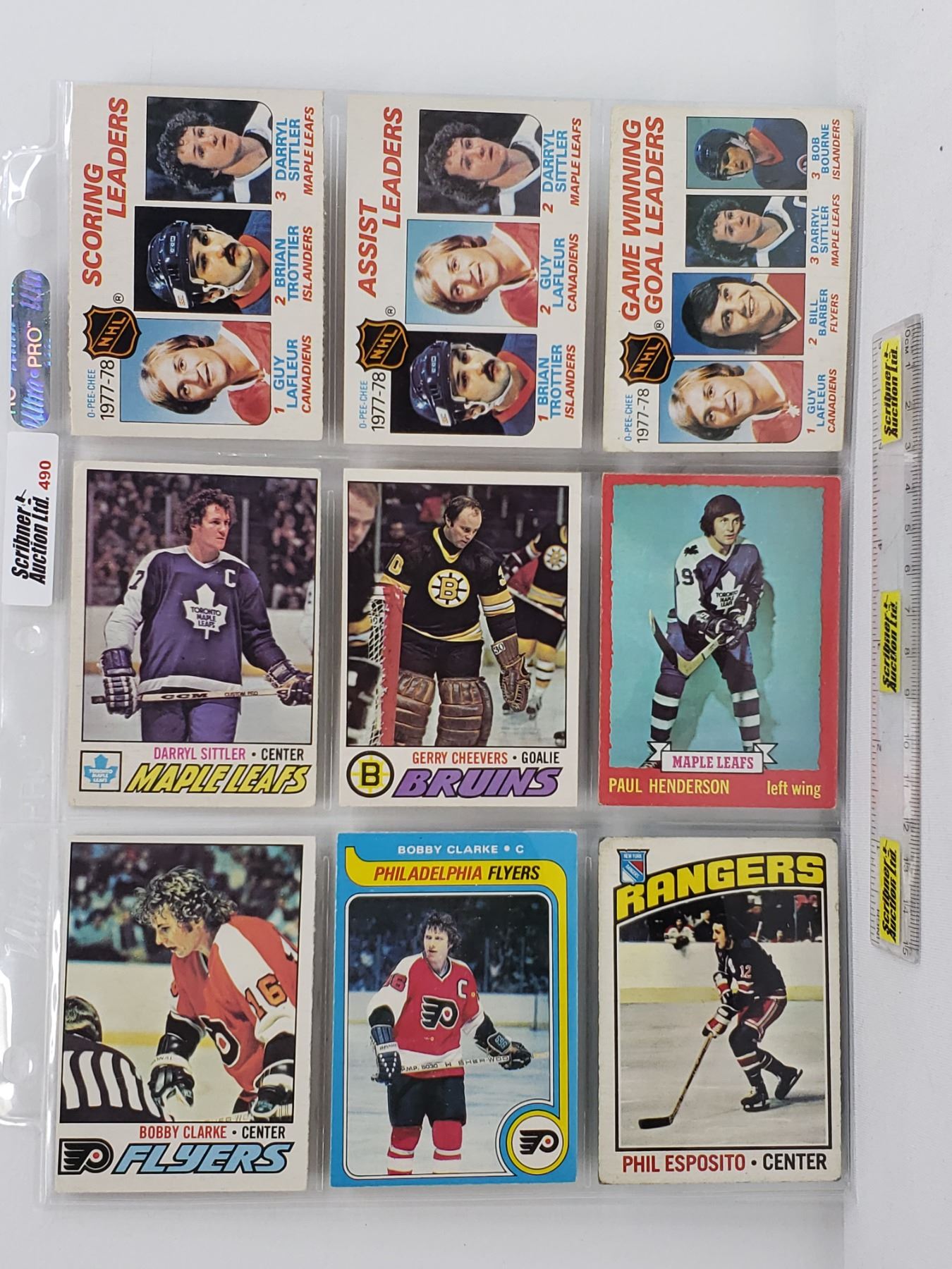 1970"s Variety - Hockey Cards (Sheet of 9) : Scoring Leaders (Guy Lafleur, Brian Trottier, Darryl Sittler), Assist Leaders (Brian Trottier, Guy Lafleur, Darryl Sittler), Gerry Cheevers, Paul Henderson, Bobby Clarke, Phil Esposito (SEE PICS!)