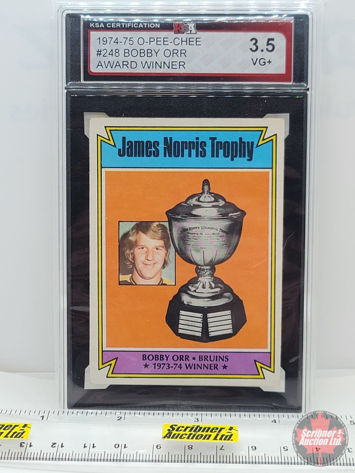 1974-75 O-Pee-Chee #248 Bobby Orr Award Winner : James Norris Trophy (Certified KSA 3.5 VG+) (SEE PICS!)