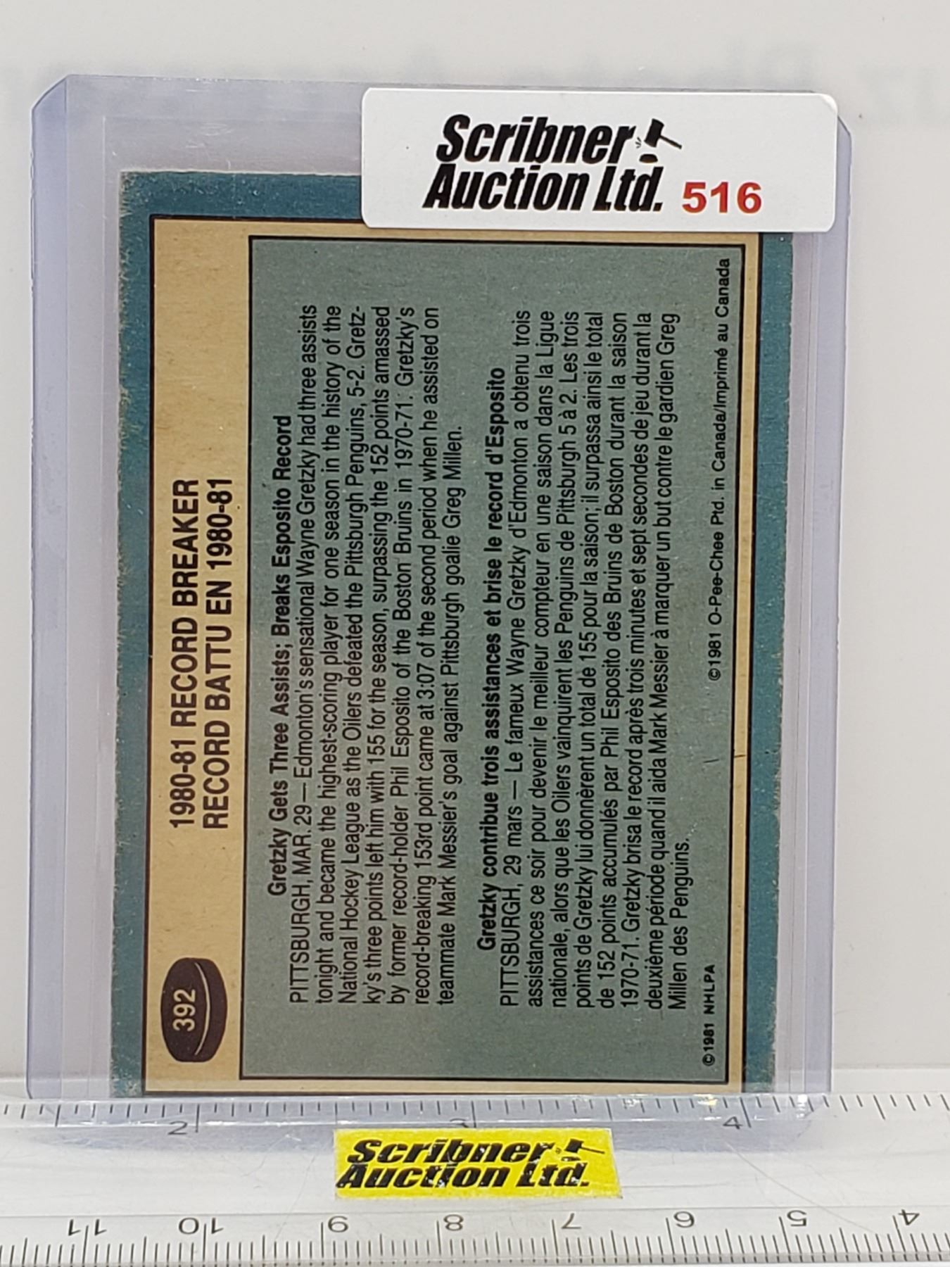 1980-81 O Pee Chee #392 Record Breaker - Wayne Gretzky : Oilers (Card Sleeve) (SEE PICS!)