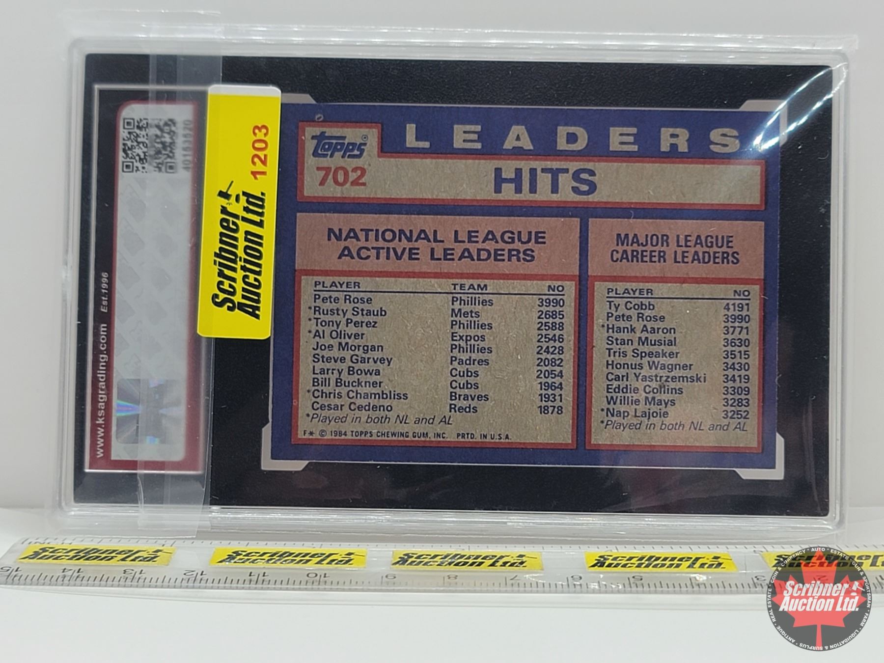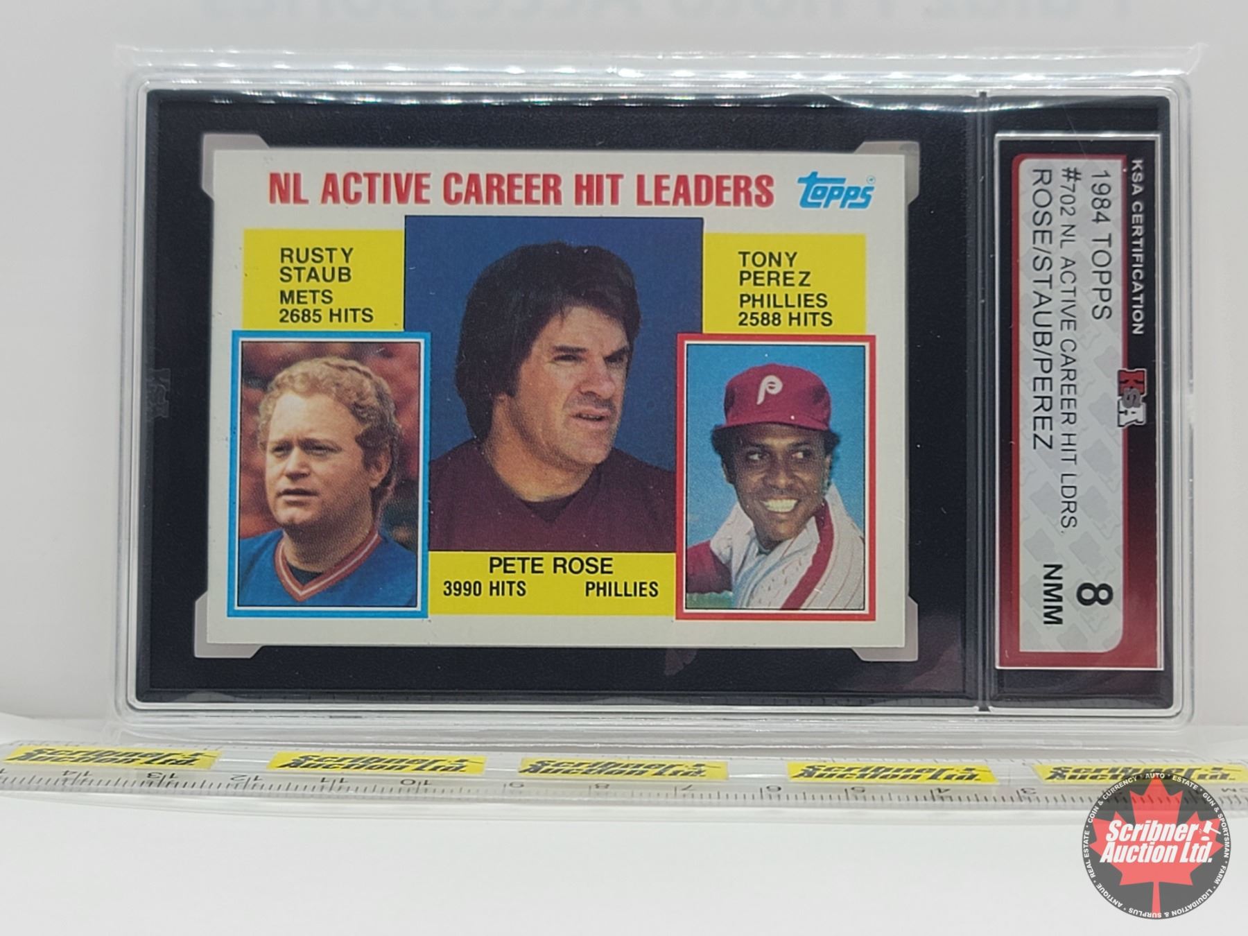 1984 Topps Baseball Card #702 National League Active Career Hit Leaders : Rose/Staub/Perez (Certified KSA 8 NMM) (SEE PICS!)