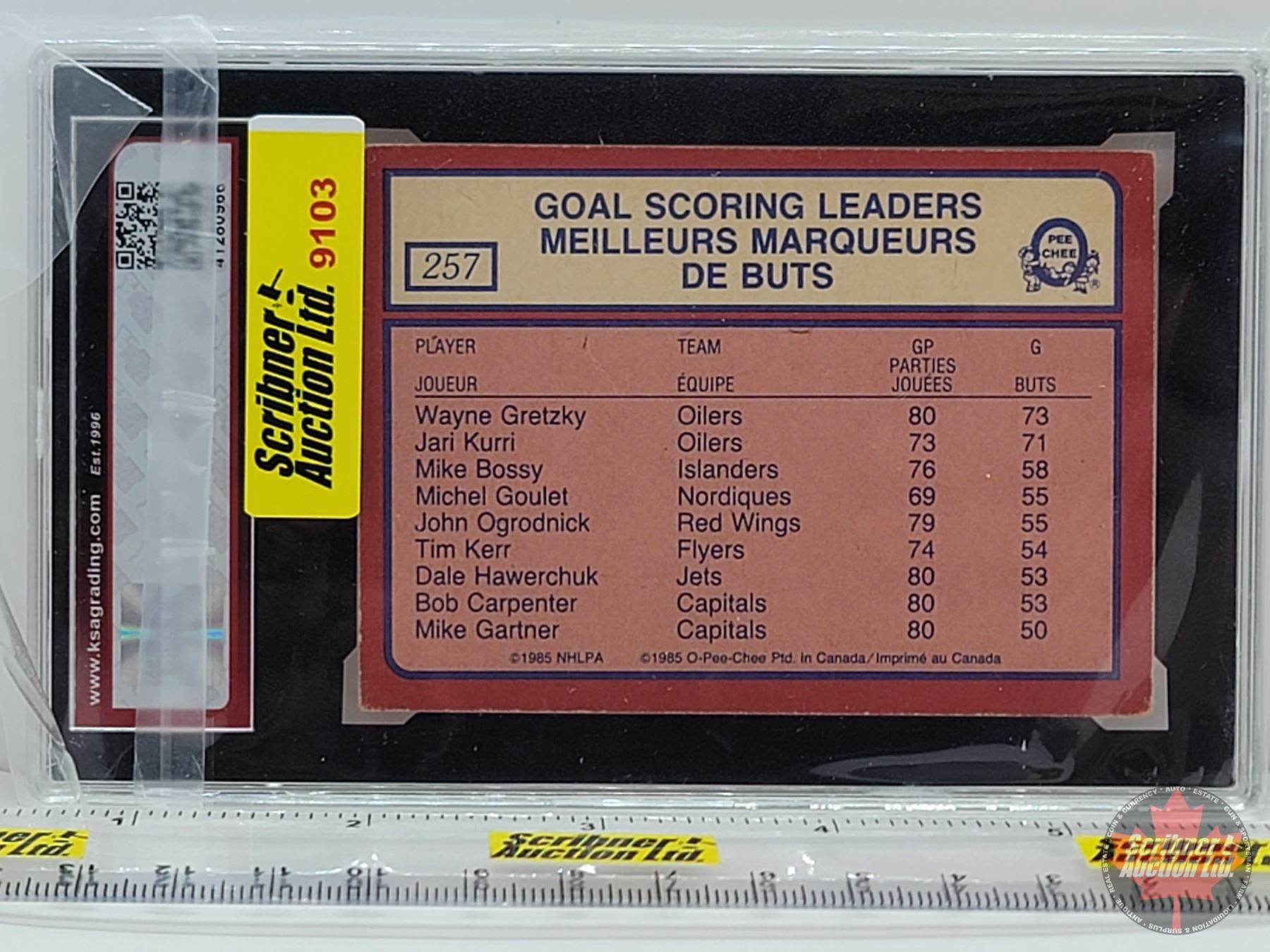 1985-86 O-Pee-Chee #257 Wayne Gretzky League Leader : Oilers (Certified KSA 3 VG) (SEE PICS!)
