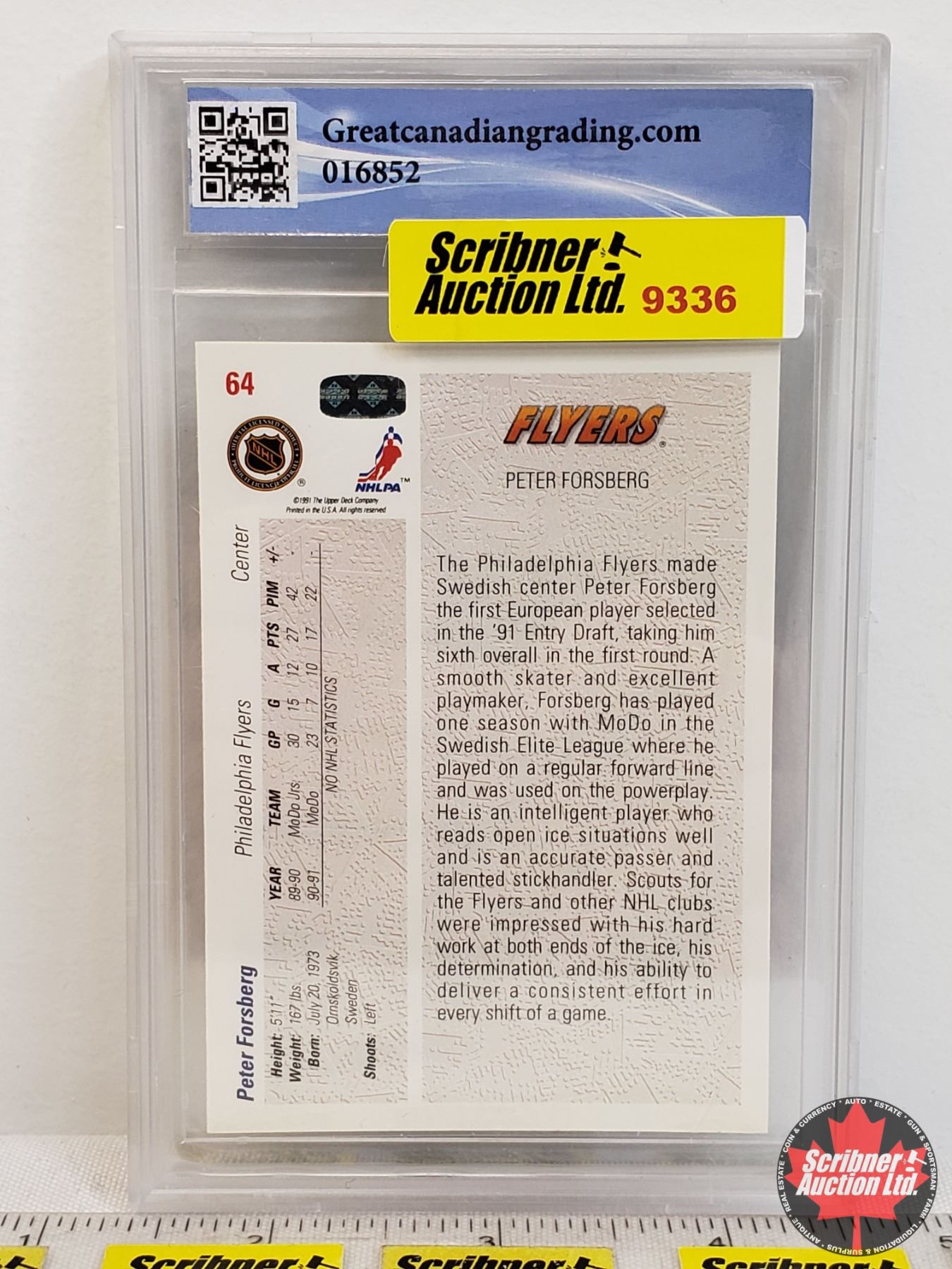 1991 Upper Deck #64 Peter Forsberg Rookie Card : Flyers (Certified GCG 10) (SEE PICS!)