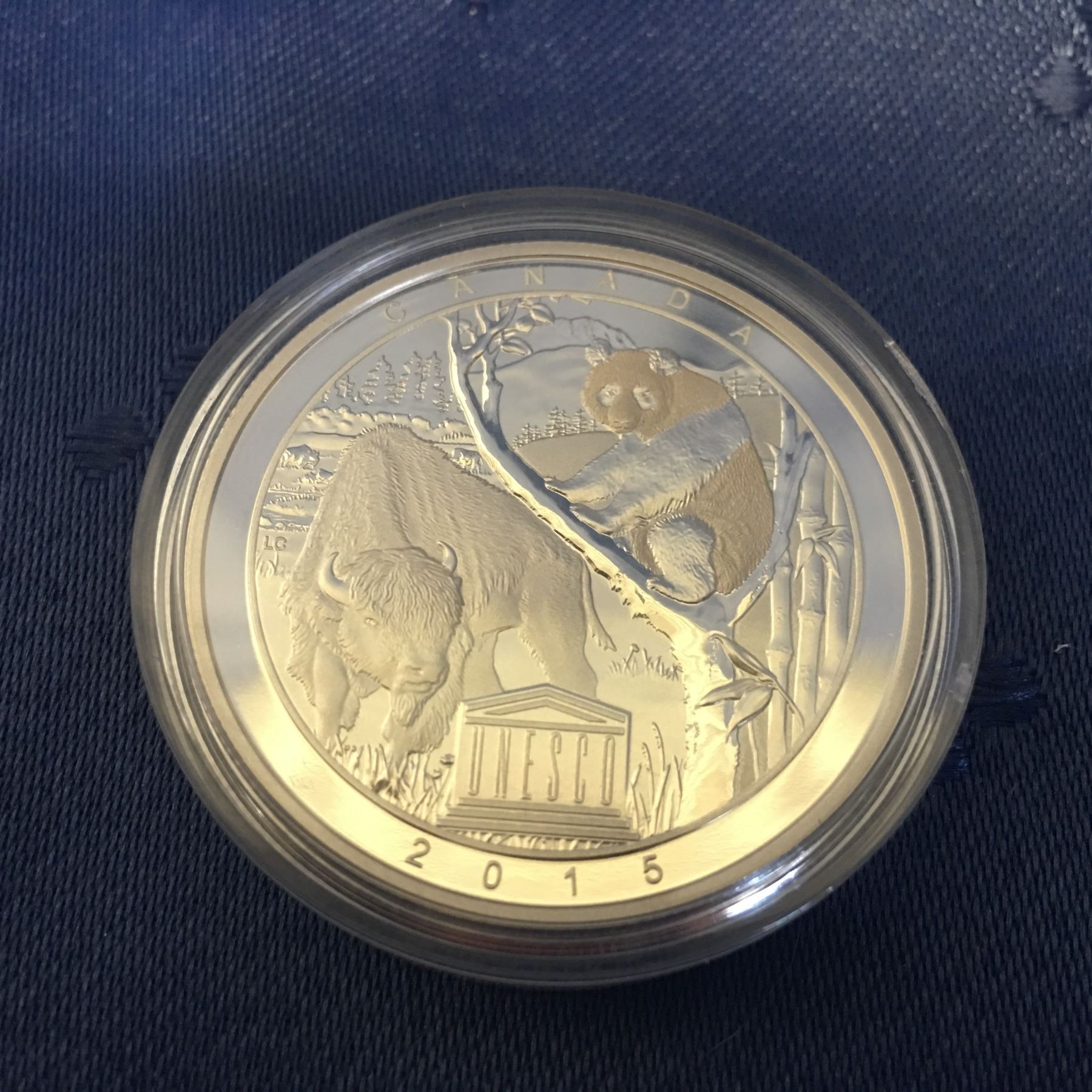 2015 $20 Fine Silver Coin : UNESCO At Home and Abroad Wood Buffalo National Park and Sichuan Giant Panda Sanctuaries