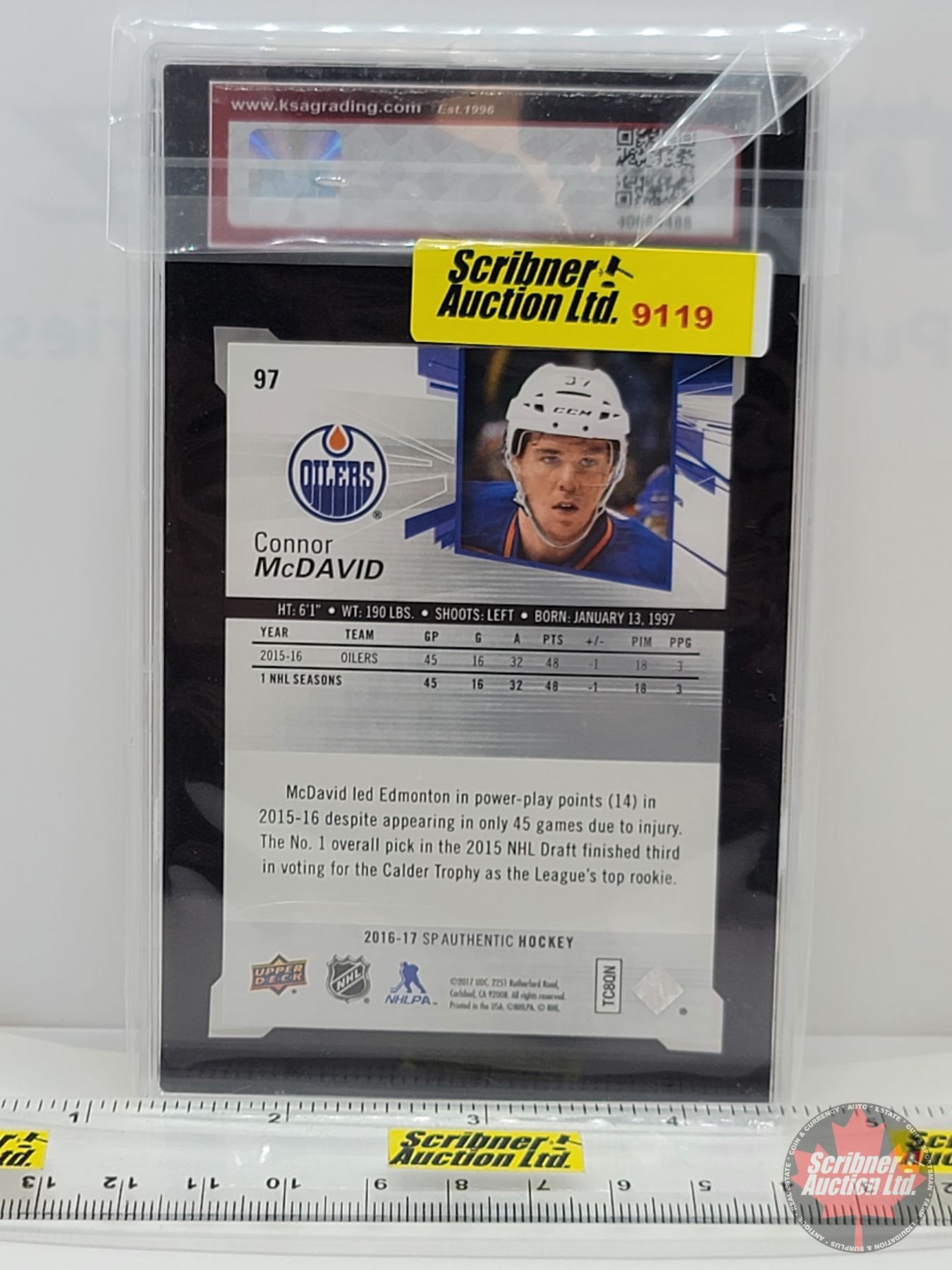 2016-17 SP Authentic #97 Connor McDavid : Oilers (Certified KSA 8.5 NMM+) (SEE PICS!)
