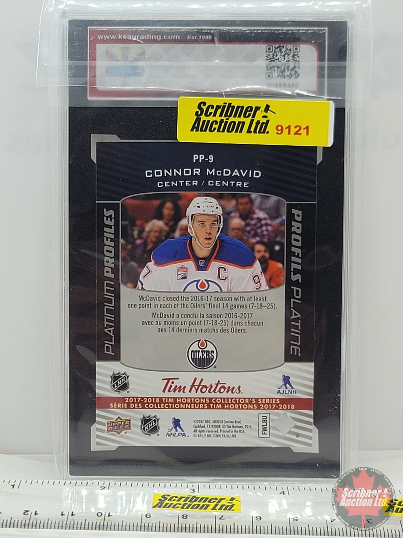 2017-18 UD Tim Hortons #PP-9 Connor McDavid Platinum Profiles : Oilers (Certified KSA 8.5 NMM+) (SEE PICS!)