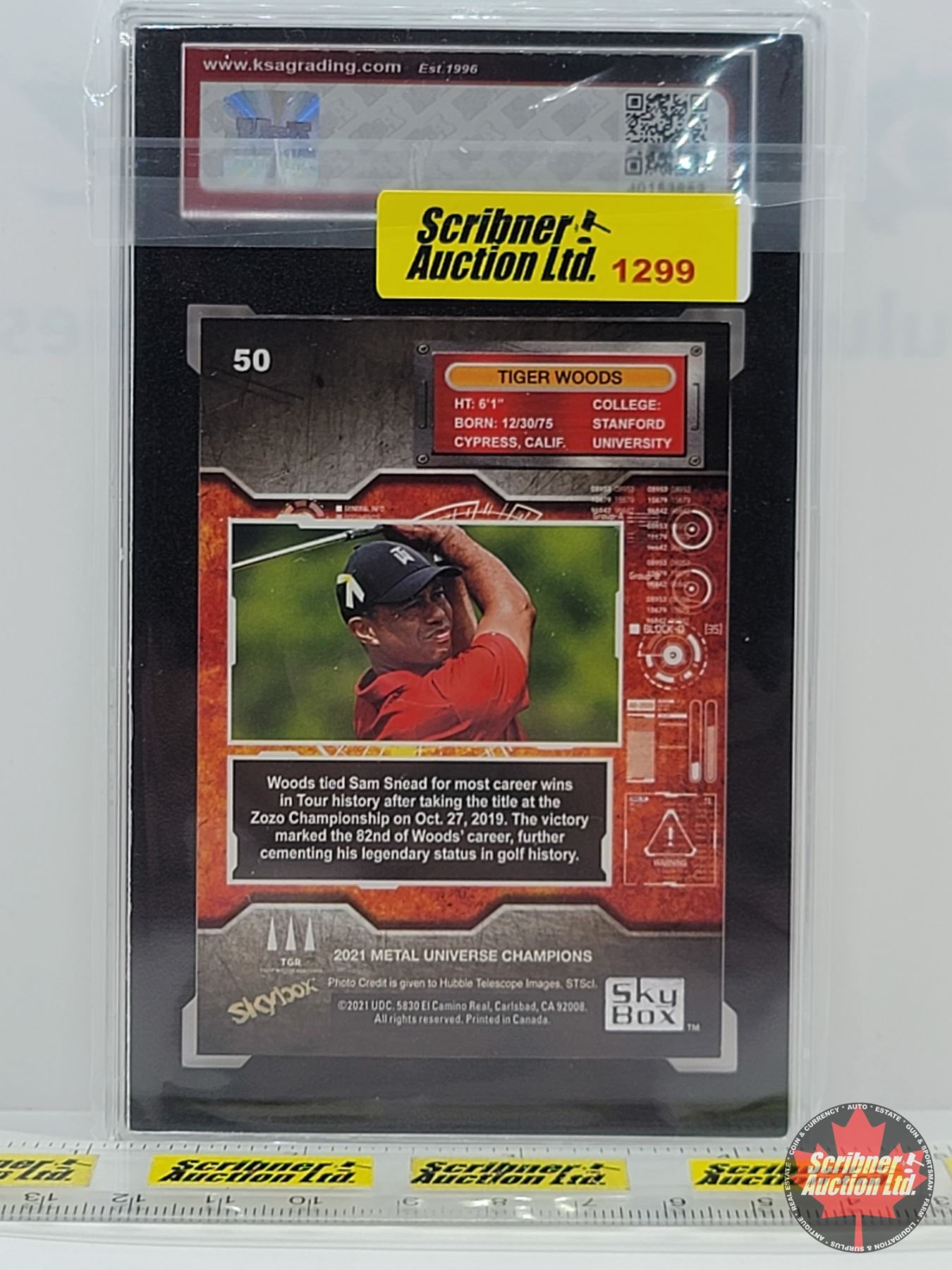 2021-22 Metal Universe Champions #50 Tiger Woods (Certified KSA 9 MINT) (SEE PICS!)