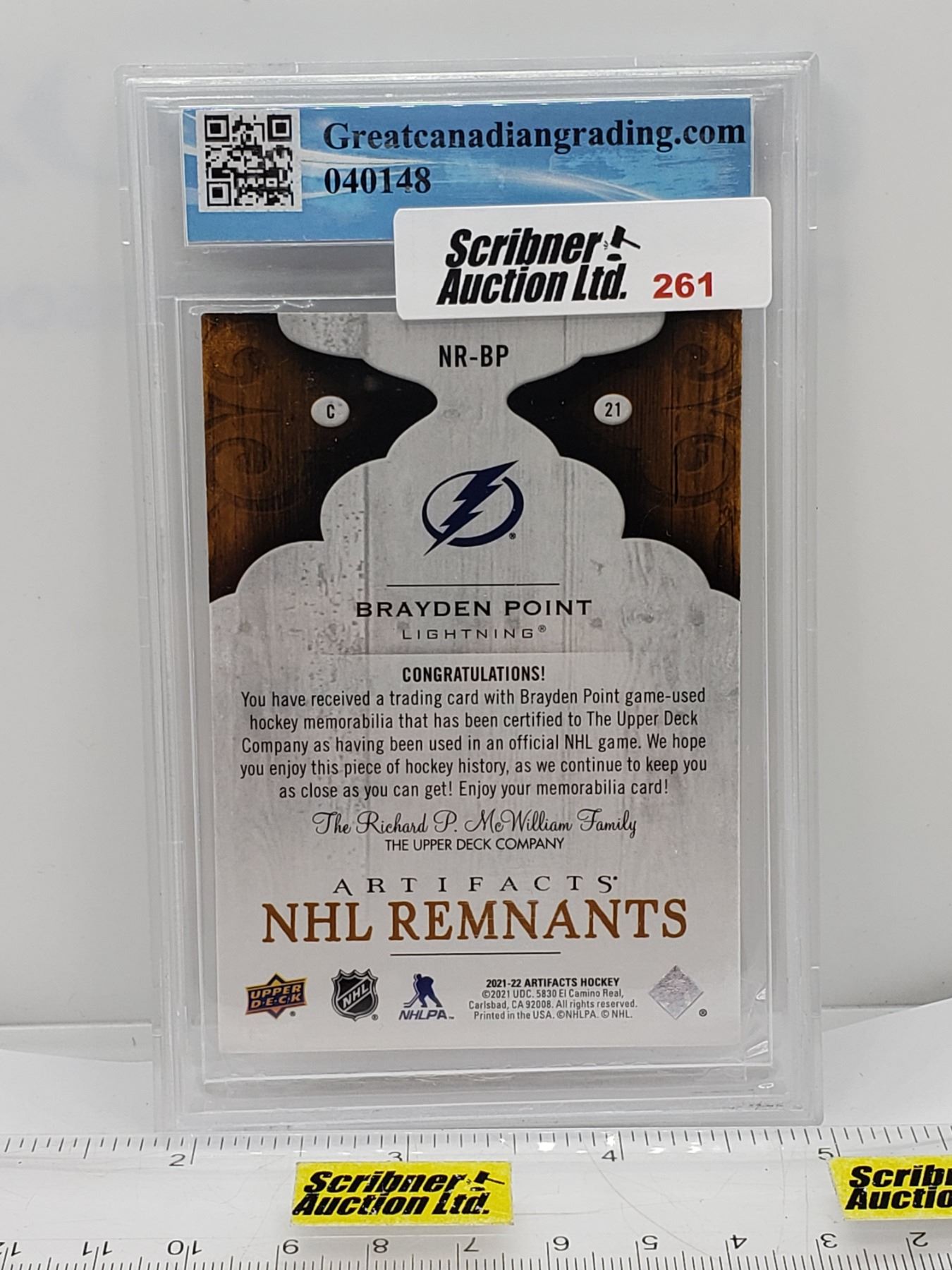 2021-22 Upper Deck #NR-BP Brayden Point NHL Remnants : Lightning (Certified GCG 9.5) (SEE PICS!)