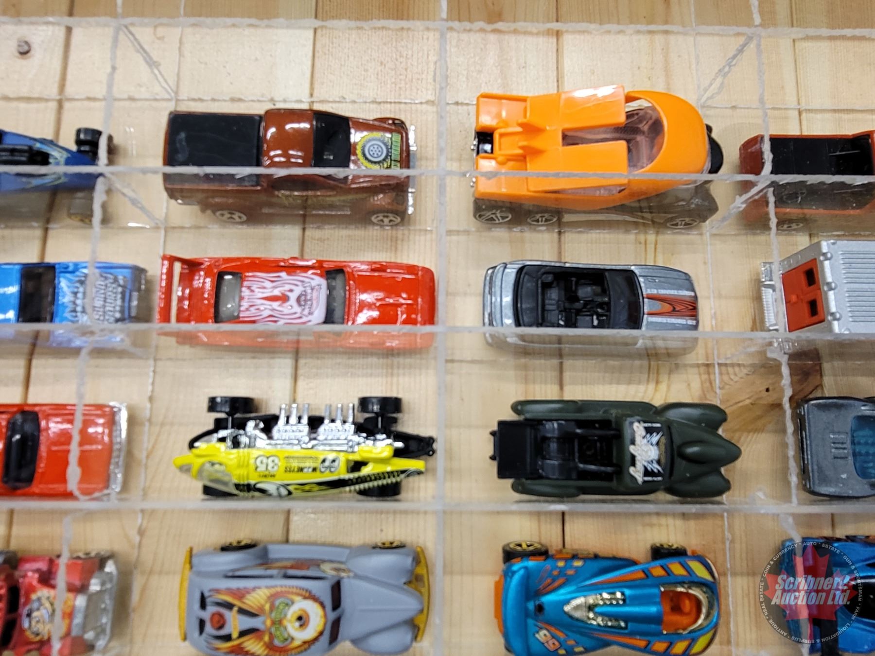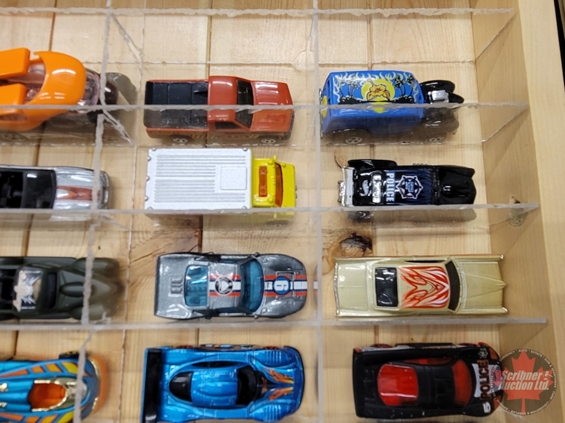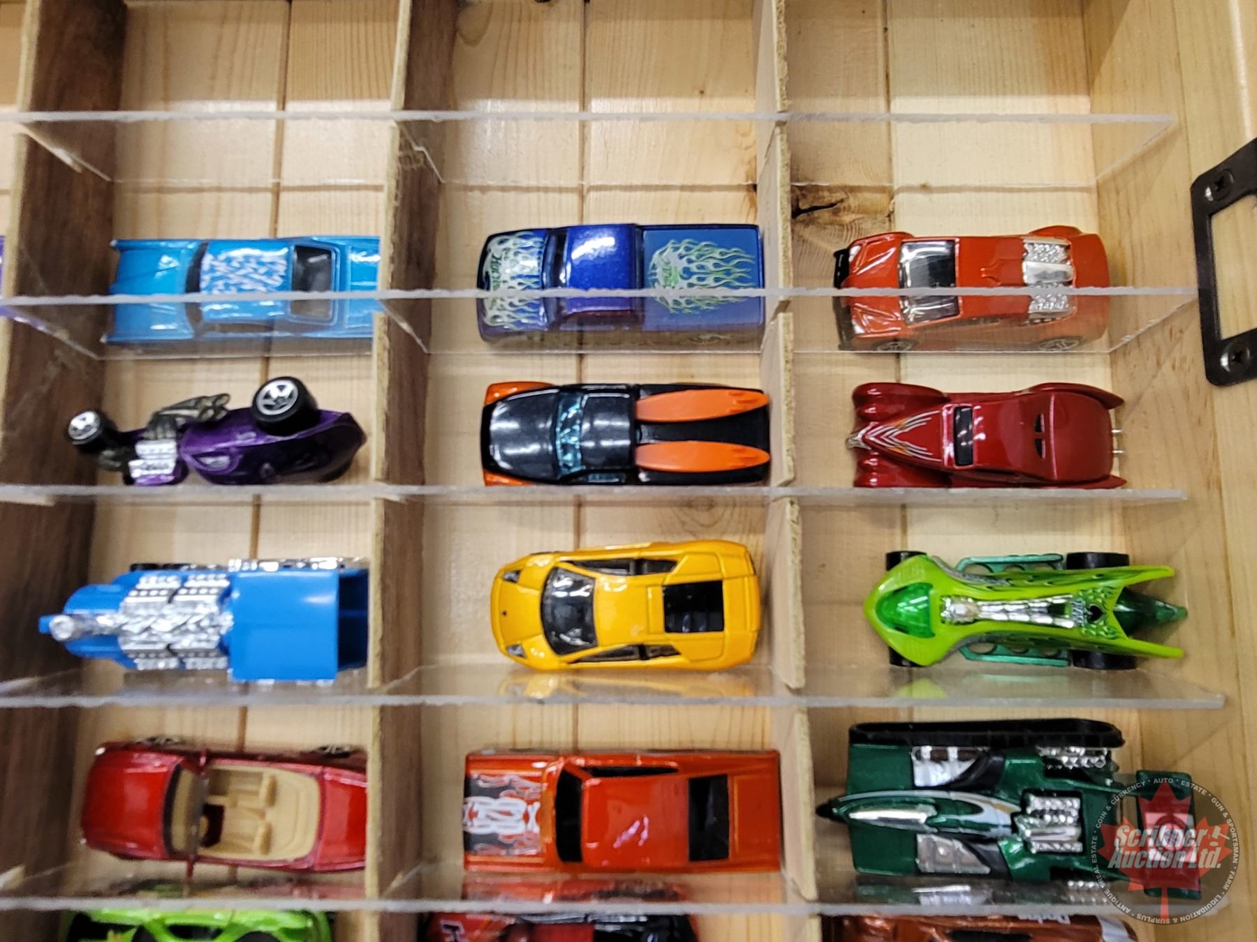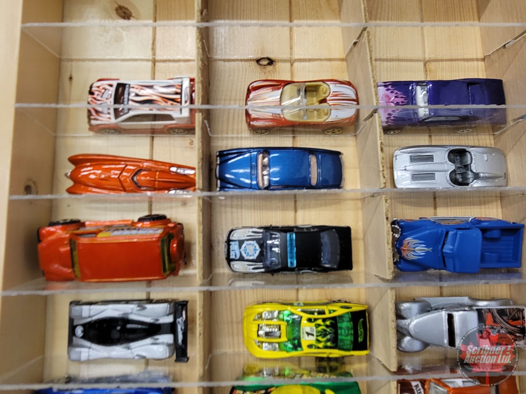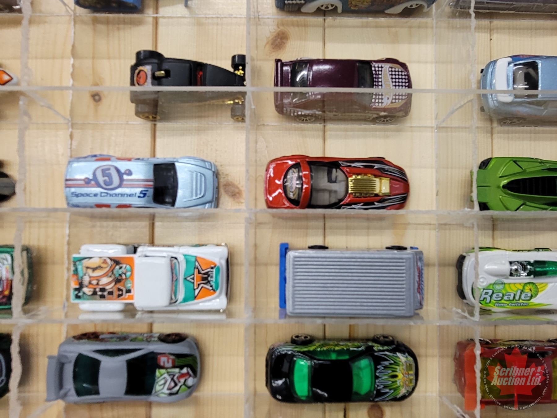 (3) Piece Display Cabinet (w/Plexi-Glass & Wood Doors) c/w (200) Hot Wheels (Total Outside Measures 25-1/2"H x 81-3/4"W x 2-1/2"D)
