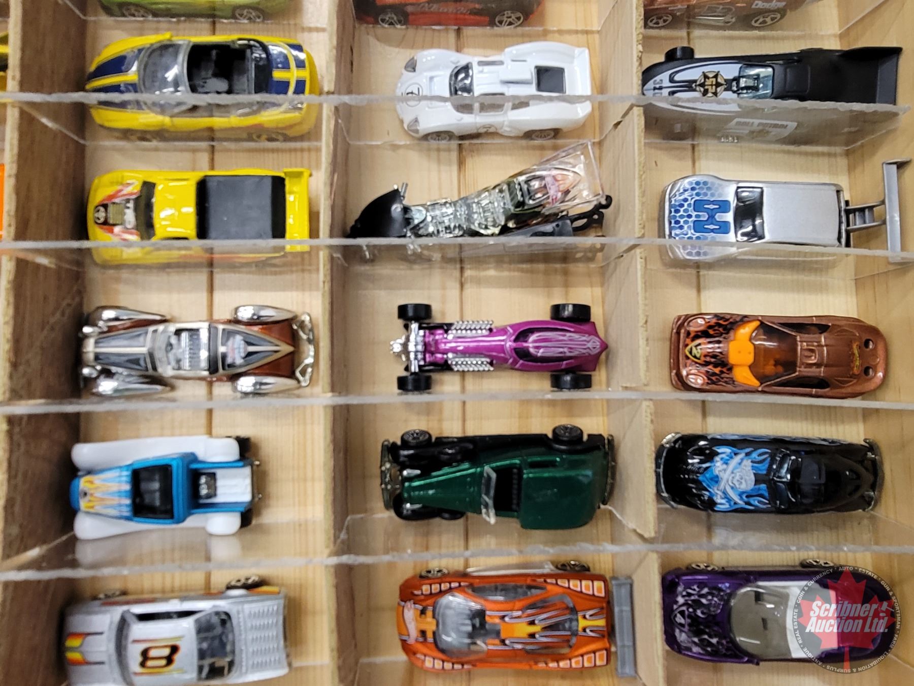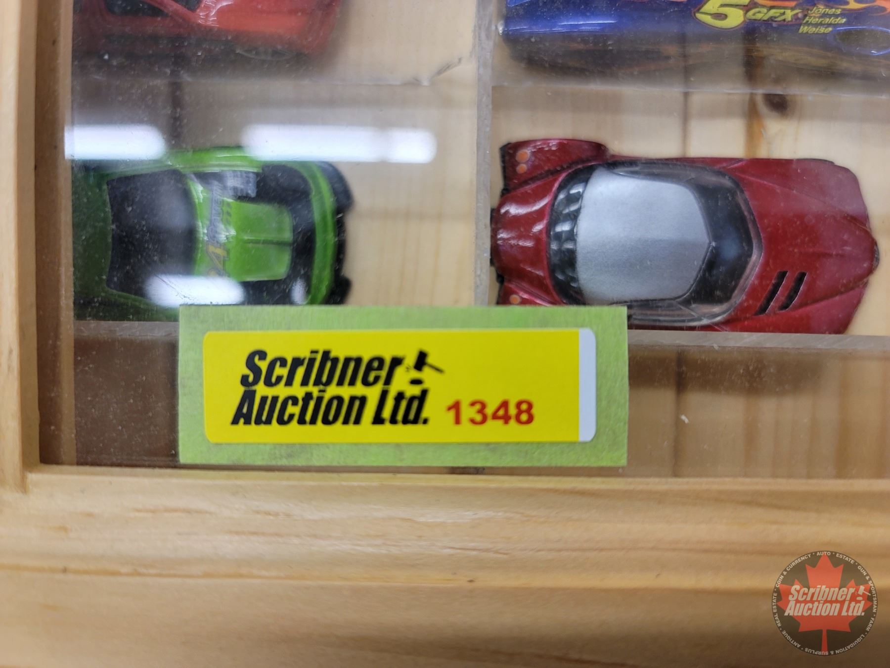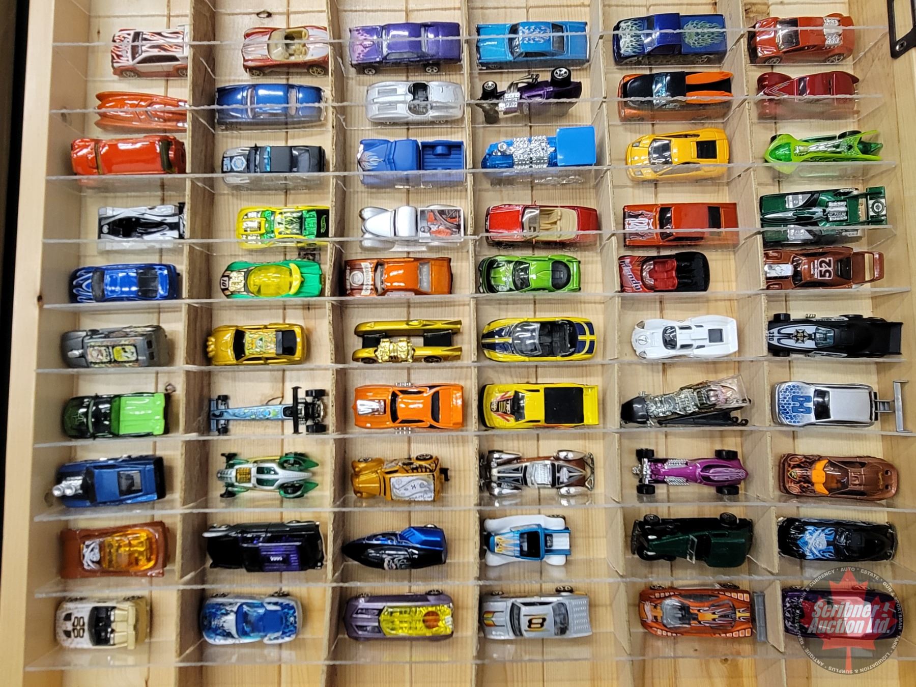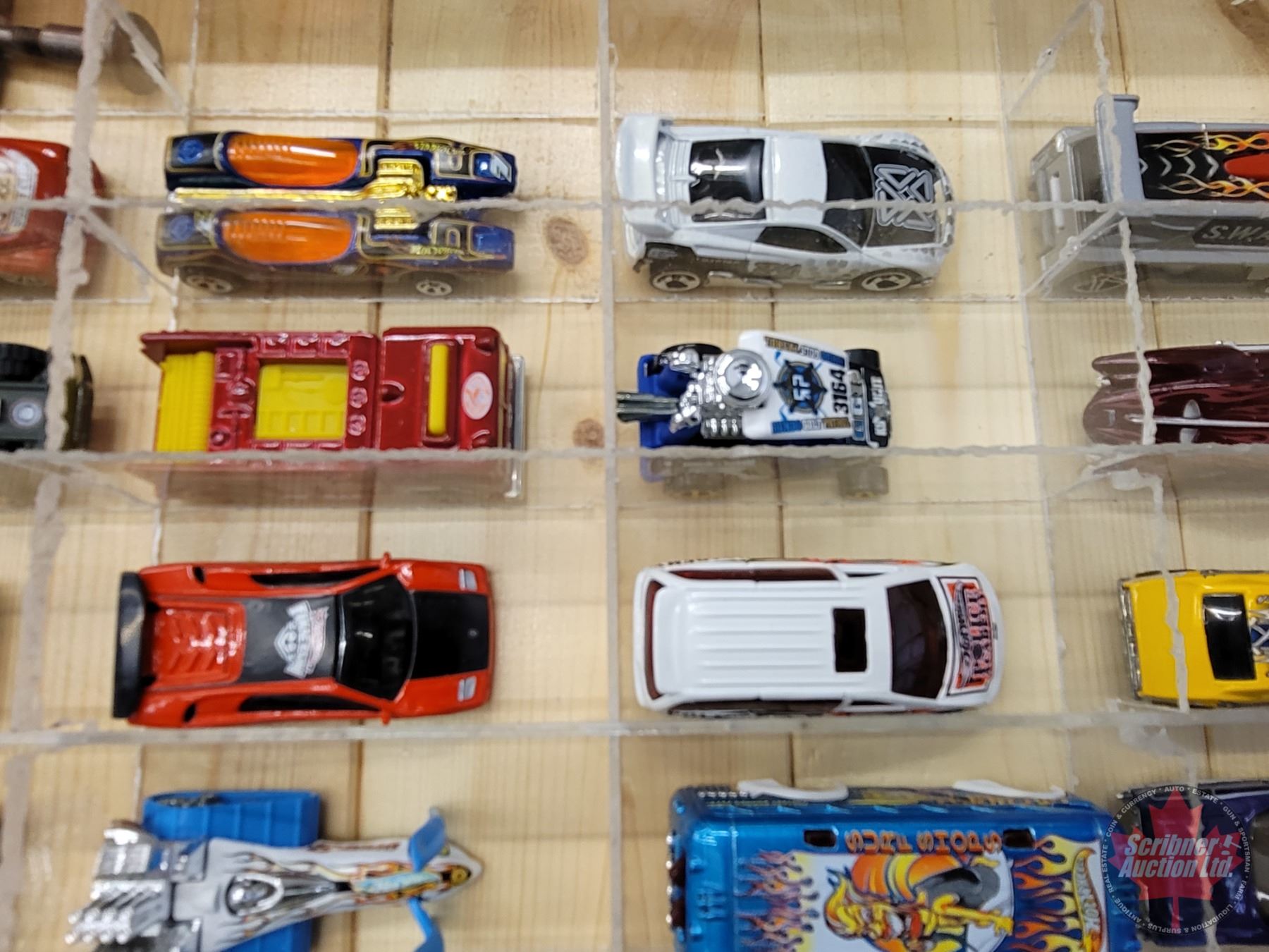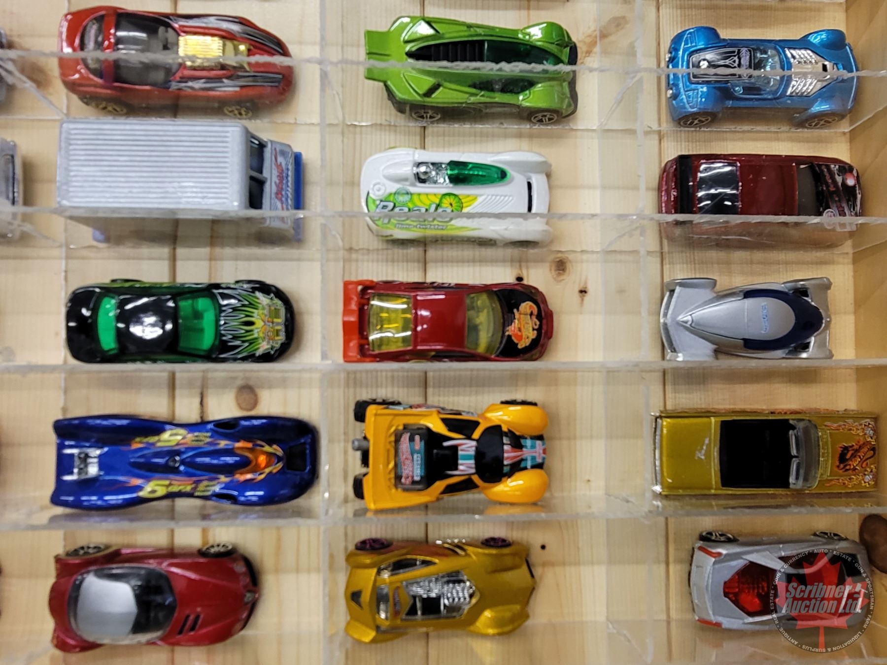 (3) Piece Display Cabinet (w/Plexi-Glass & Wood Doors) c/w (200) Hot Wheels (Total Outside Measures 25-1/2"H x 81-3/4"W x 2-1/2"D)