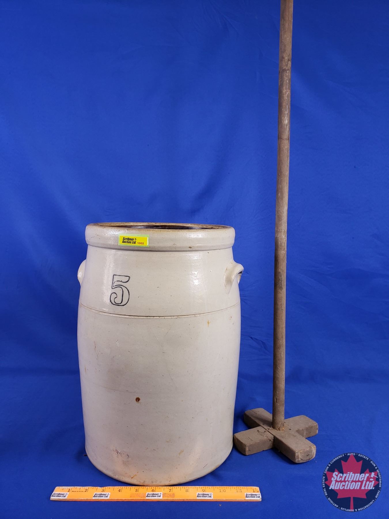 5 Gal Butter Churn w/Paddle (No Lid) (Crock : 16"H x 12"Dia) (Paddle 43") (SEE PICS!)