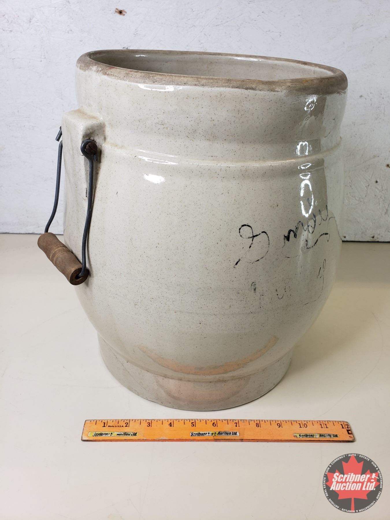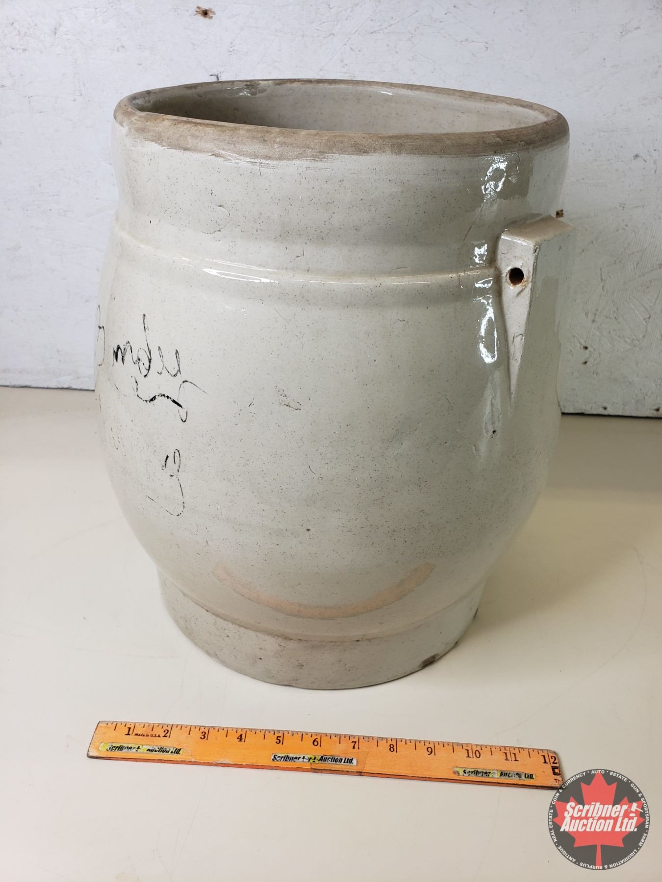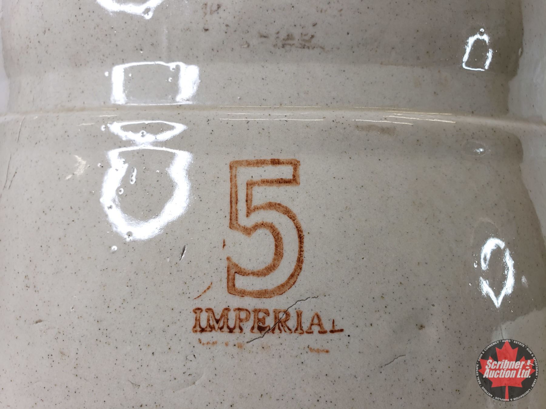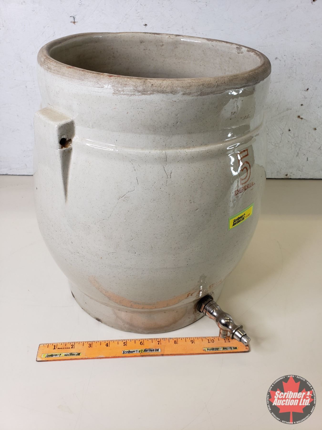 5gal Imperial ICE WATER Crock "Hycroft Medicine Hat, Alberta" (Note: Missing Handle / No Lid / Crock has hairline crack inside bottom) (15"H) (SEE PICS!)