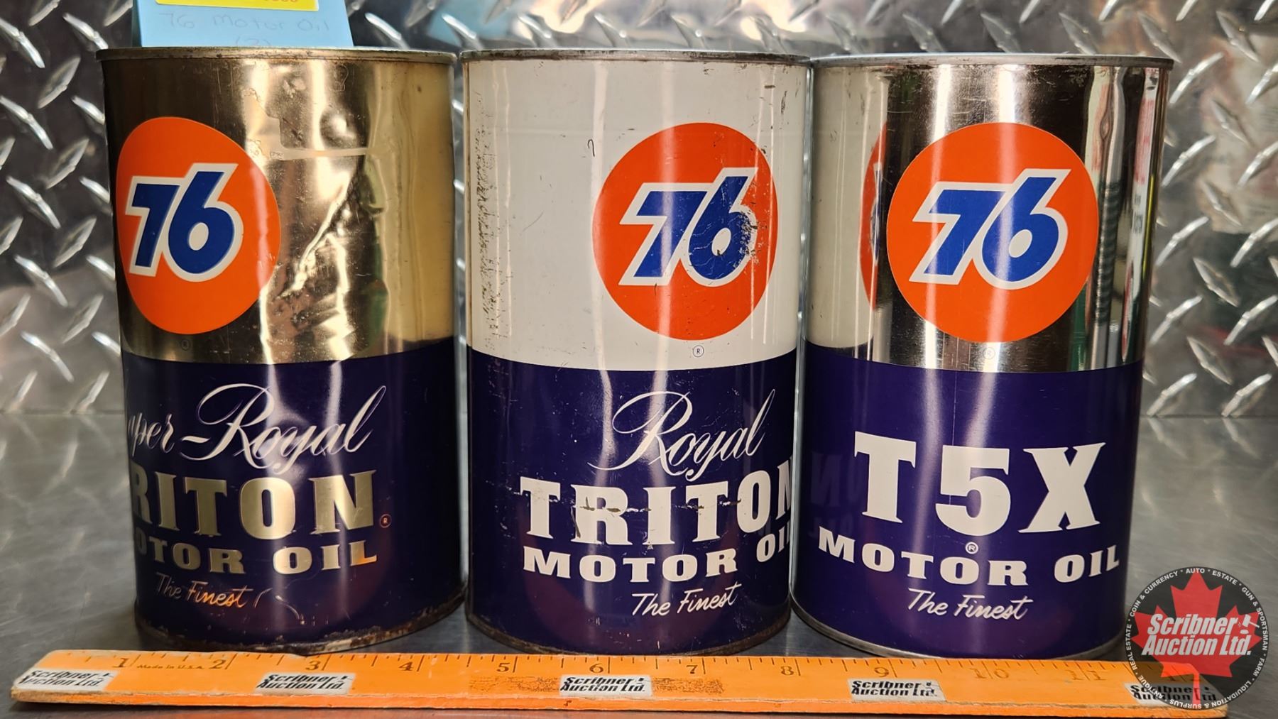 76 OIL TIN TRIO : Super-Royal Triton, Royal Triton & T5X (6-1/2"H x 4"Dia) (SEE PICS!)
