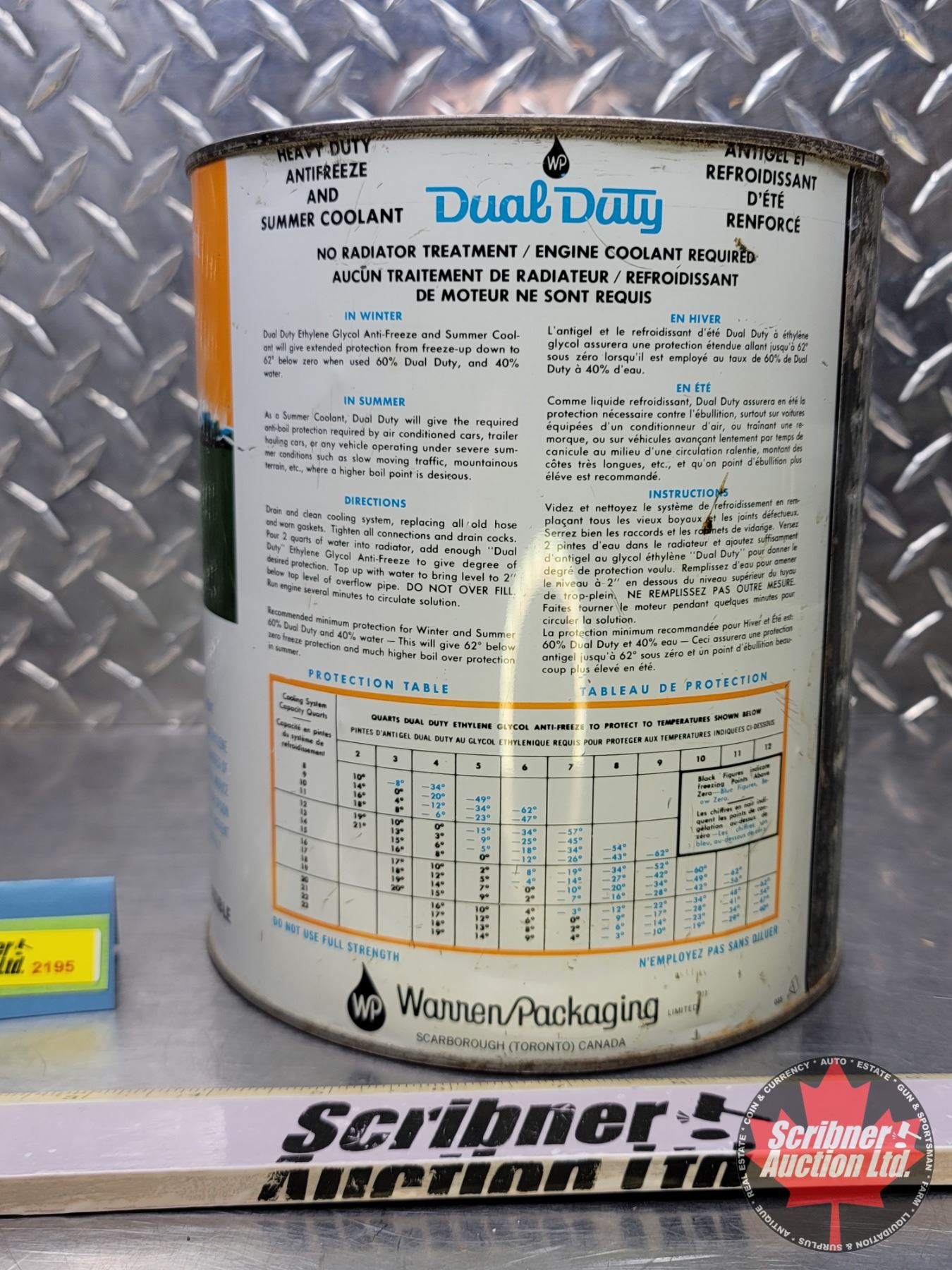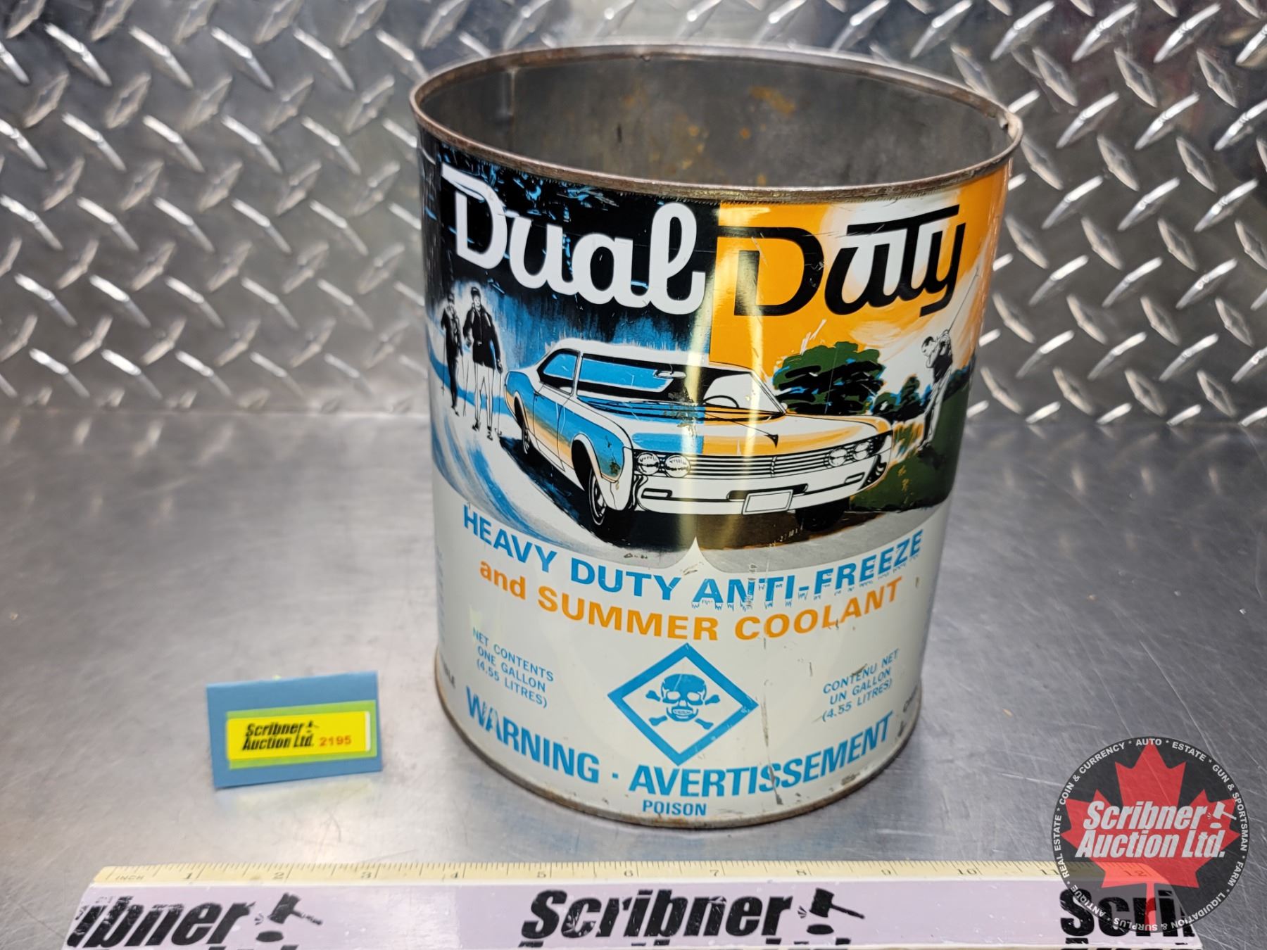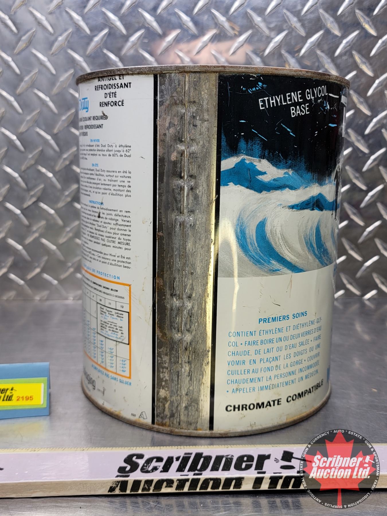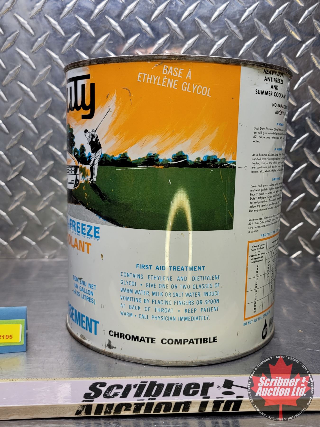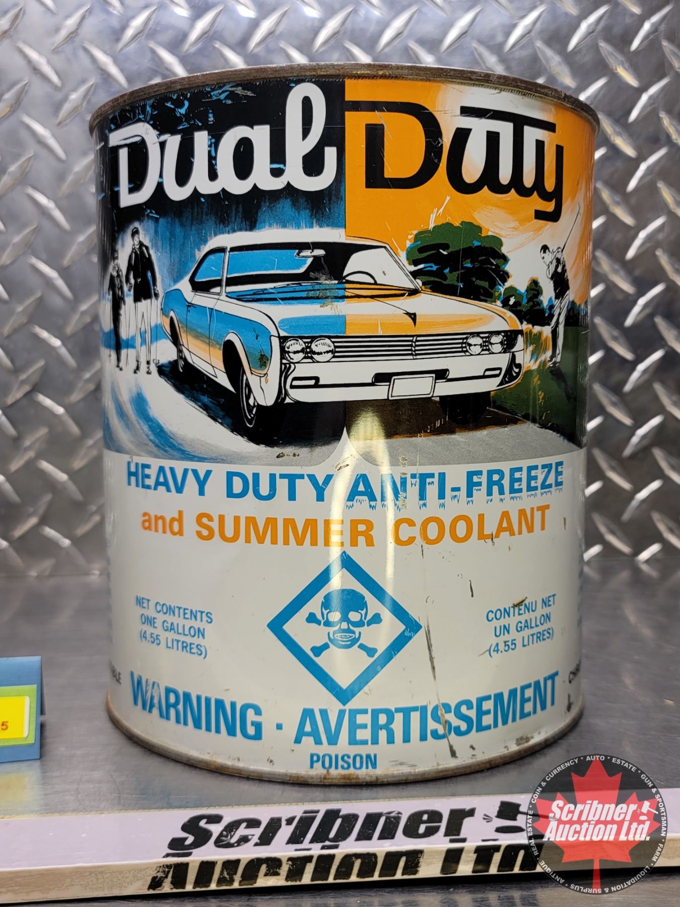 ANTI-FREEZE TIN : Dual Duty Heavy Duty Anti-Freeze and Summer Coolant (8"H x 7"Dia) (SEE PICS!)