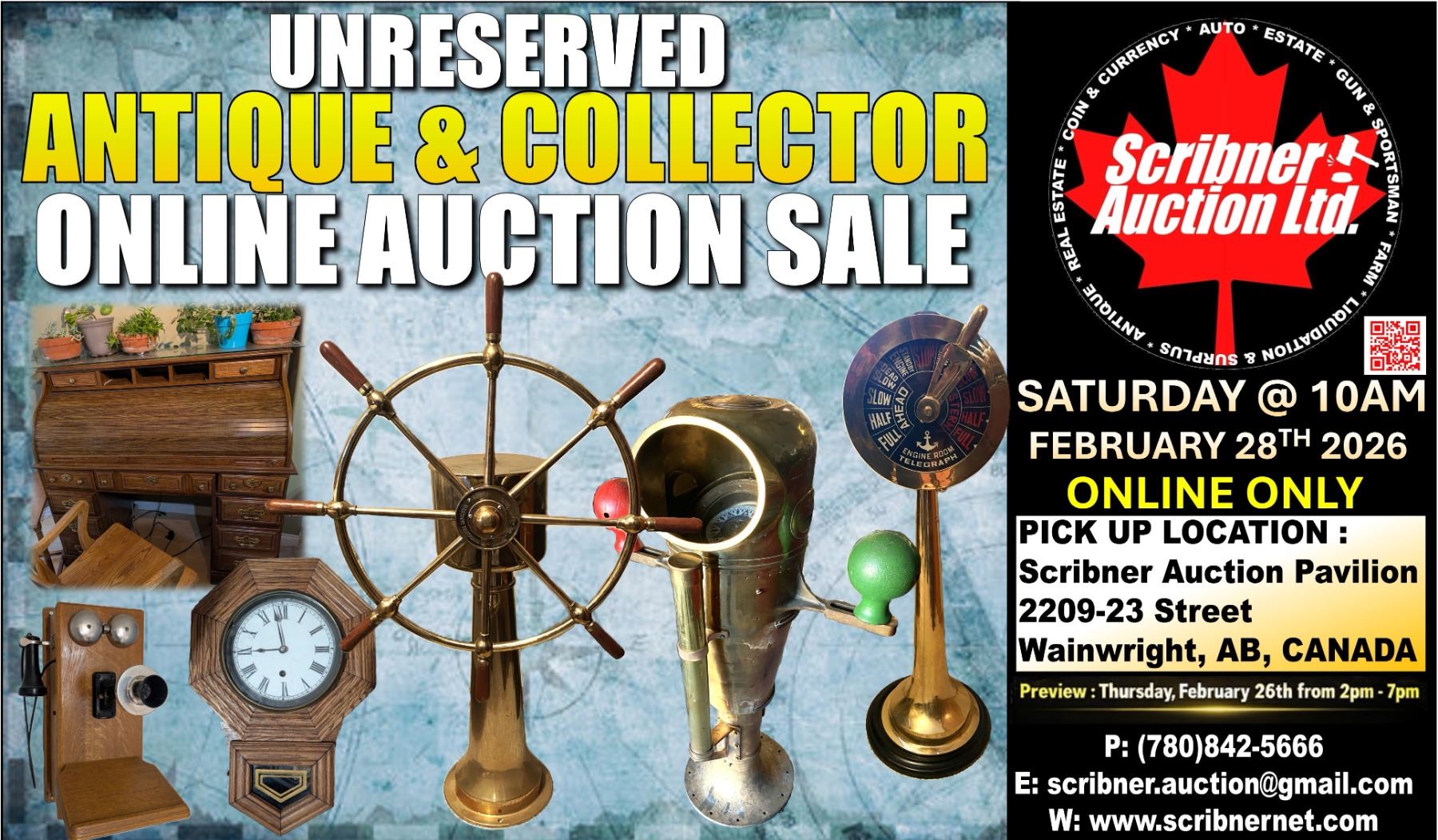 3. If you wish to pick up your items and pay with either Debit or Cash, this must be approved/arranged by Scribner Auction Ltd.