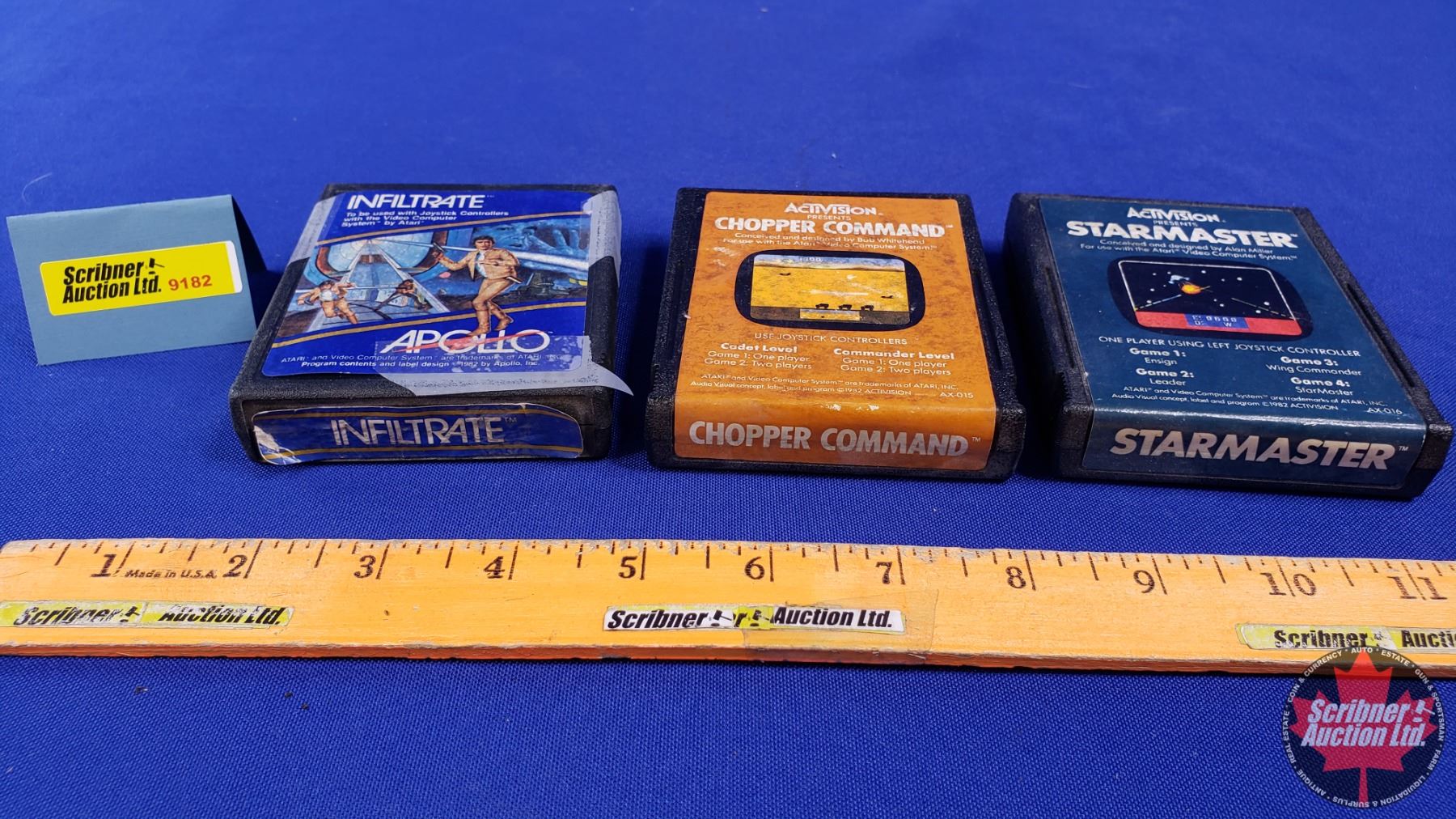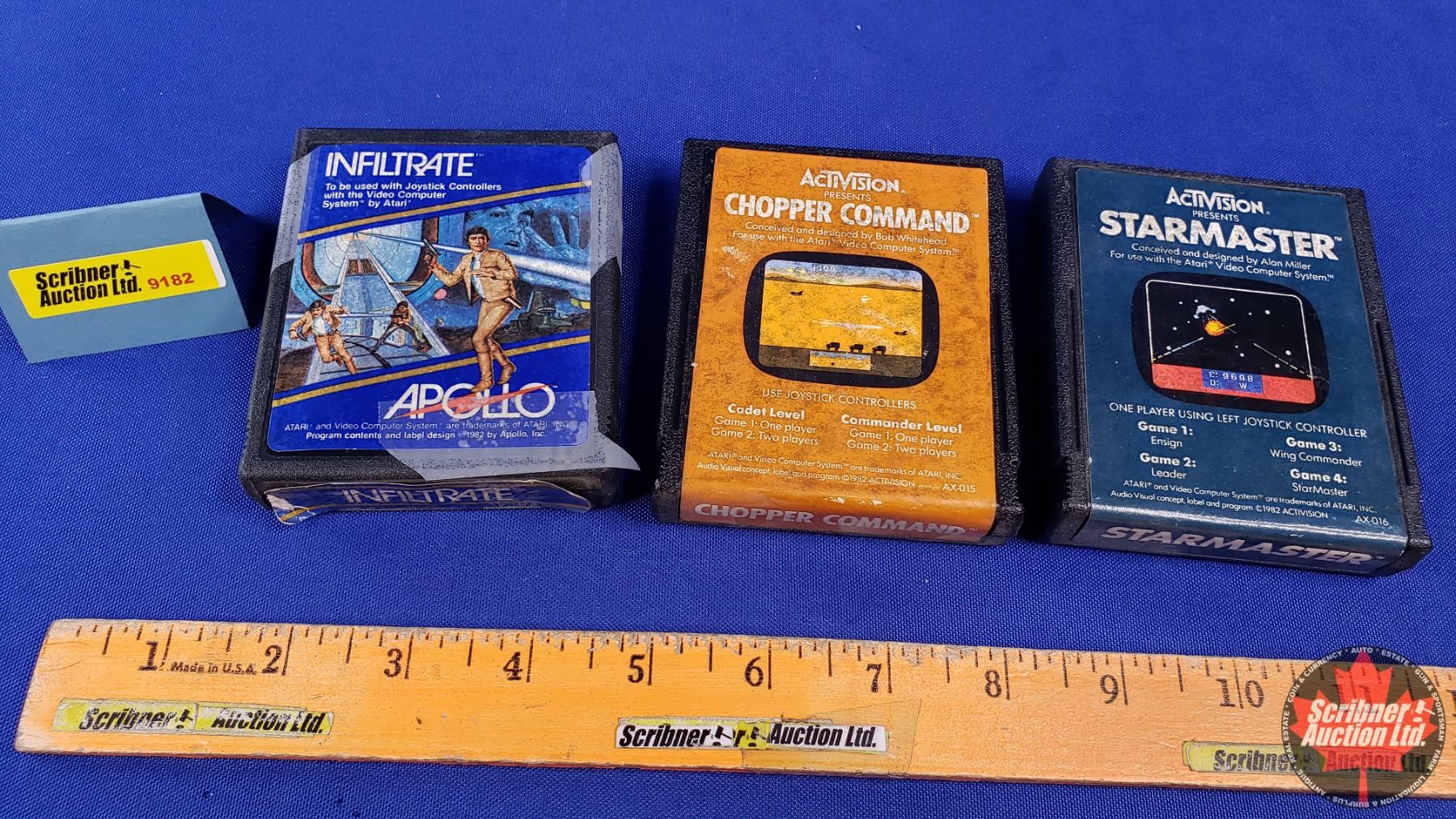 ATARI Game Cartridges (3): INFILTRATE APOLLO & CHOPPER COMMAND & STARMASTER (SEE PICS!)