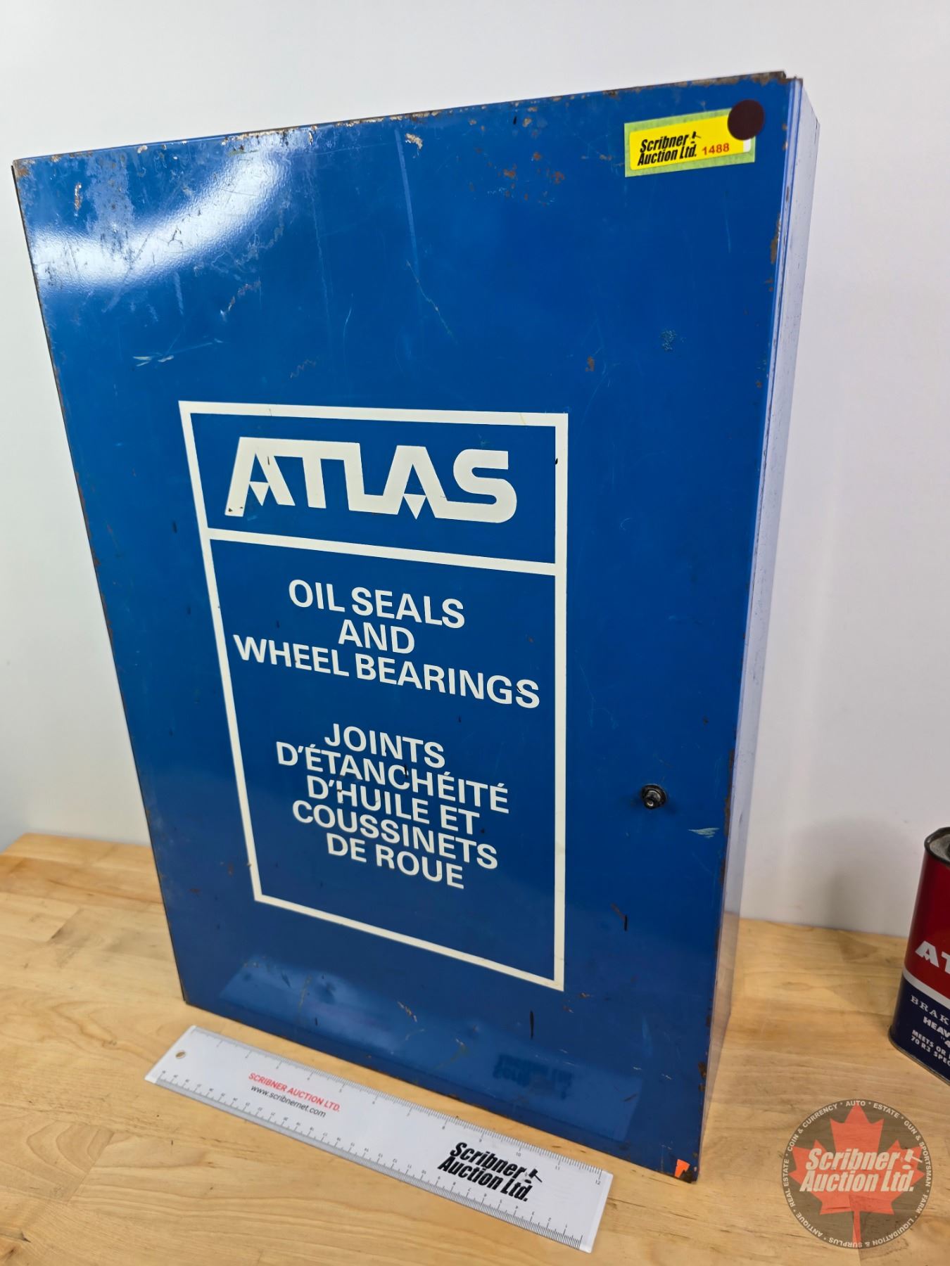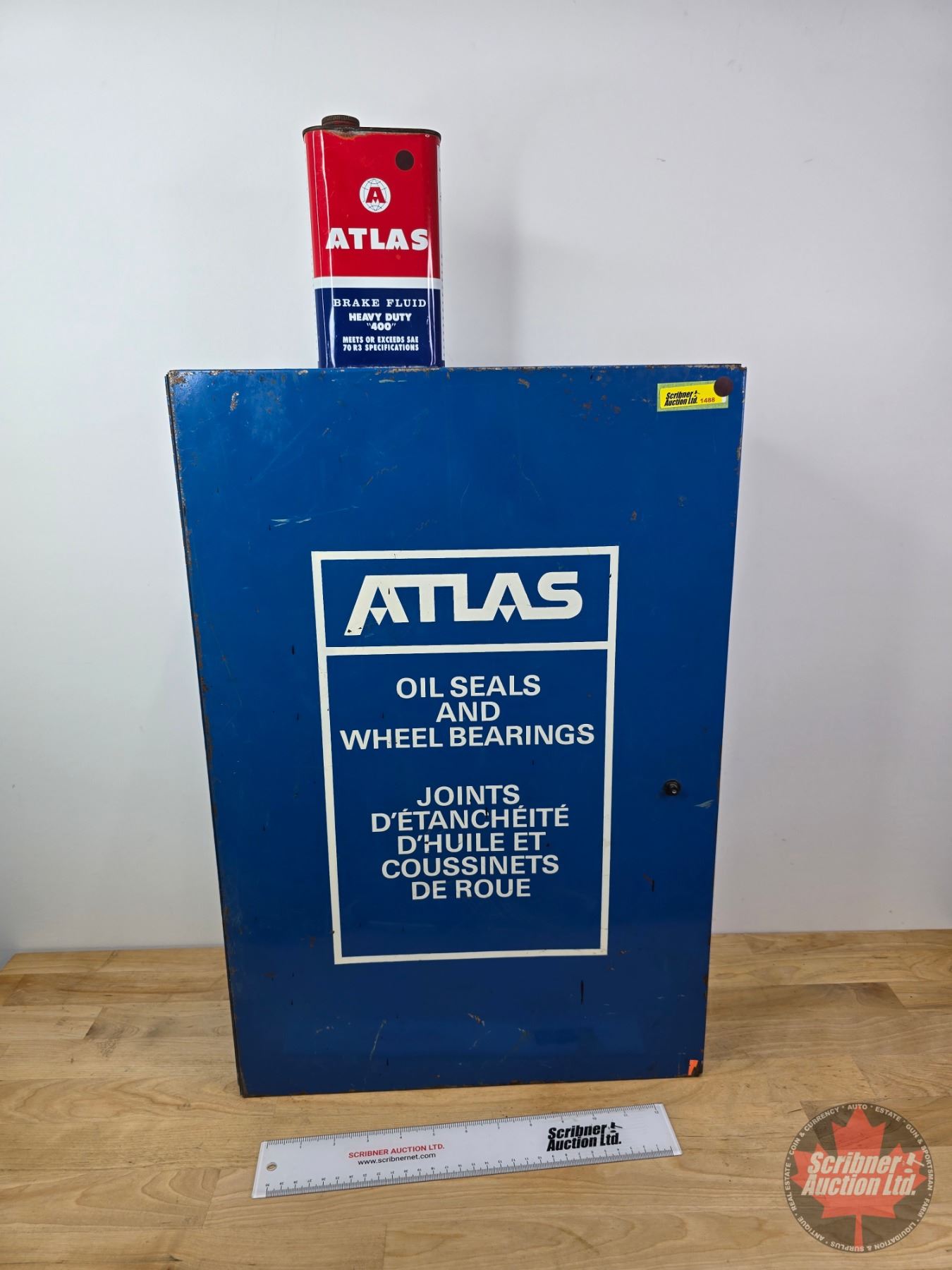 ATLAS Combo: Oil Seals and Wheel Bearings Shop Cabinet & Brake Fluid Tin
