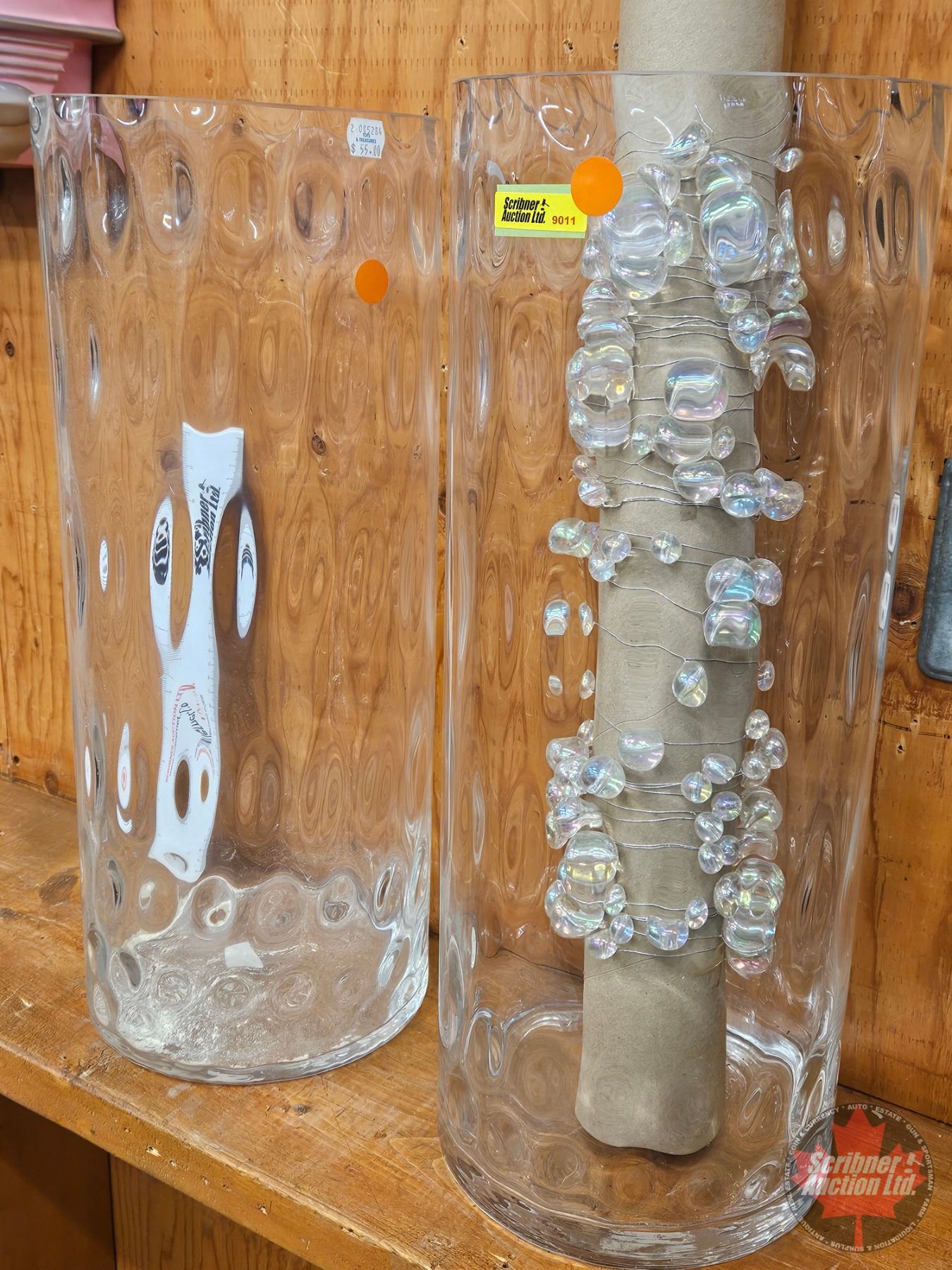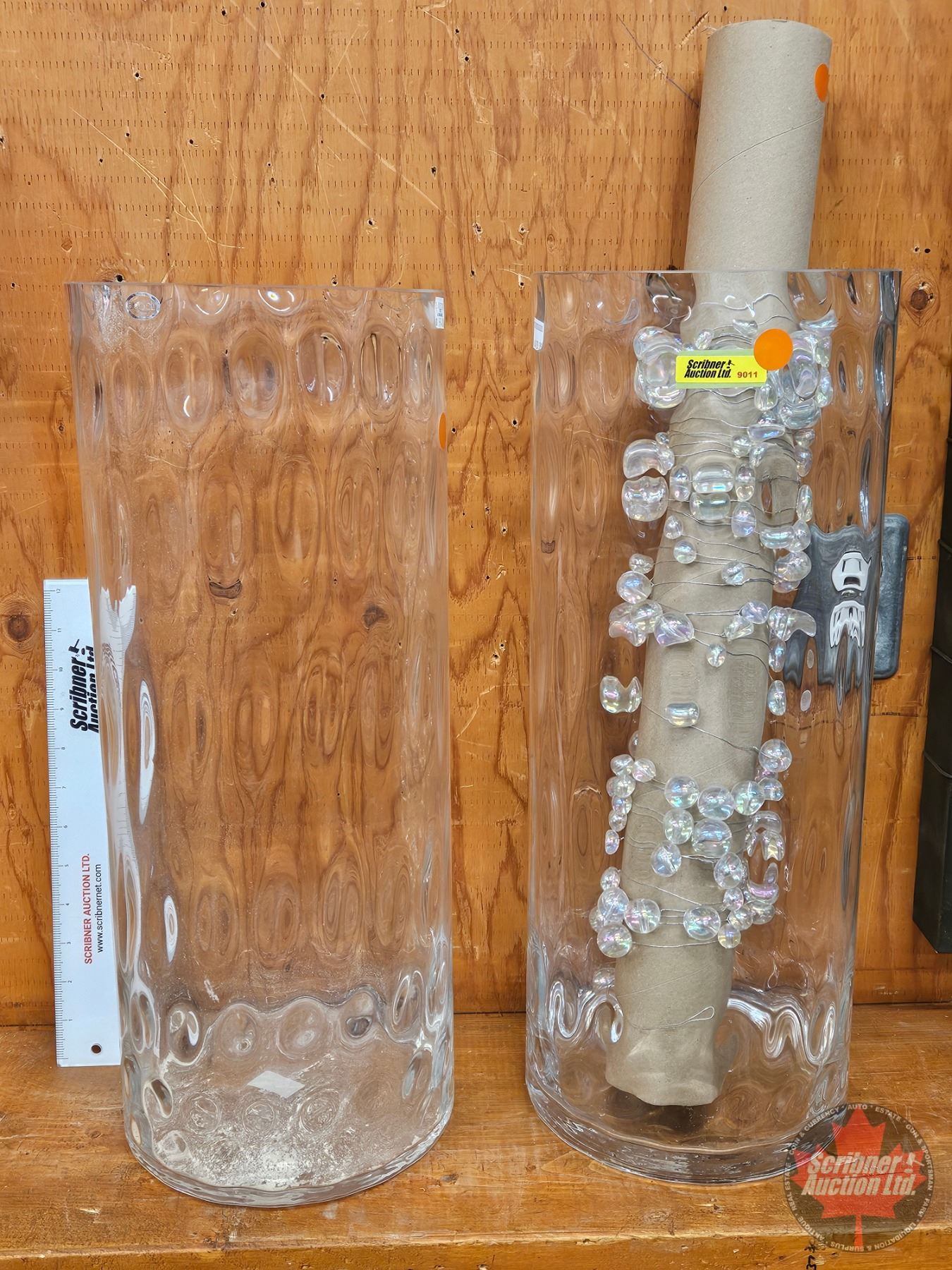 Abbott Large Glass Vases (2) & Iridescent Beaded Garland