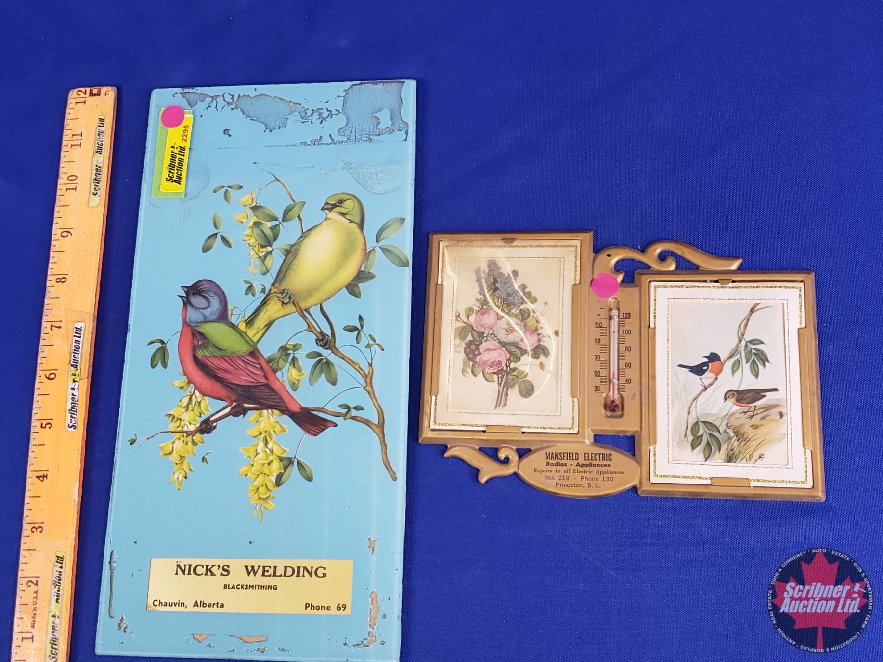 Advertising Mansfield Electric Thermometer & Nick's Welding Advertising Wall Hanging (Welding Sign Measures : 7-1/4"H x 5"W) (SEE PICS!)