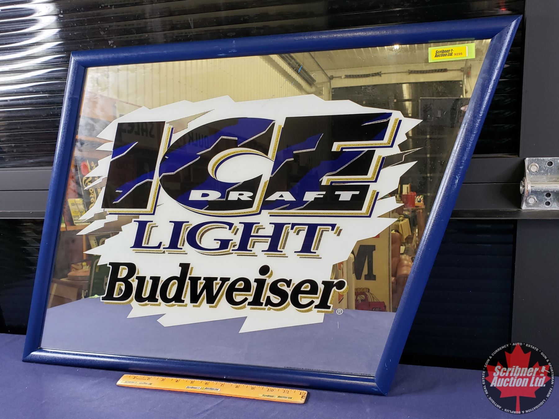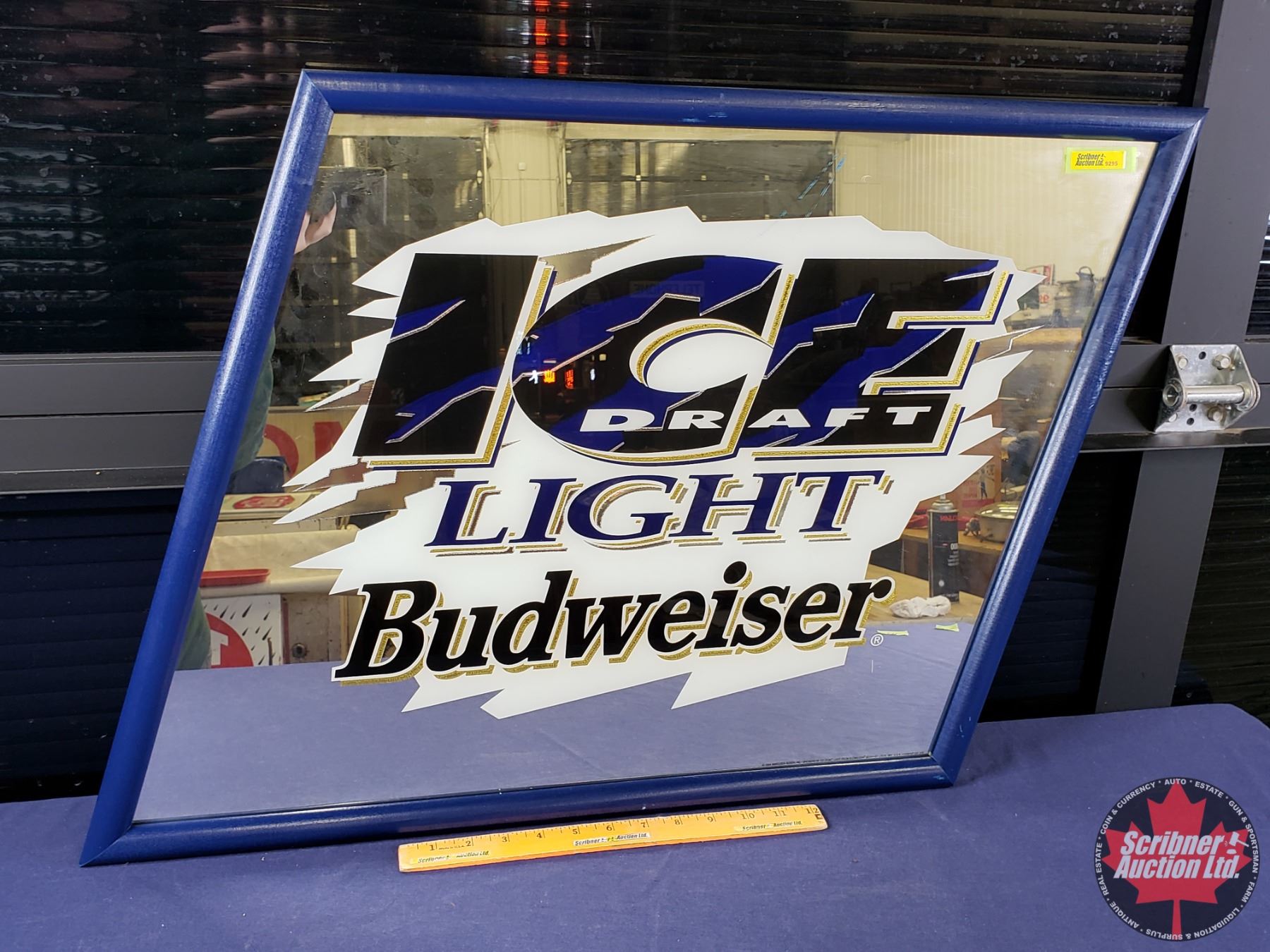 Advertising Mirror "ICE DRAFT LIGHT Budweiser" (Parallelogram Shape) (c.1990's) (21-1/2"H x 25"W) (SEE PICS!)
