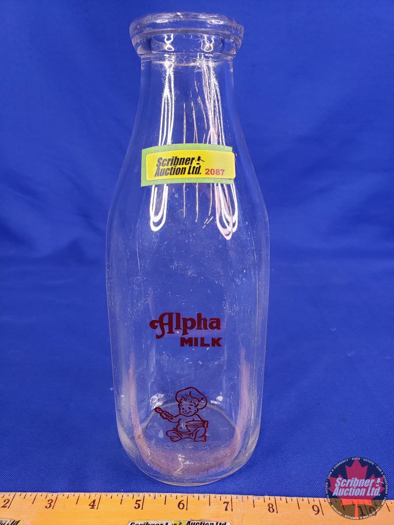 "Alpha Milk" Glass Milk Bottle (10-1/2"H x 3-3/4"W x 3-3/4"D) (SEE PICS!)