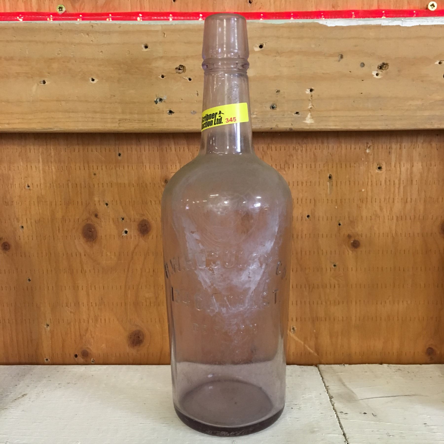 Amethyst Embossed Bottle: "H.W. Huguley Co. 134 Canalst Boston"