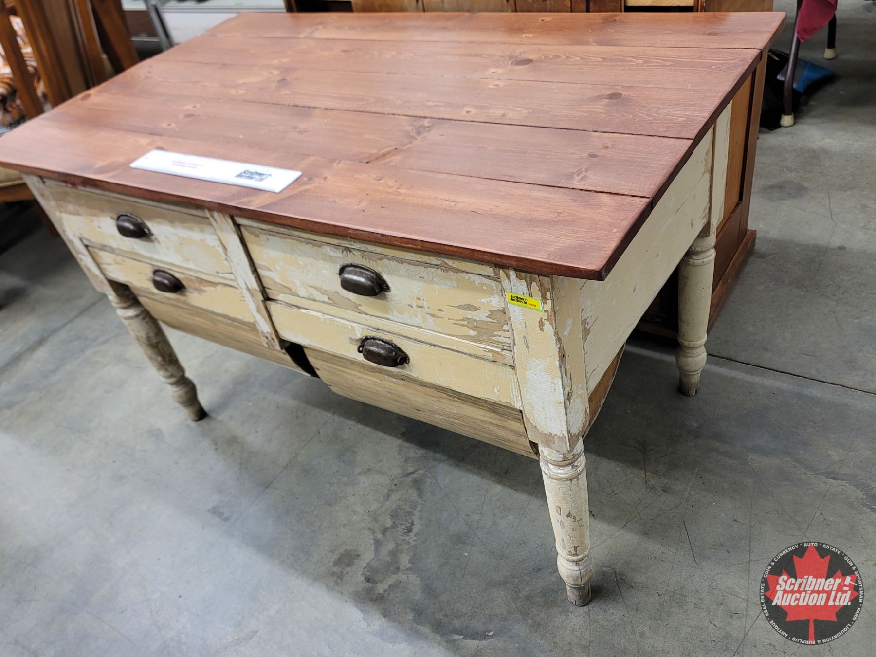 Antique Bakers Table (29-1/2"H x 47"W x 27-1/2"D)