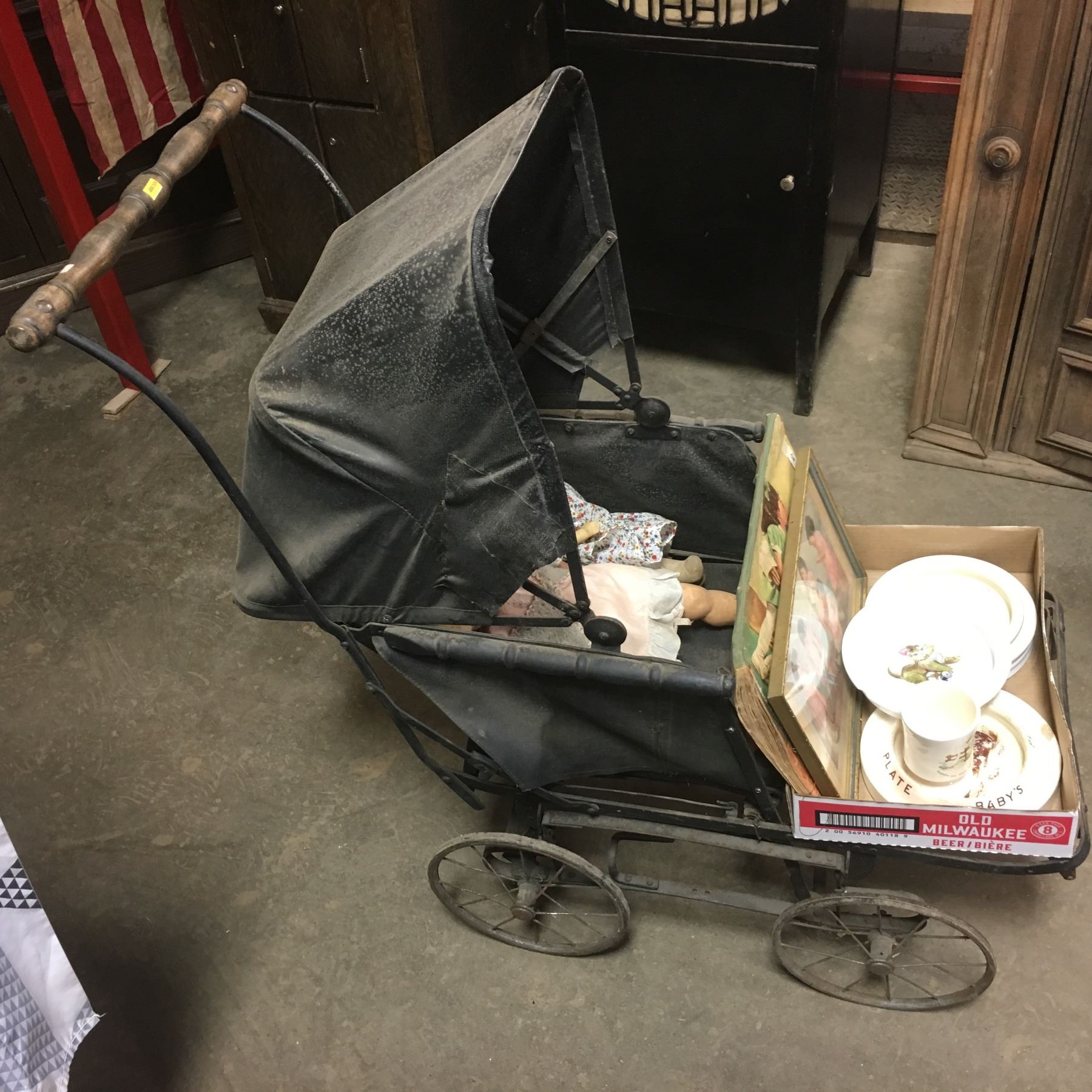 Antique Doll Carriage with 2 Dolls & Baby Chinaware & Quintuplets Print & Scrapbook