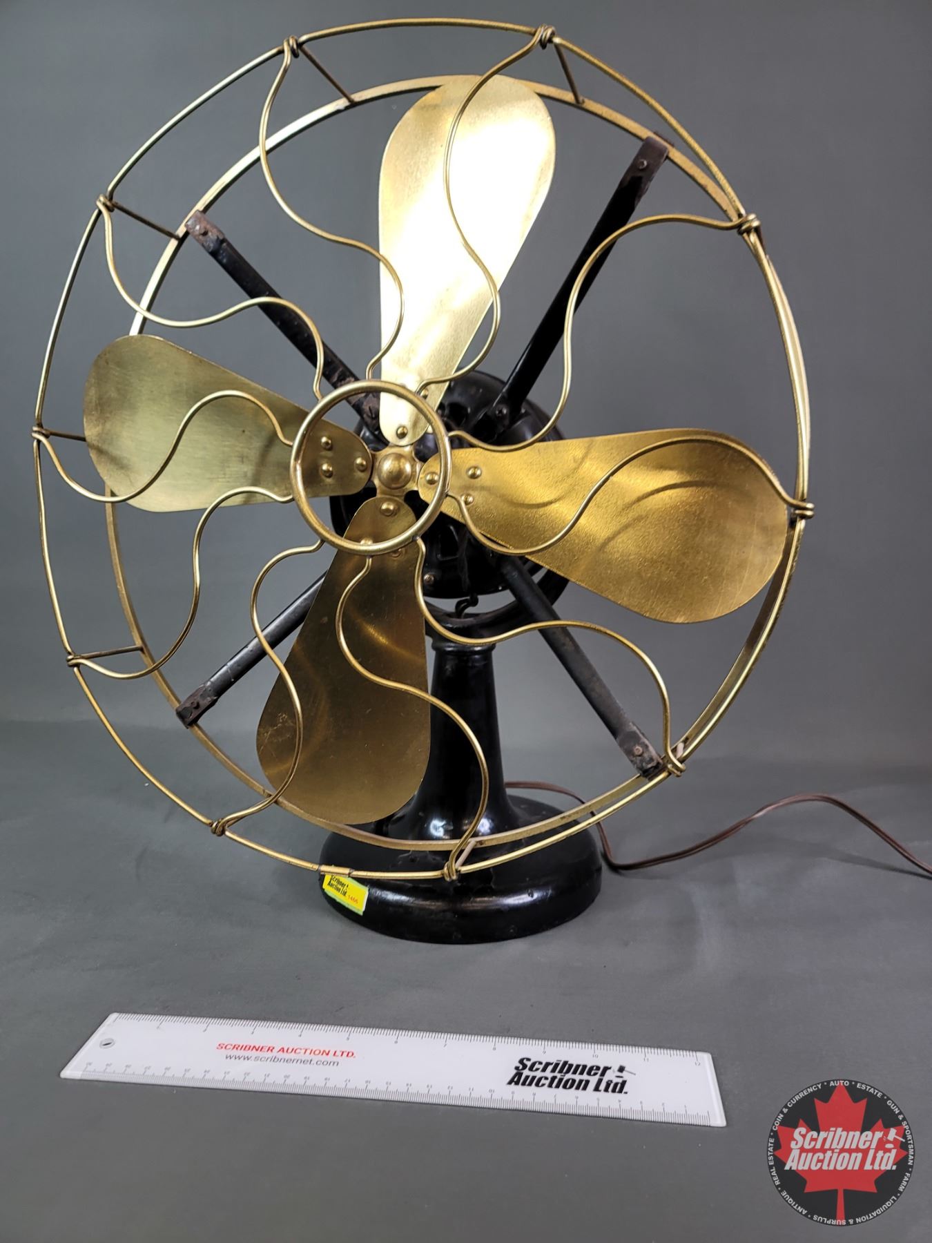 Antique Electric Fan (Brass Blade) (Cast Iron Base) (20"H) (Heavy) (Works)(SEE PICS!)