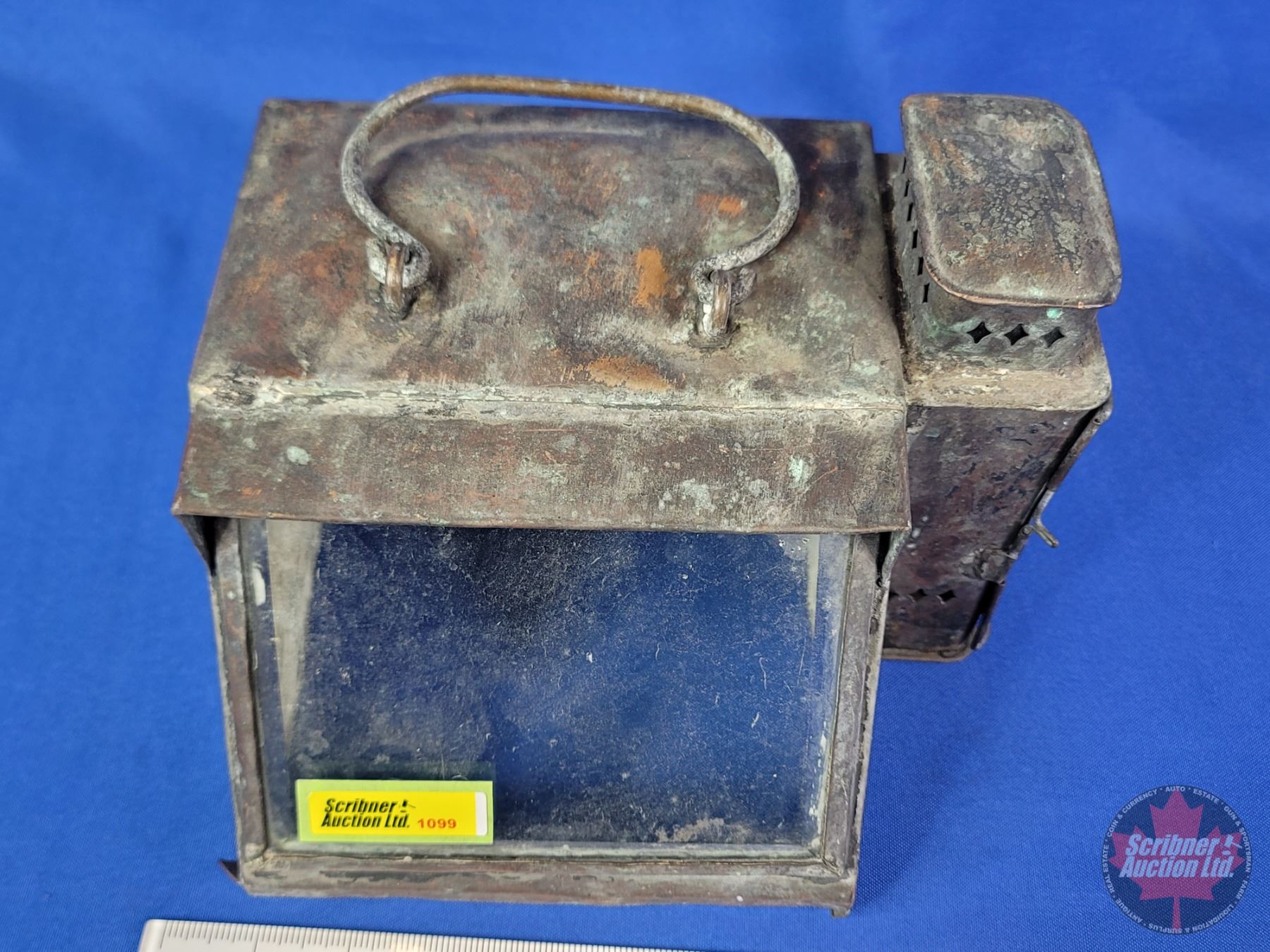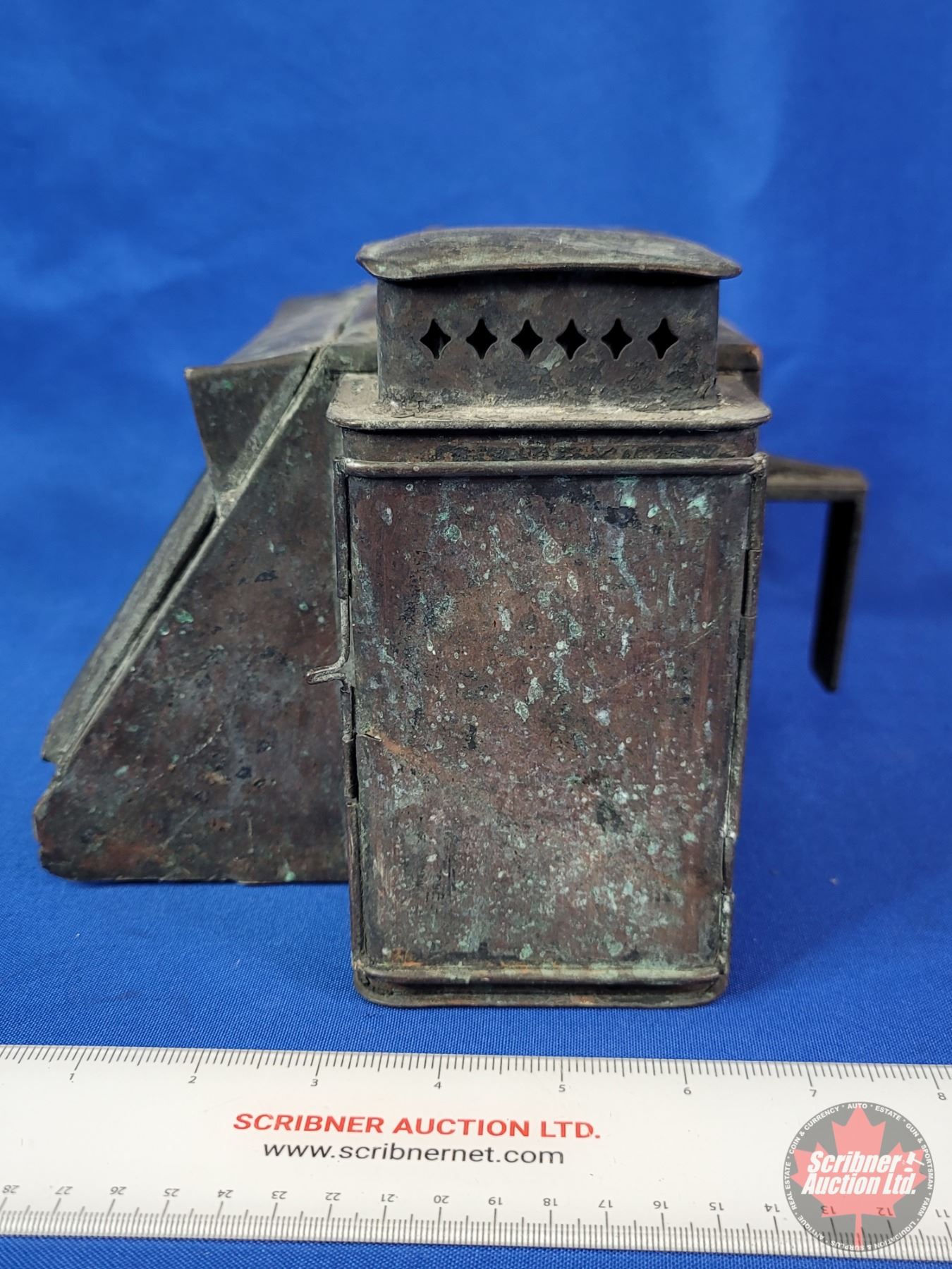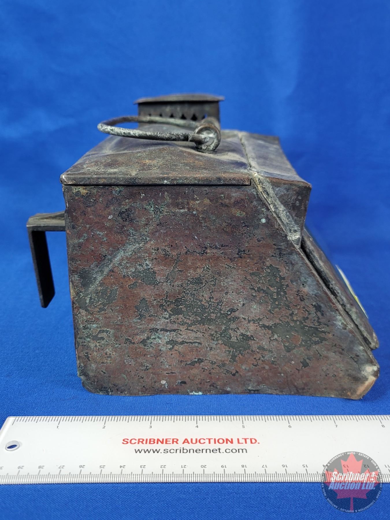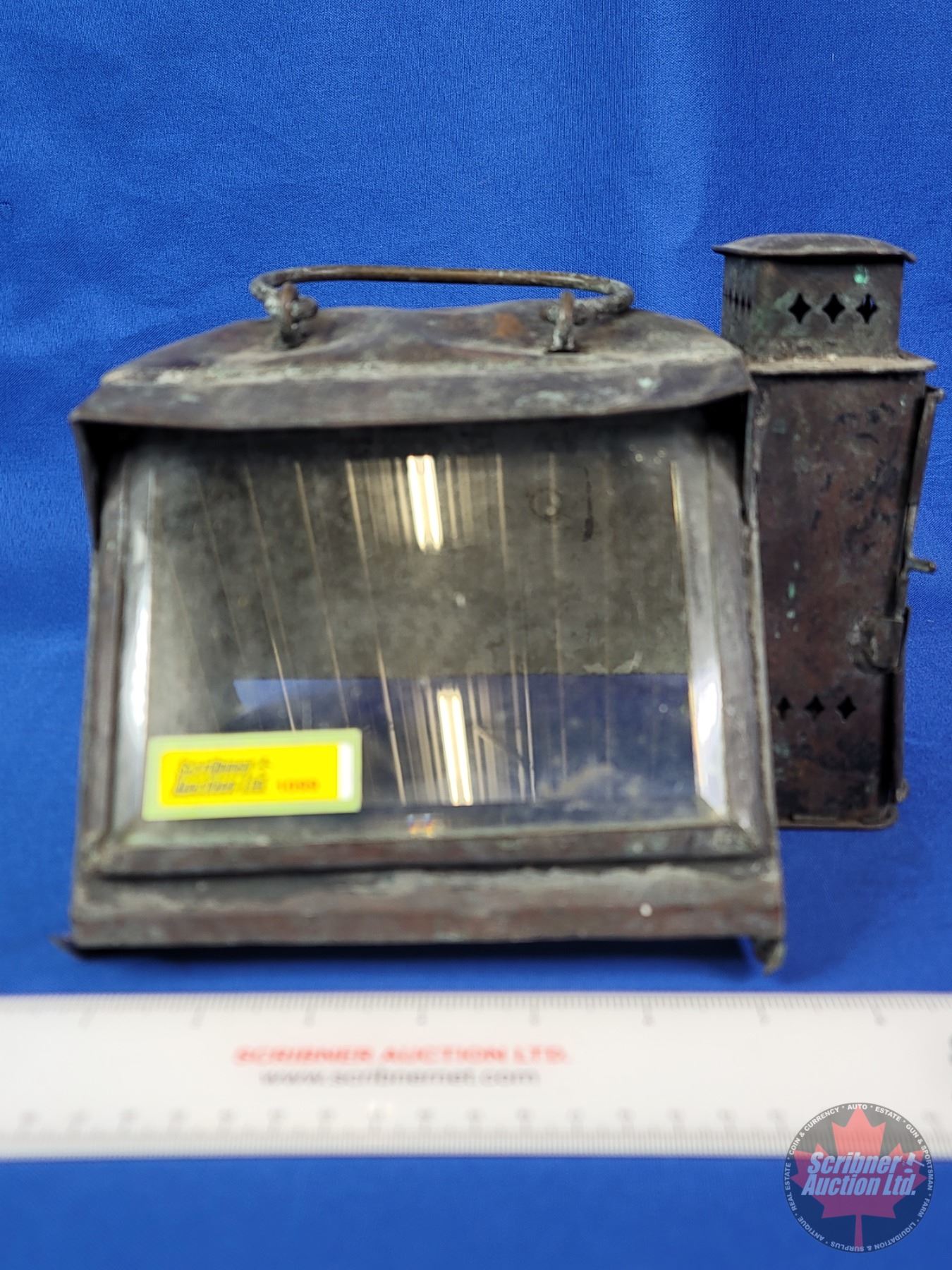 Antique Maritime Compass Cover w/Attached Oil Lantern (Beveled Glass)
