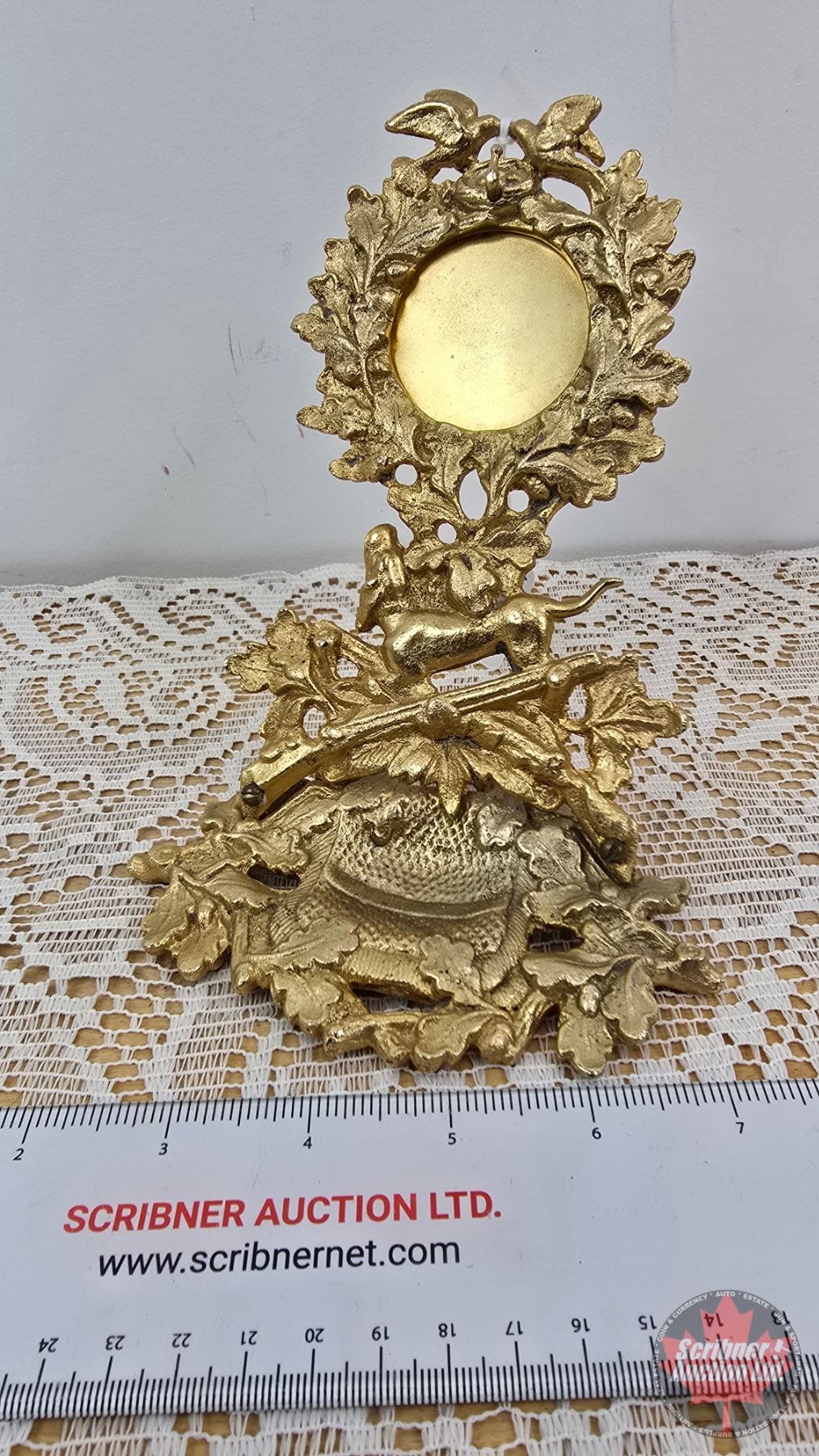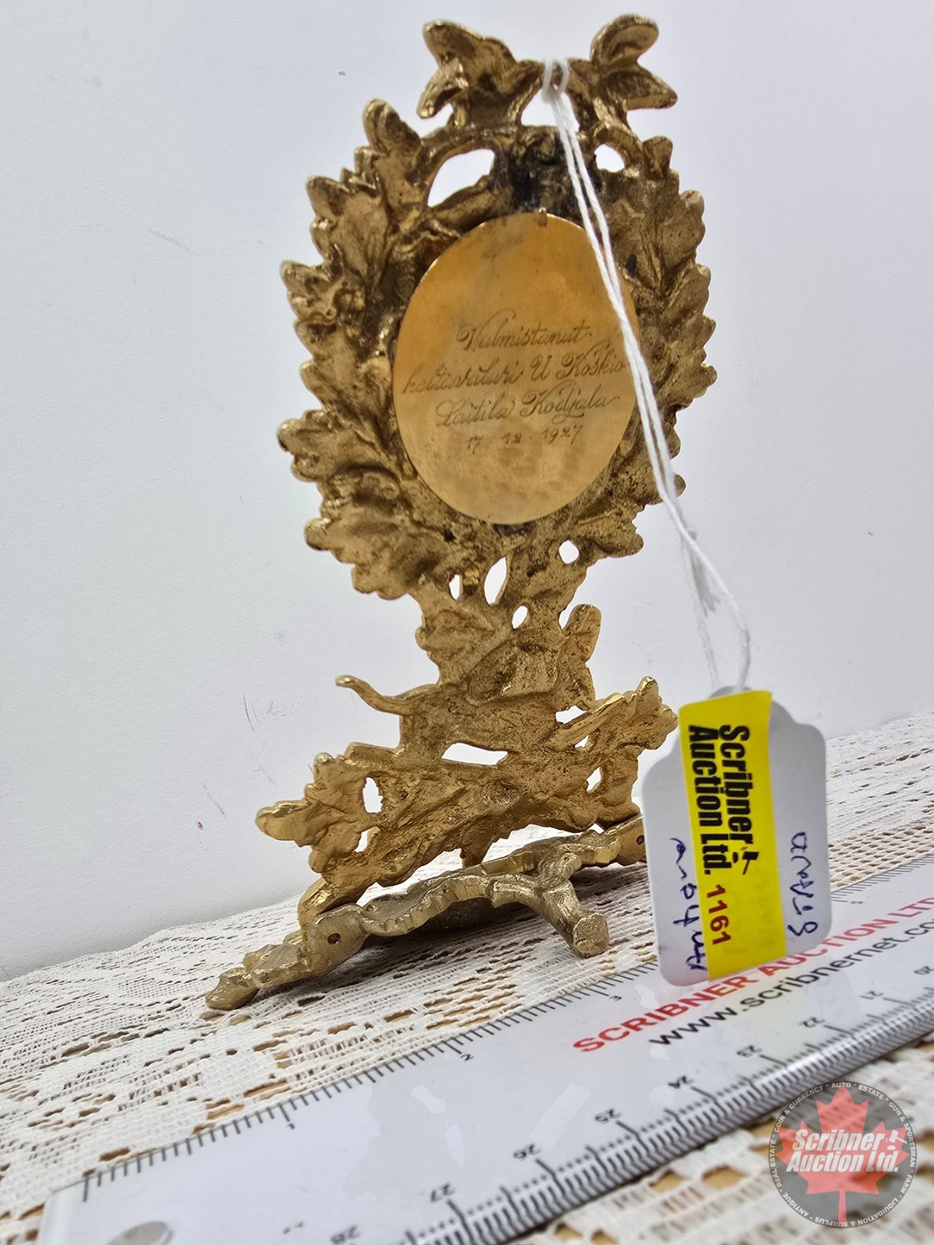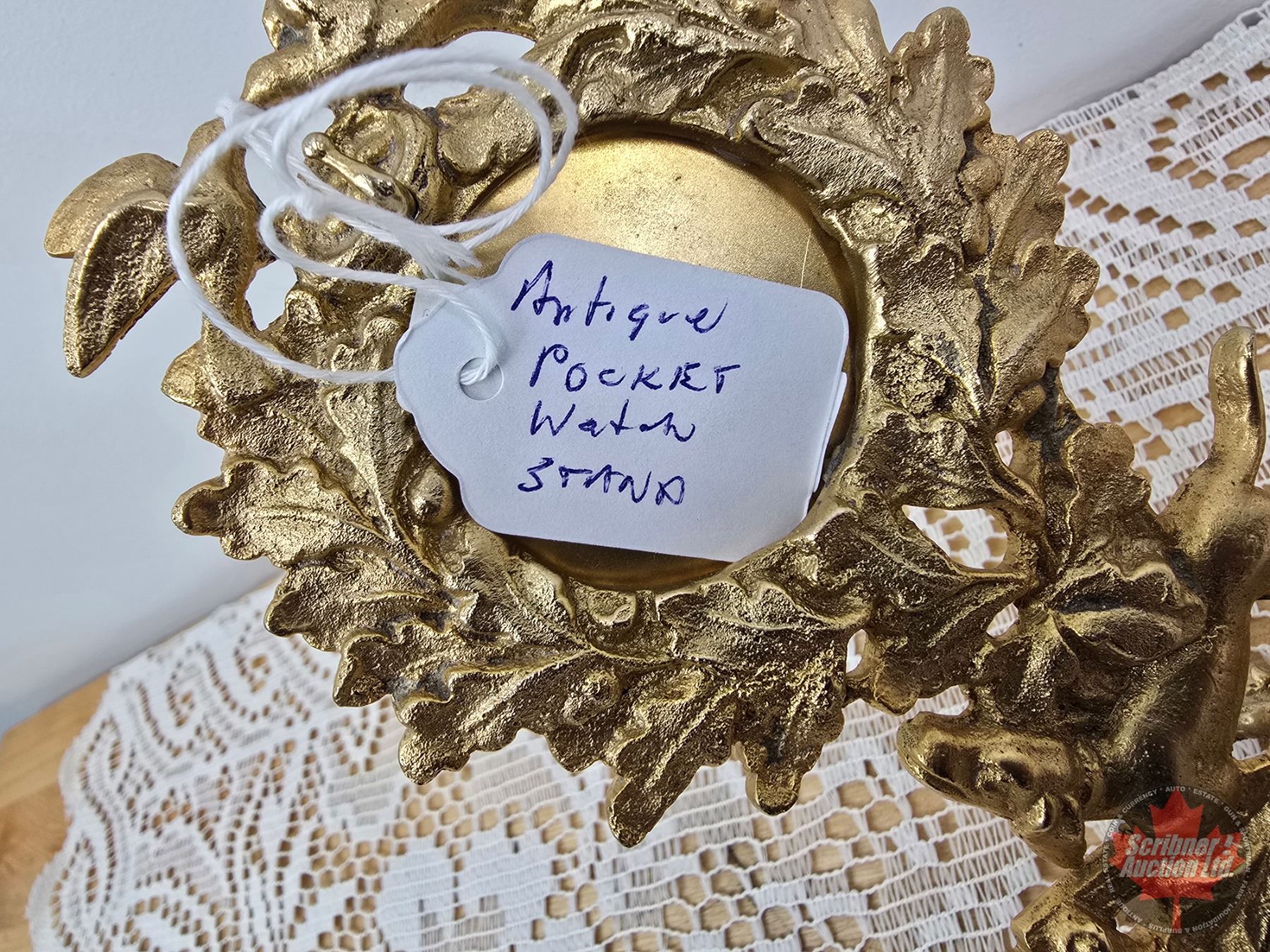 Antique Pocket Watch Stand : Gold Gilt : Cast Iron (Note: Inscription on back 1927)