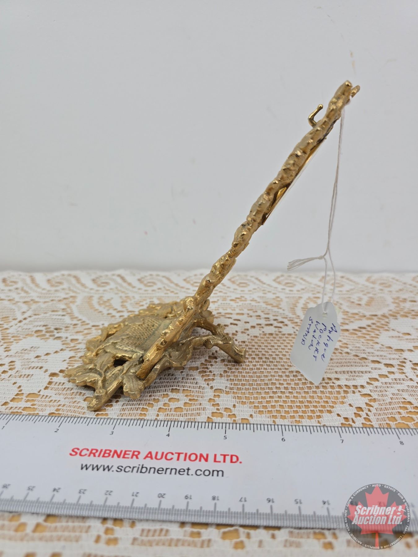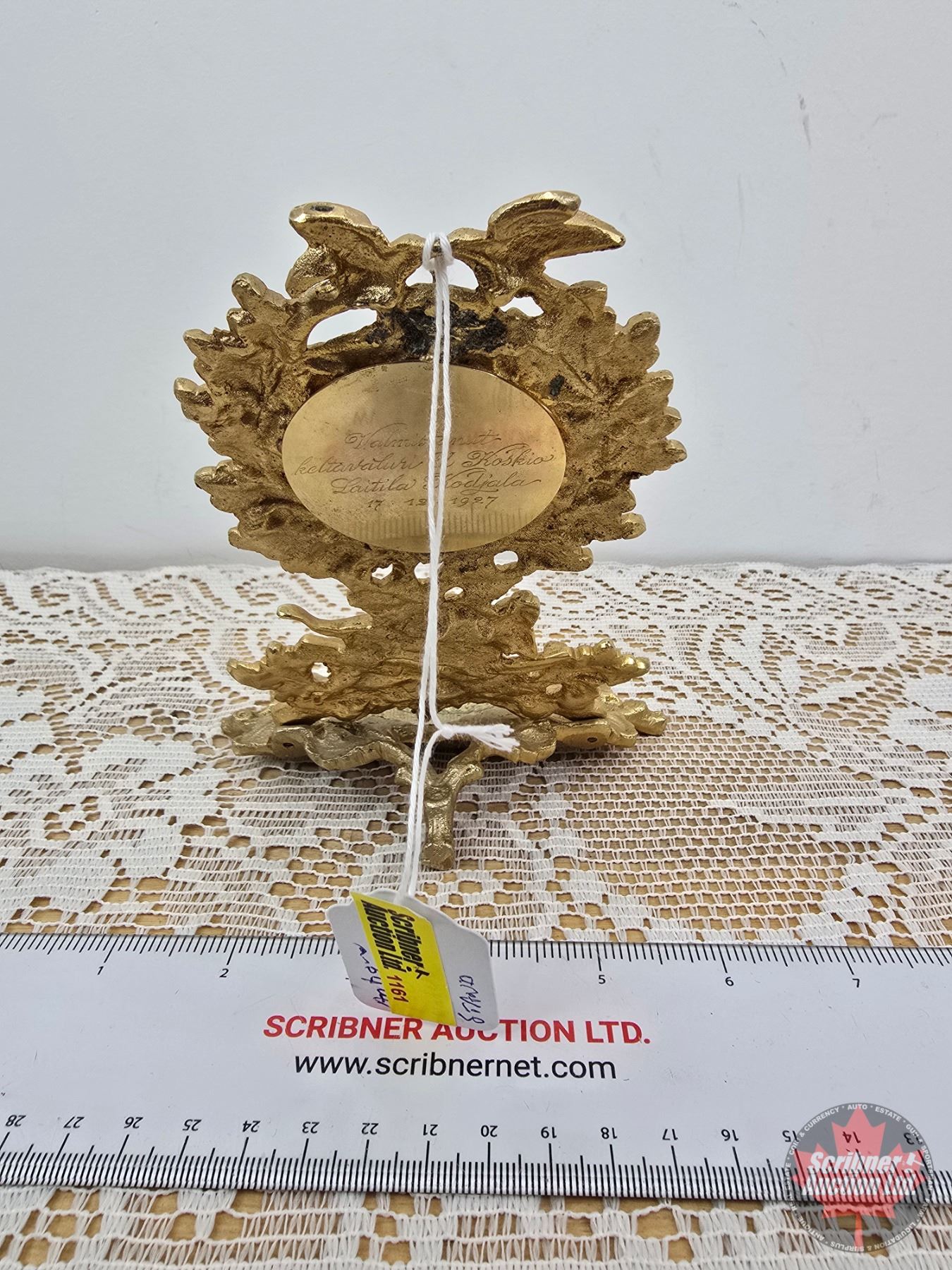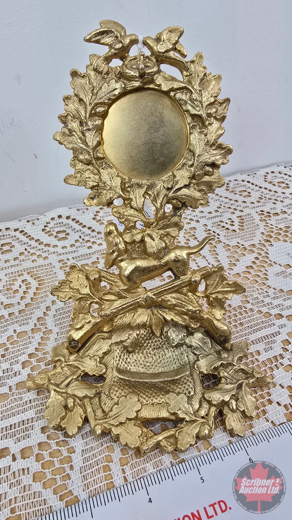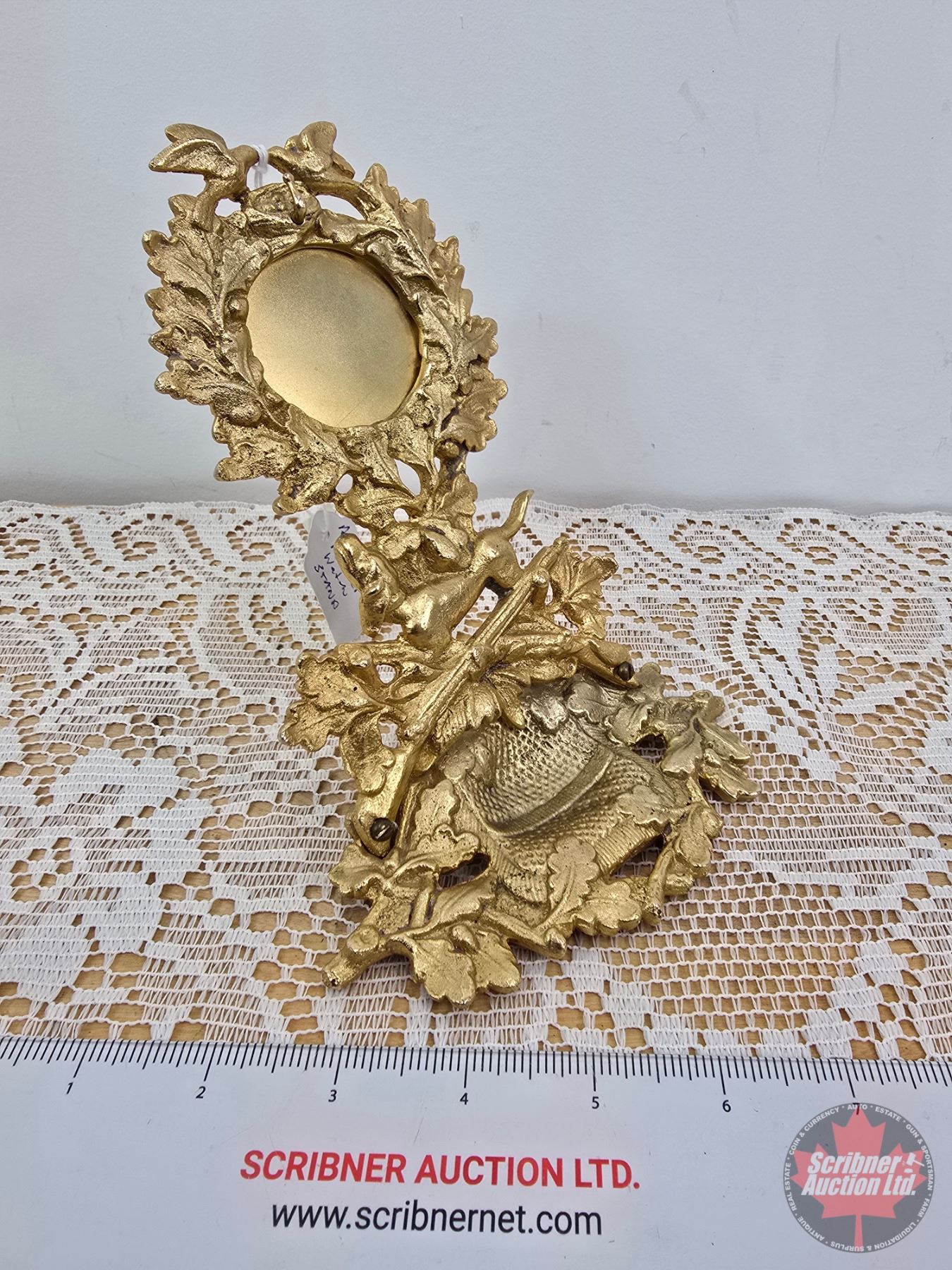 Antique Pocket Watch Stand : Gold Gilt : Cast Iron (Note: Inscription on back 1927)