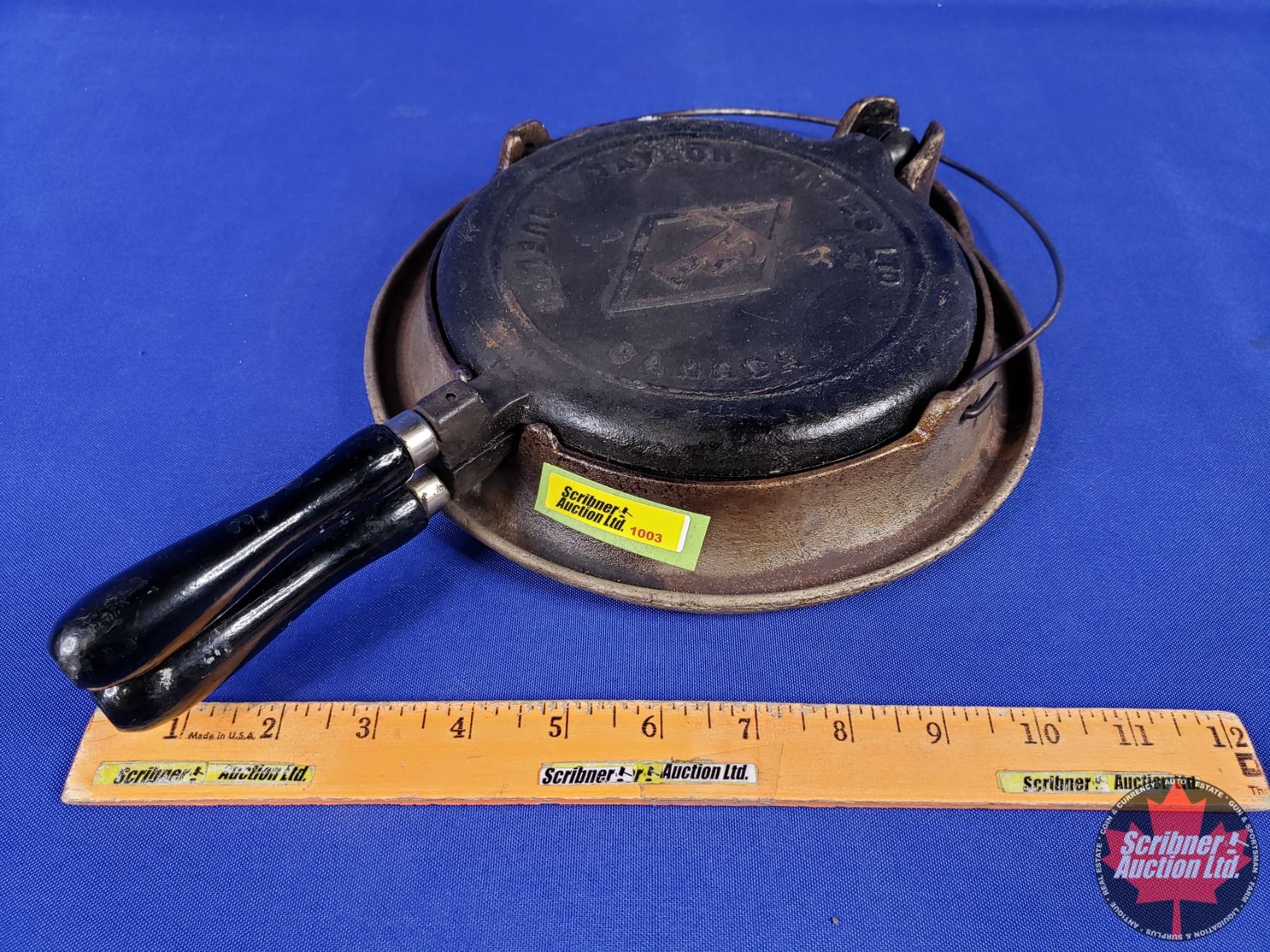 Antique Taylor Forbes Cast Iron Waffle Maker 9-3/4" Dia Total) (SEE PICS!)