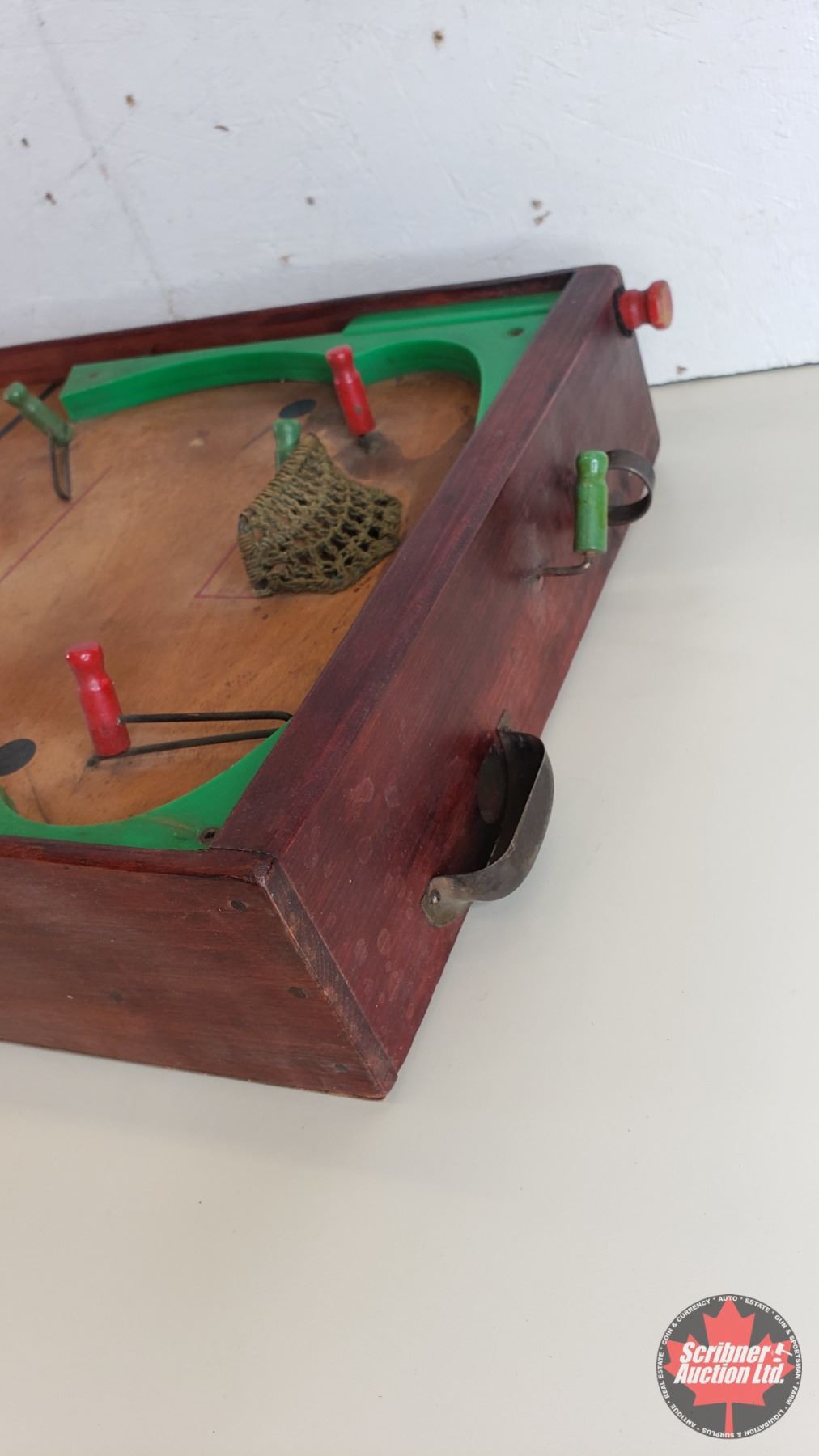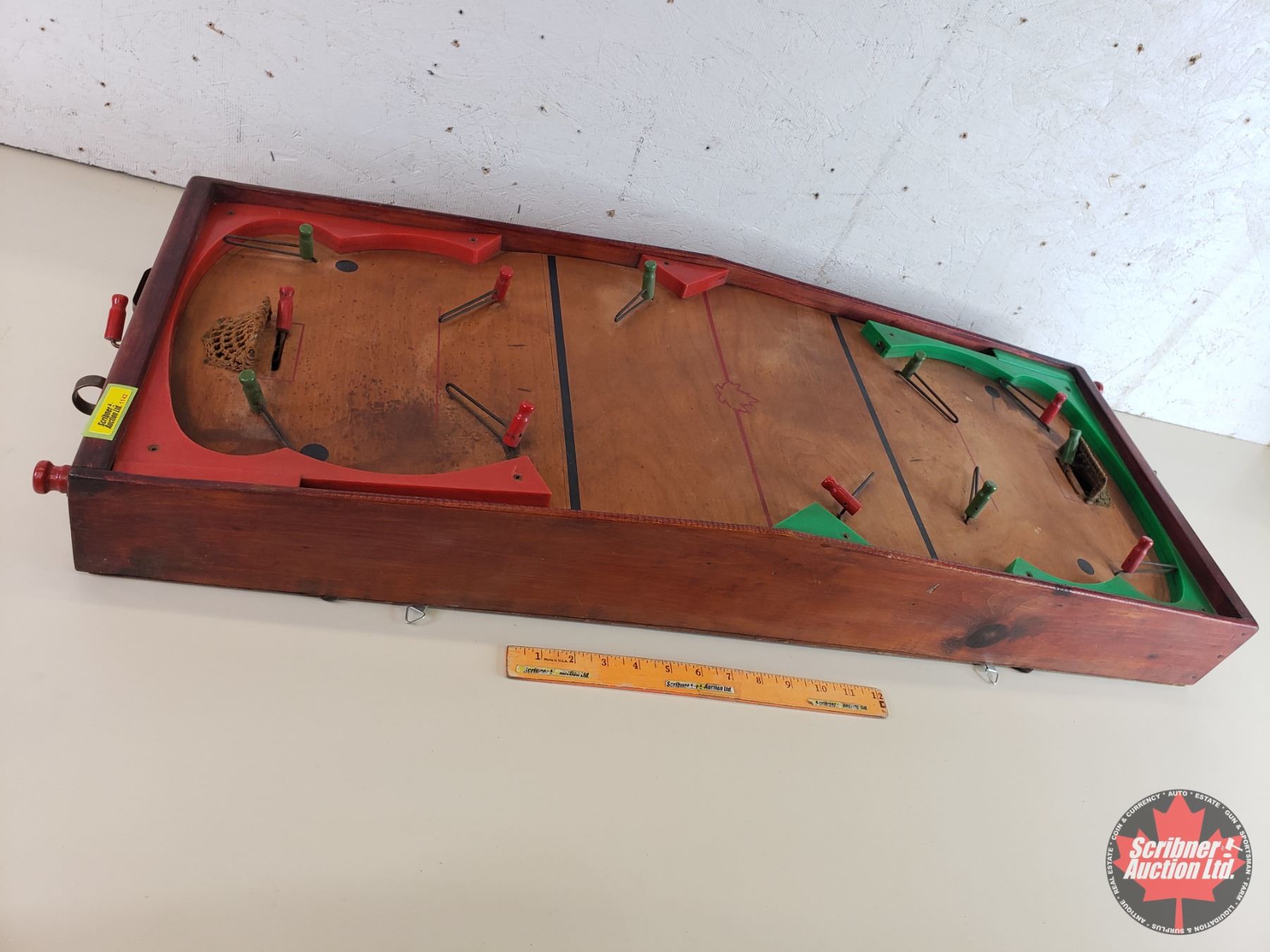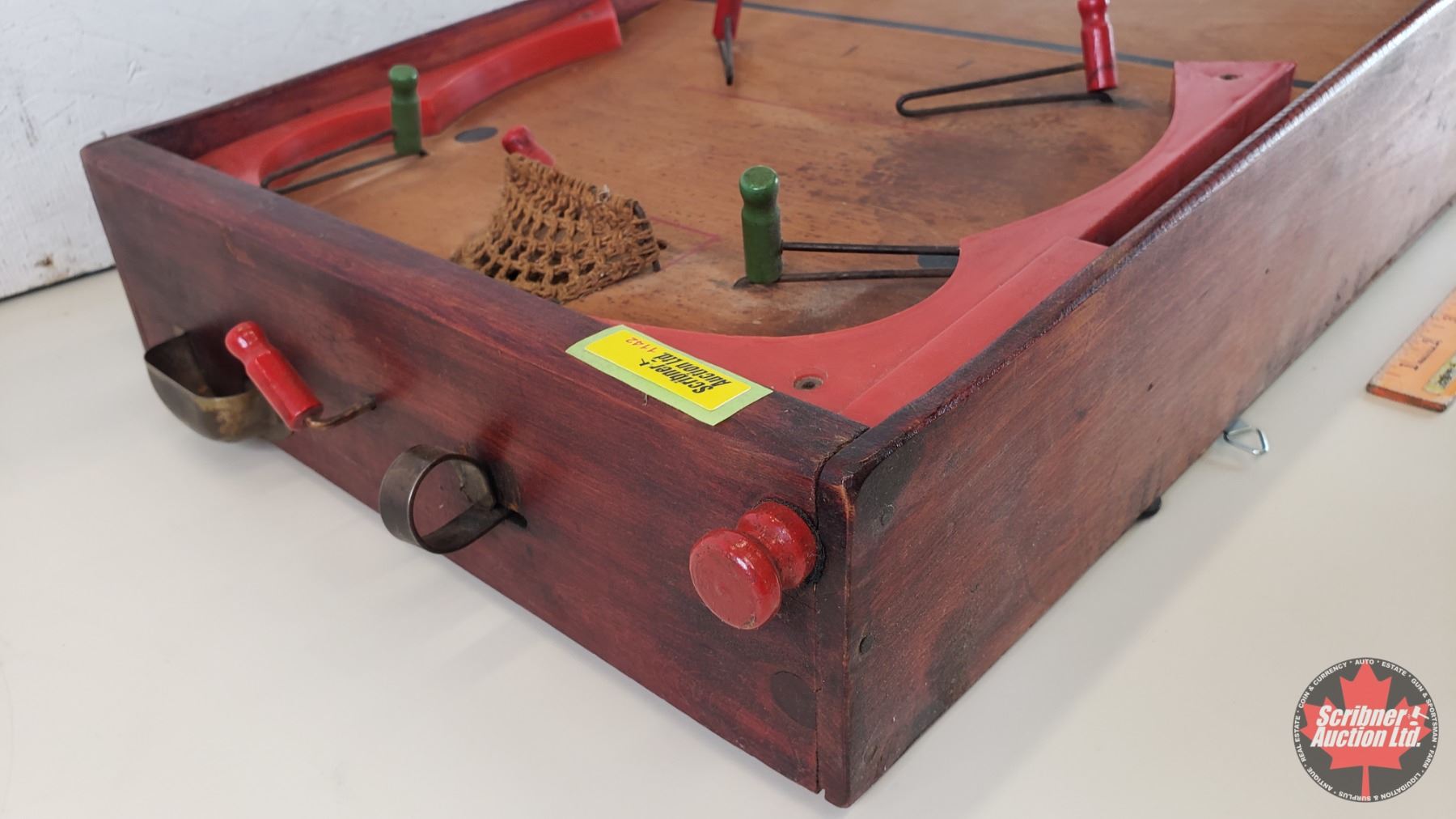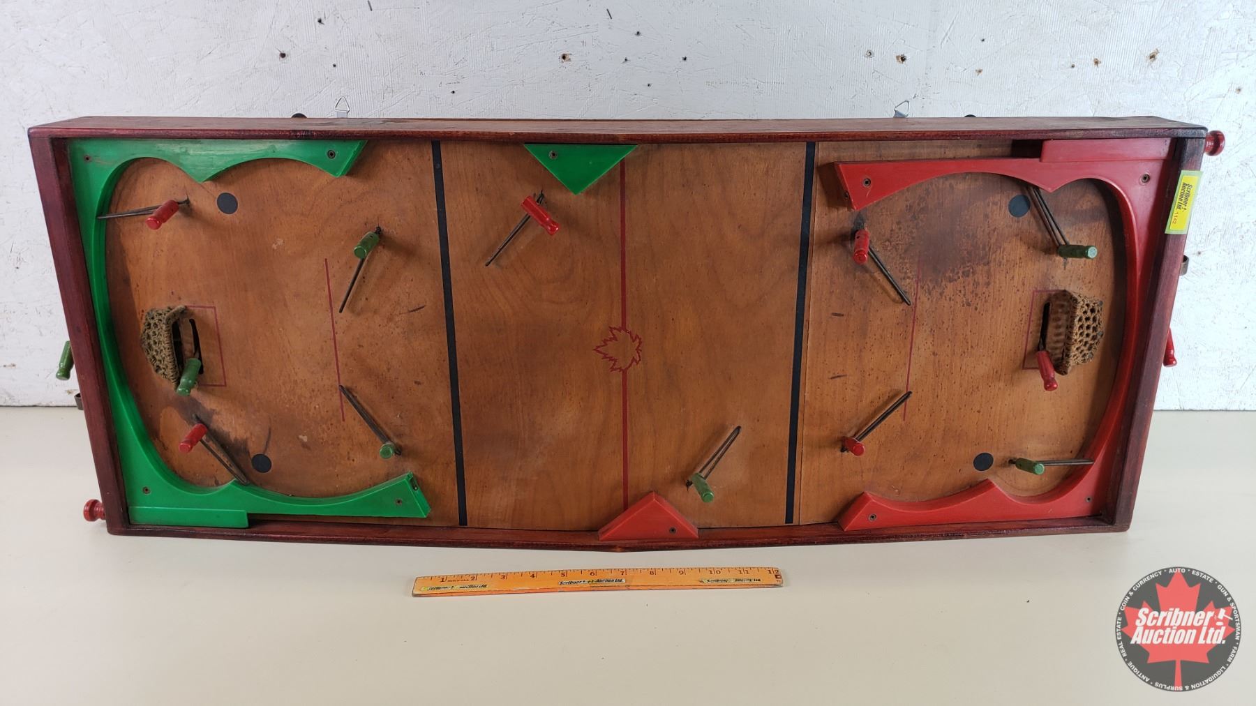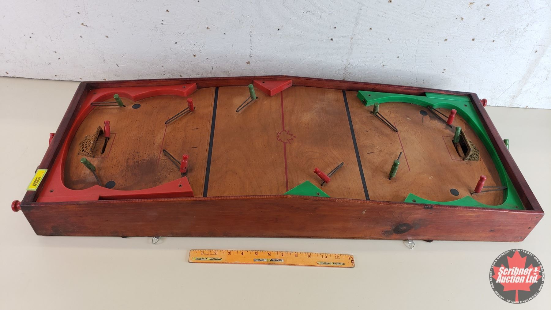 Antique Wooden Table Top Hockey Game c.1940's (5"H x 14-3/4"W x 37-1/2"L) (See Pics!)