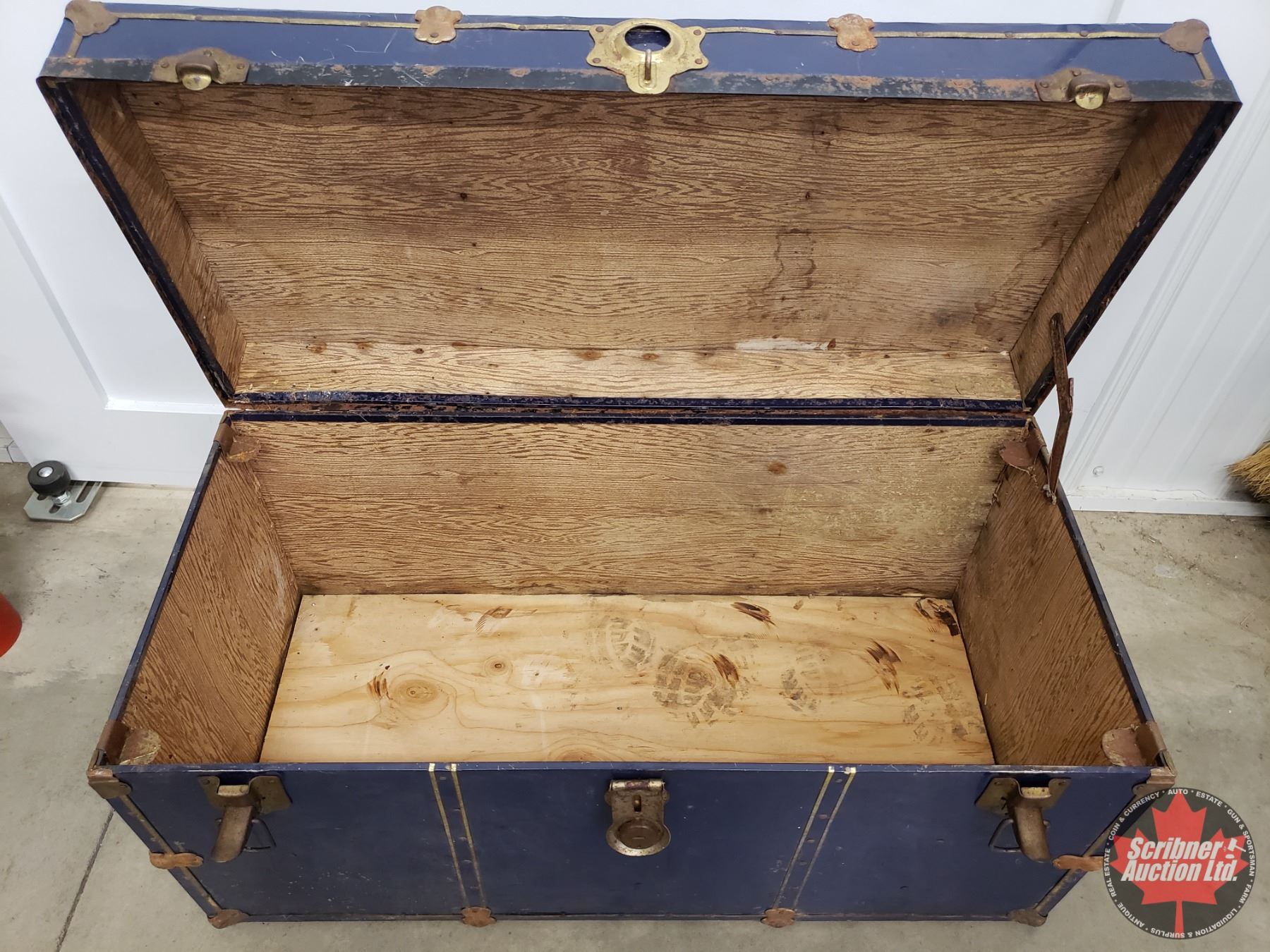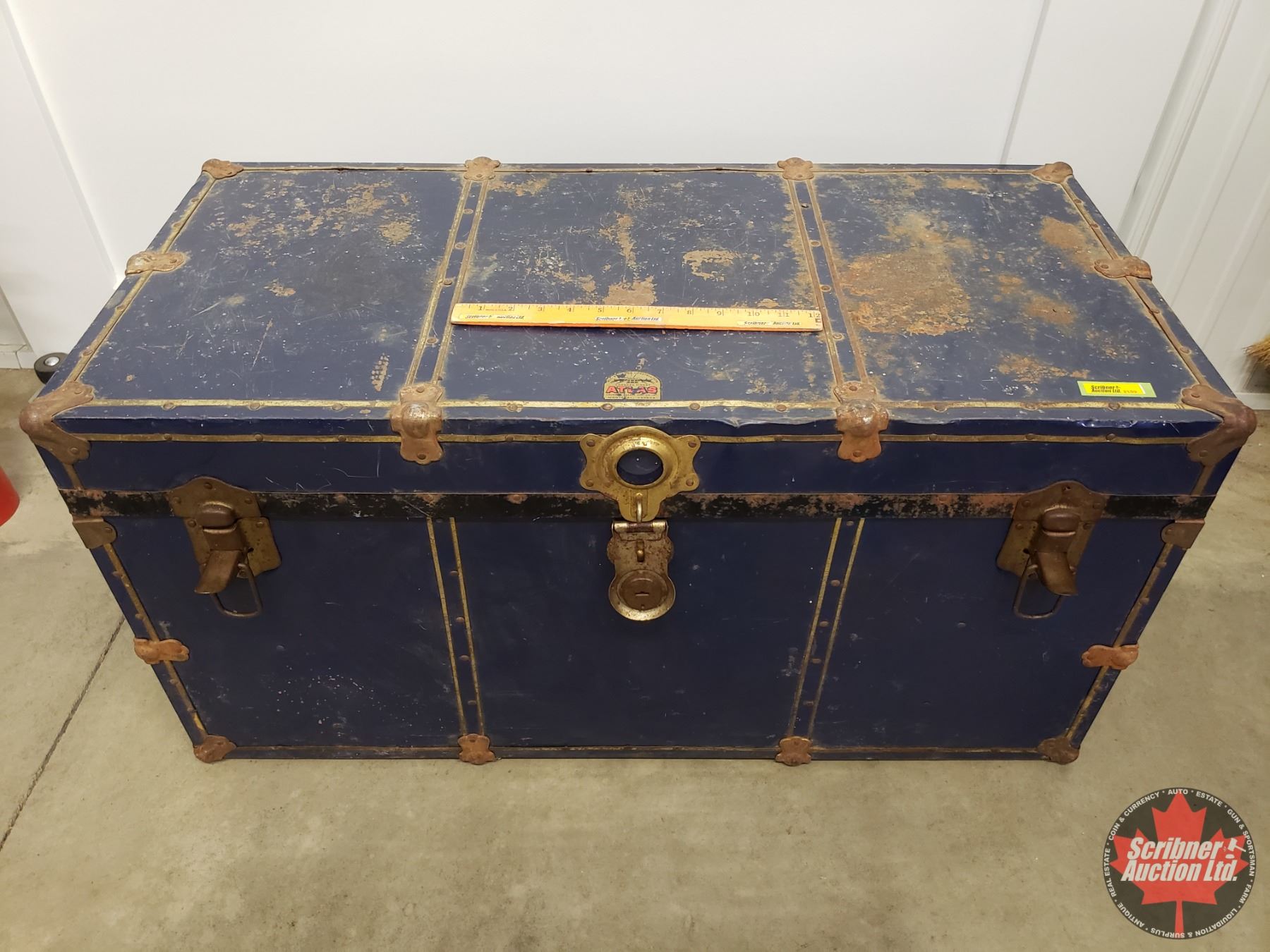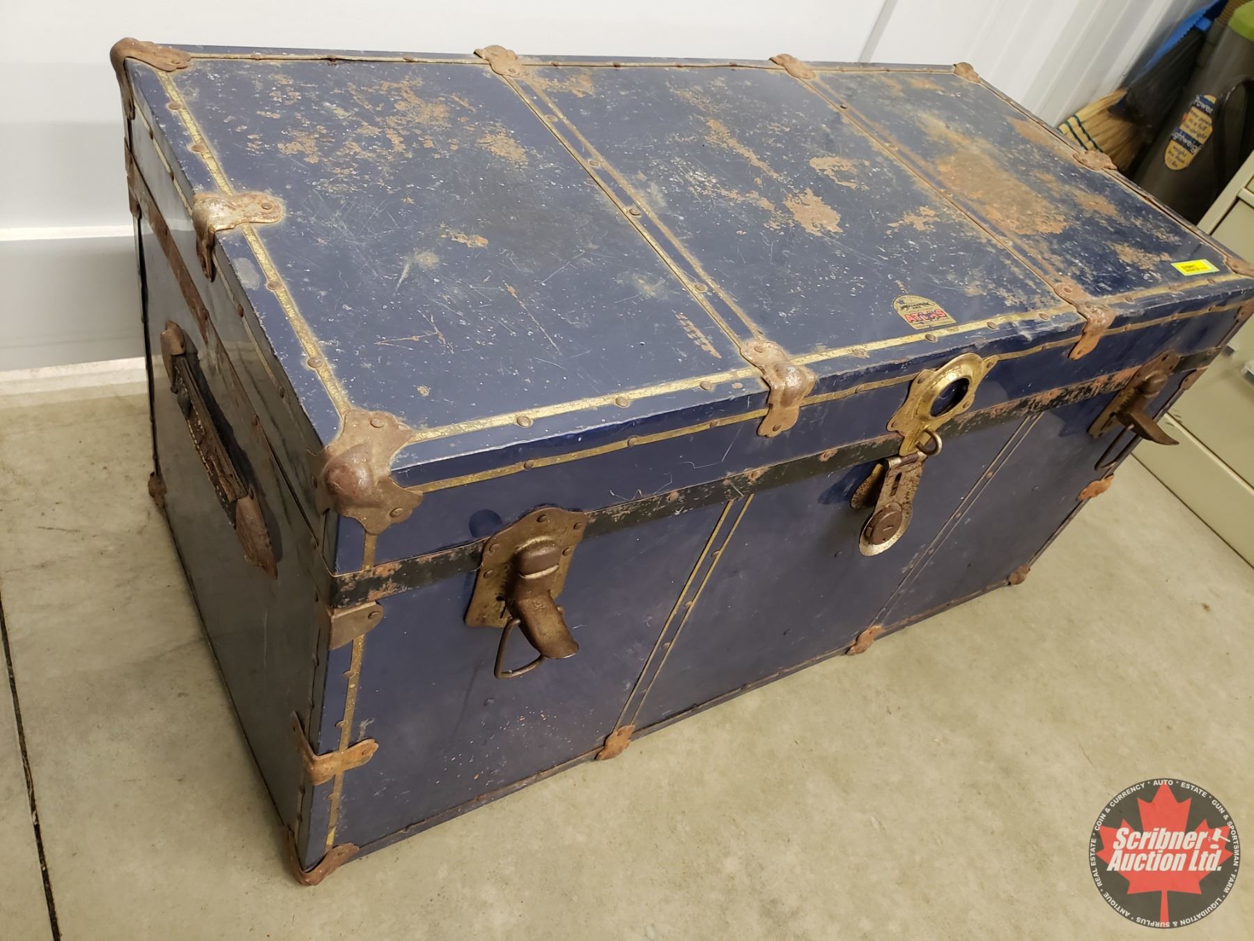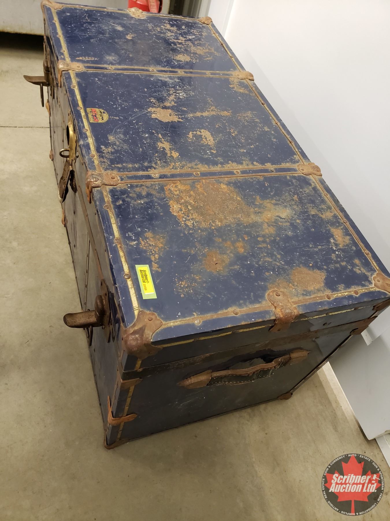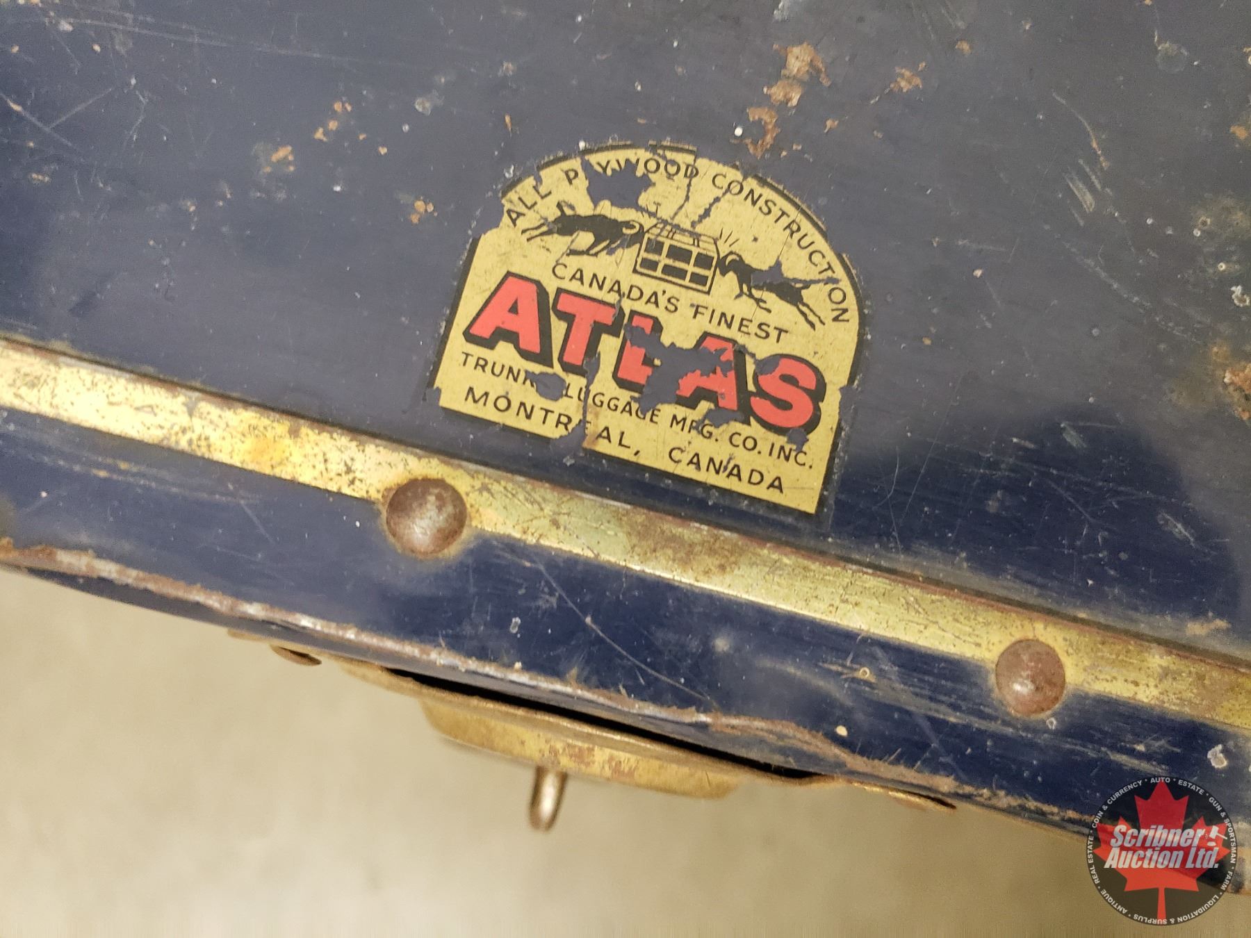 Atlas Metal Steamer Trunk (18-1/2"H x 36"W x 17-1/4"W) (SEE PICS!)