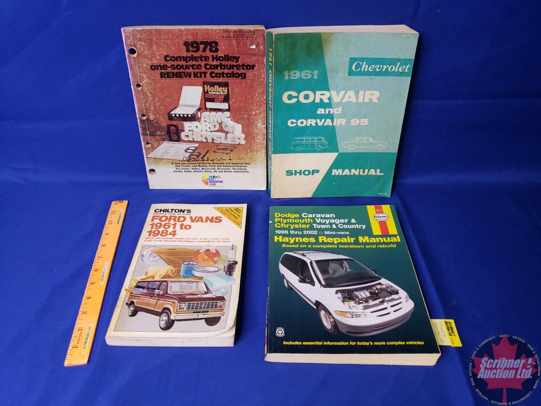 Auto Manuals (4) Chilton "Ford Vans 1961-1984" ; Haynes "Dodge 1996 - 2002 Minivans" ; Chevrolet Corvair (1961) ; Holley Carb Renew Catalog (1978) (SEE PICS!)