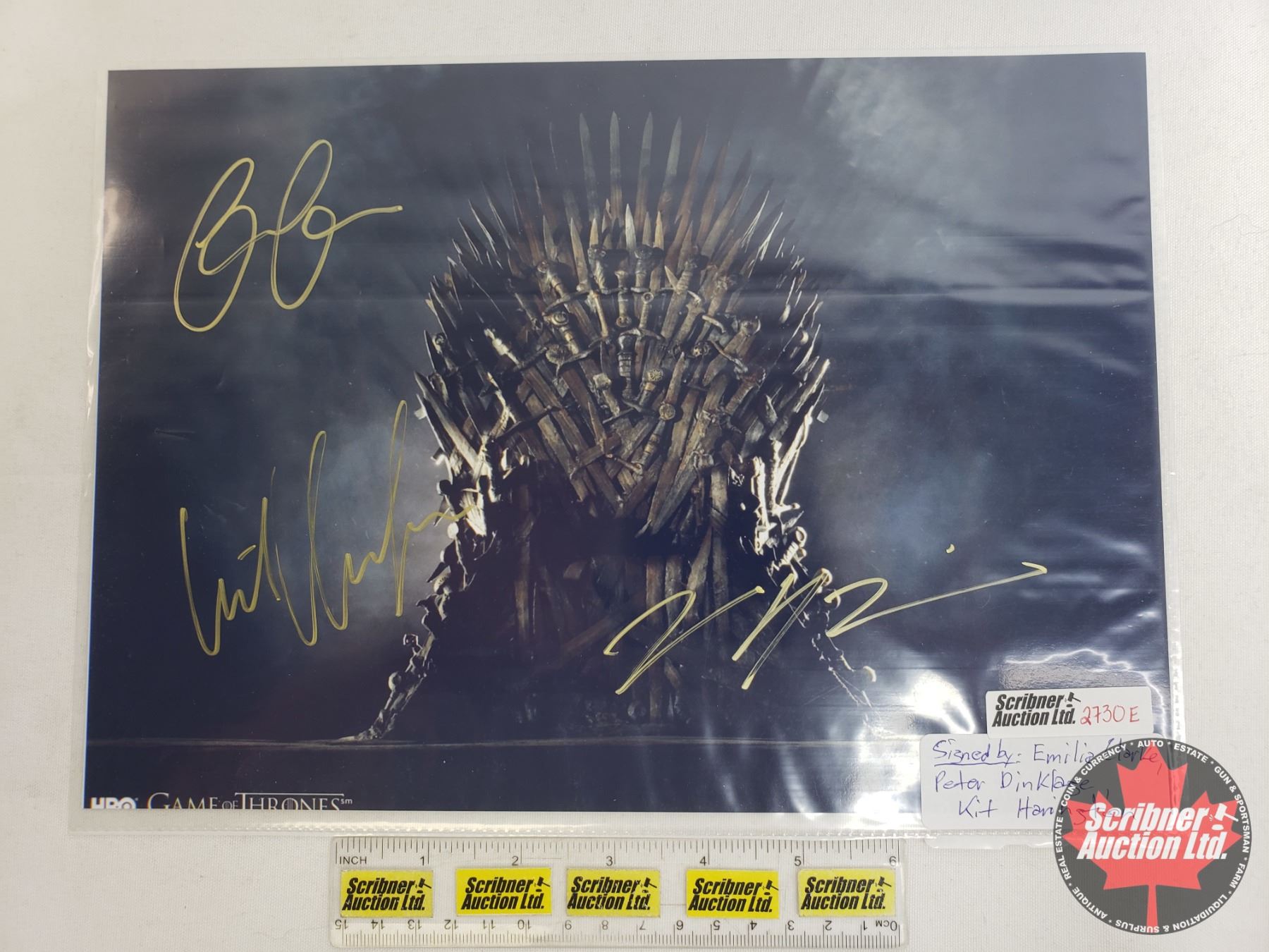 Autographed Photo : Emilia Clarke - Peter Dinklage - Kit Harington (GAME OF THRONES) (COA : REAL AUTHENTIC) (8-1/4" x 12") (SEE PICS!)