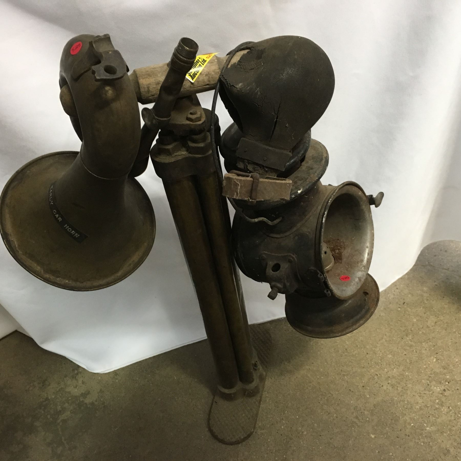 Automobilia Trio: Tire Pump, Car Horn & Lamp
