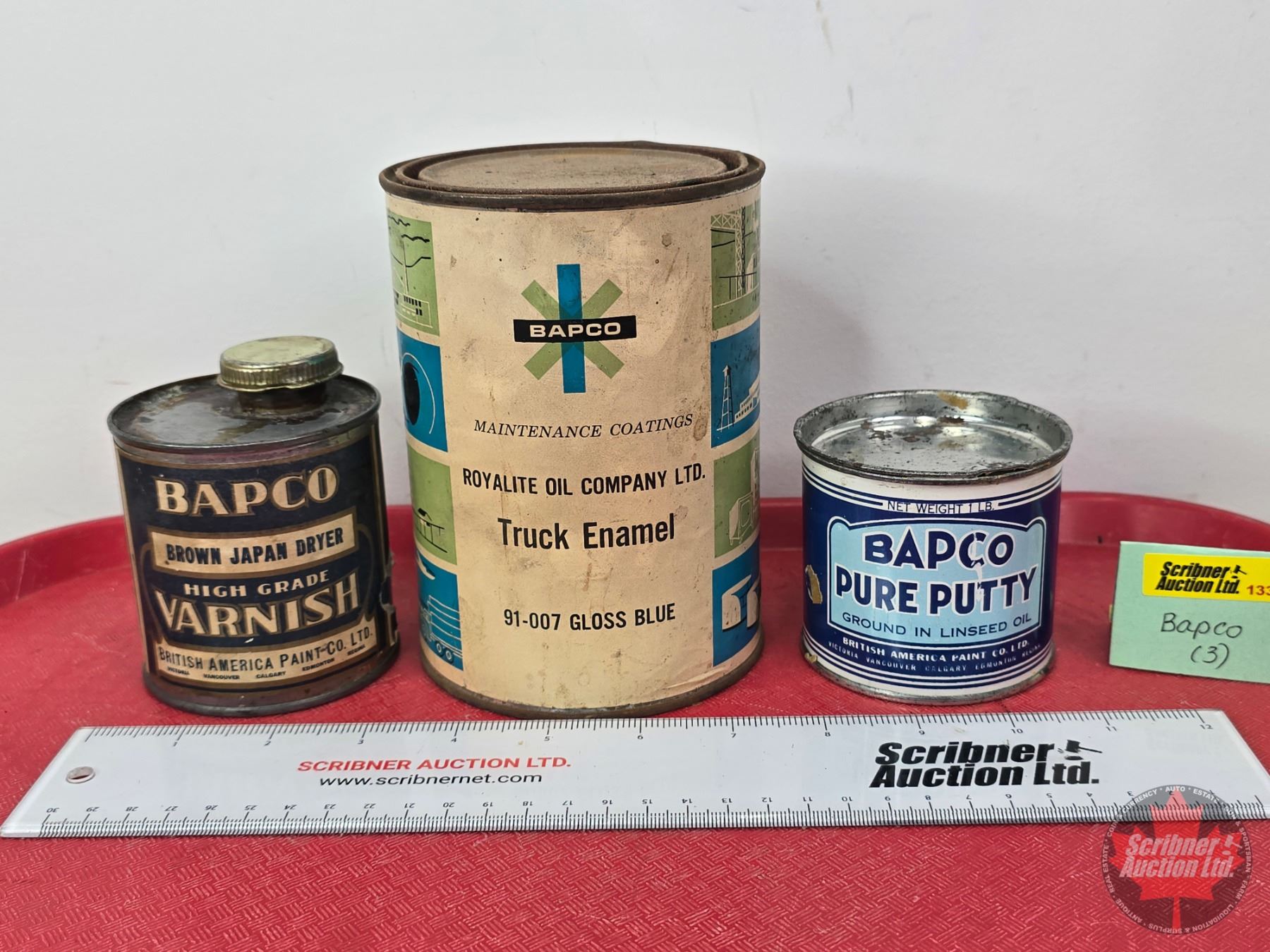 BAPCO Cans (3): Varnish; Pure Putty & Truck Enamel (All Full or Partial Full)