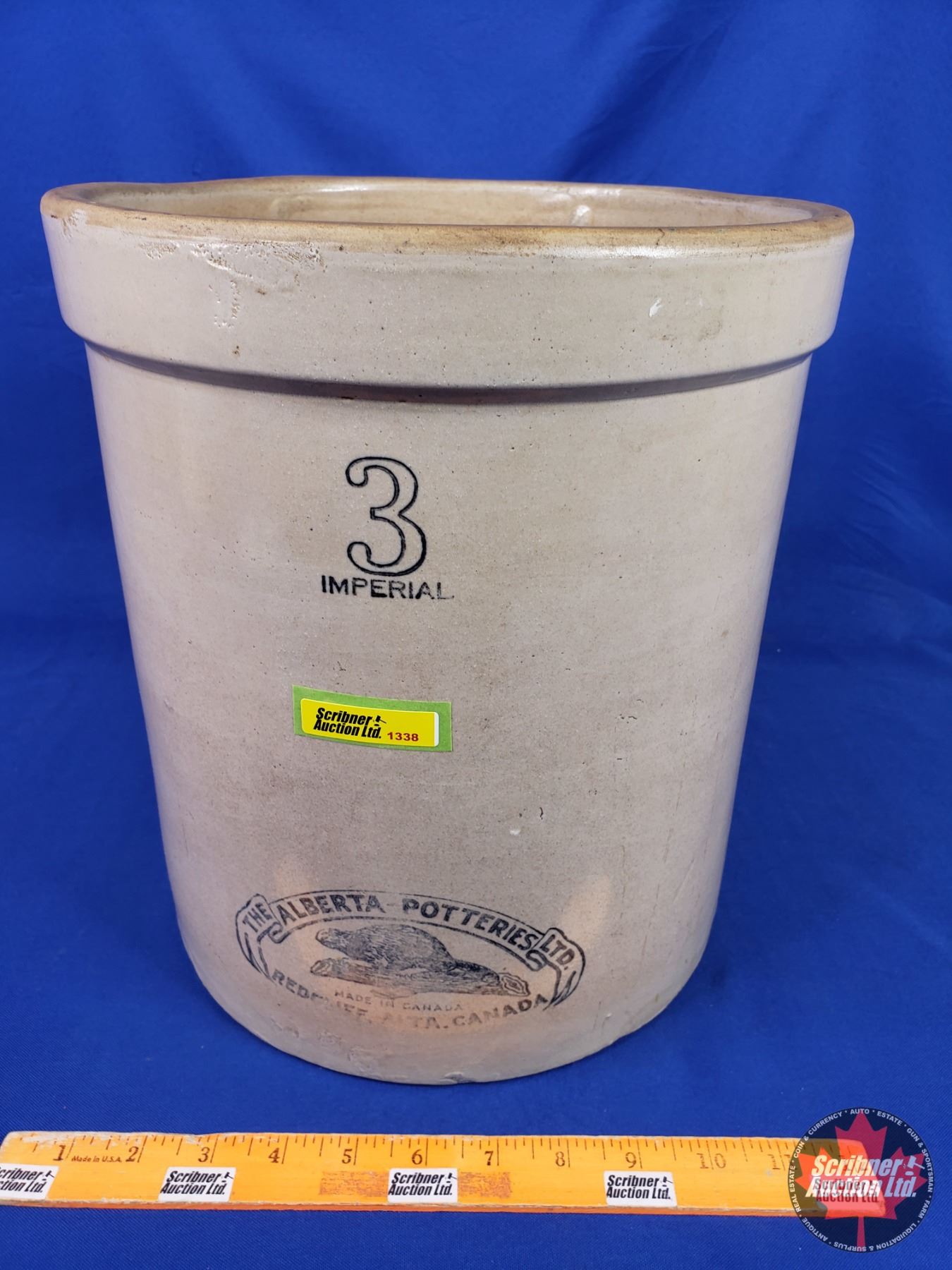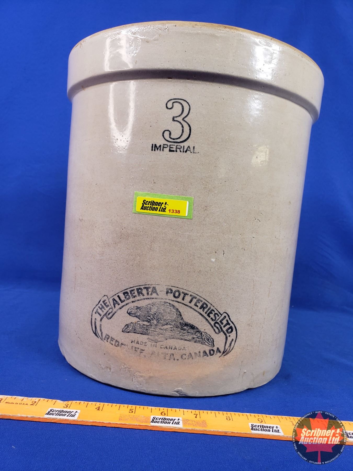 BEAVER CROCK "The Alberta Potteries" 3 Gallon Imperial (Nice Condition) (12"H x 11"Dia) (SEE PICS!)